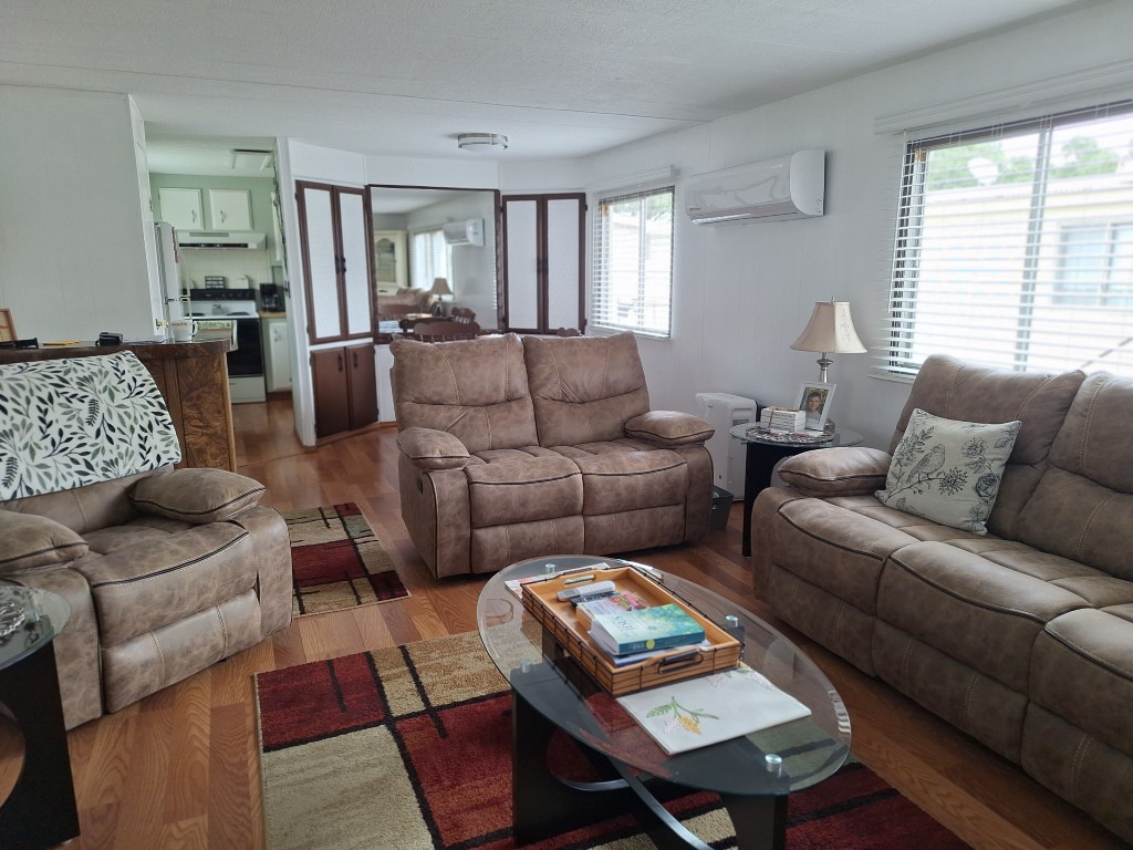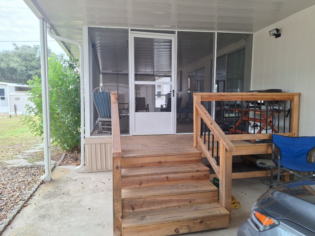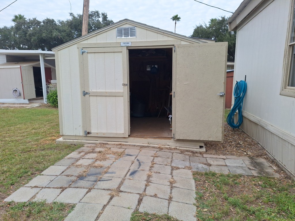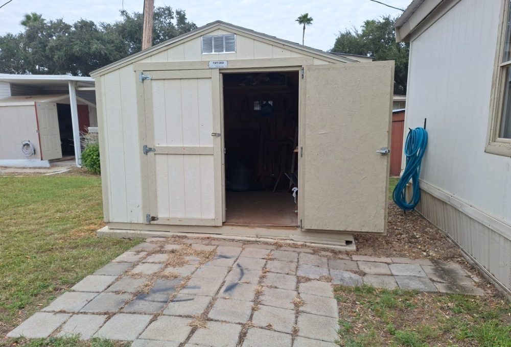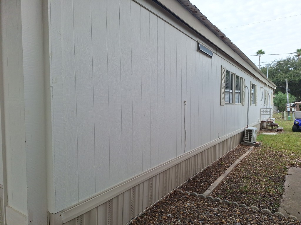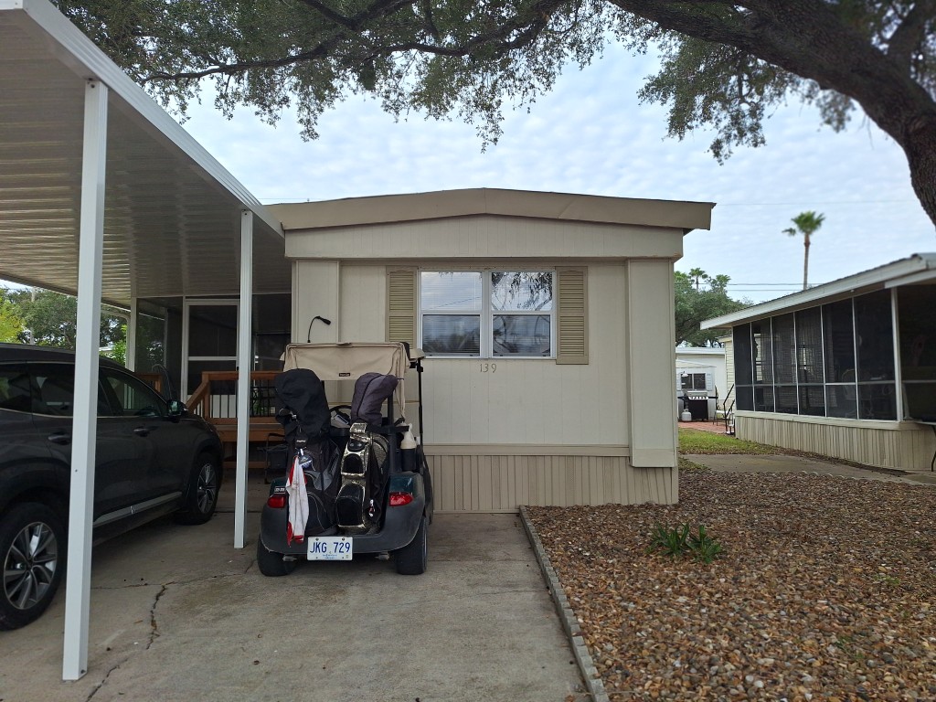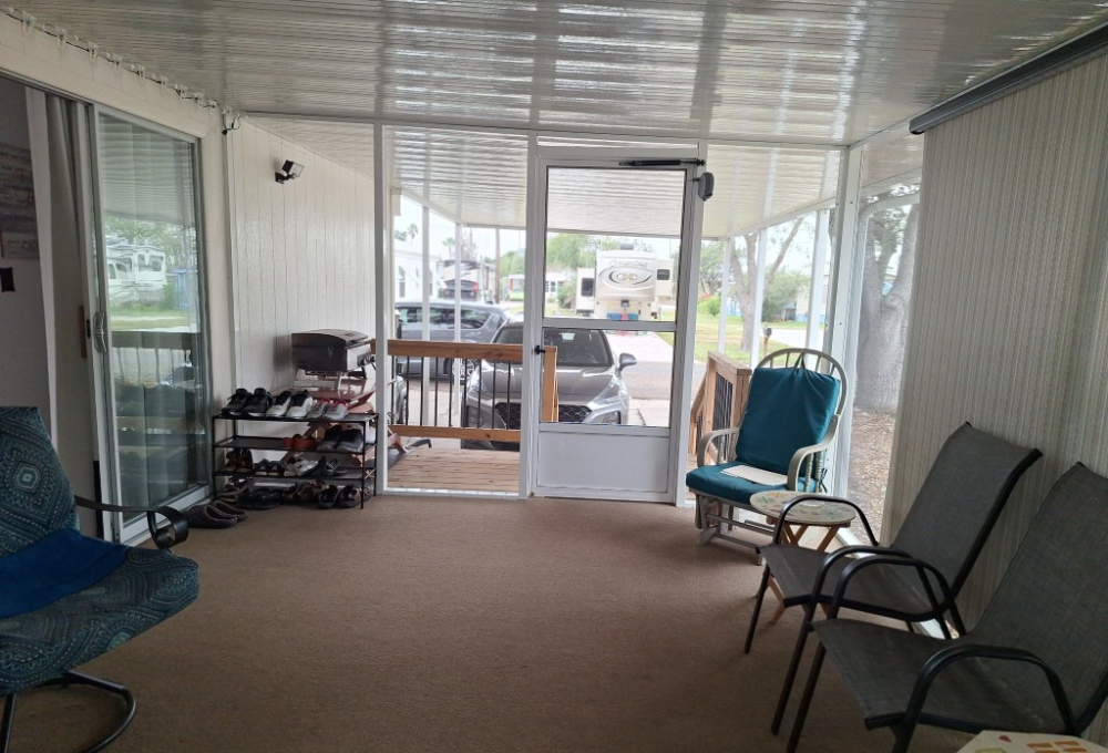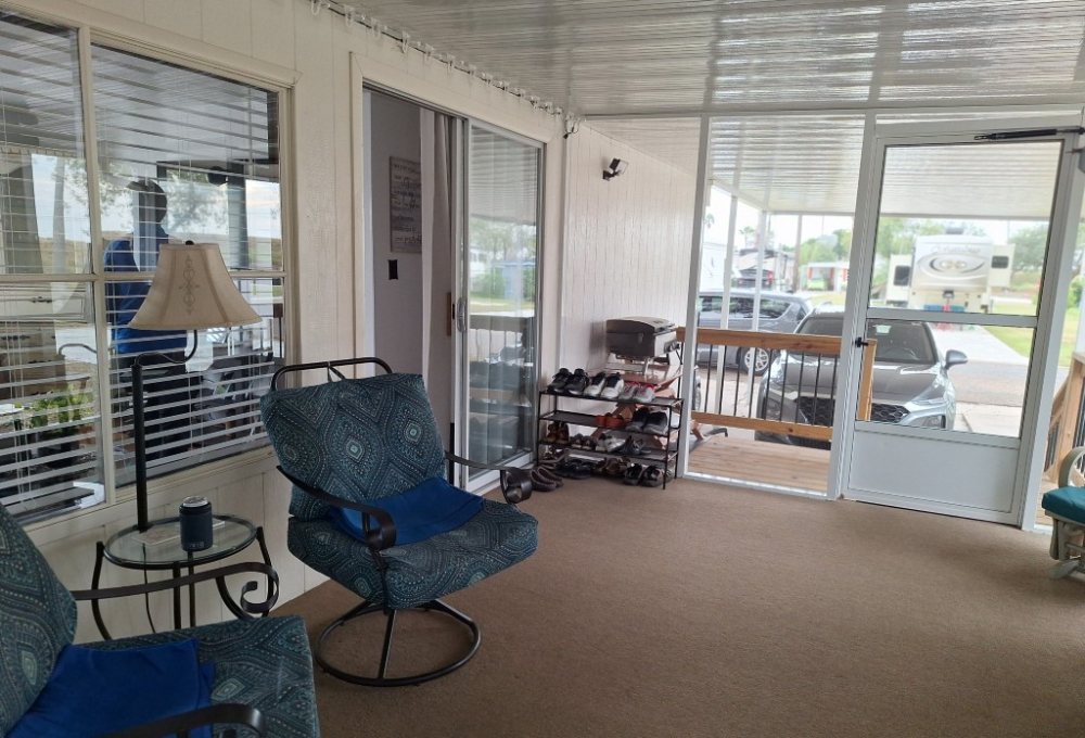 Bright and beautiful 2 BR/2 BA home in a split configuration for privacy, comes fully furnished and has 952 sq. ft. of living space. Located in the nicest park in the Valley - Llano Grande Lake Park Resort, Mercedes, TX, a 55+ community. Living room is large with high ceilings, a dining area with built-ins and a bar for entertaining. Many upgrades such as newer laminate flooring throughout the whole house, freshly painted, new walk-in shower in guest bathroom, new blinds in kitchen & living room, new furniture in living room, new King & Queen Mattresses. Washer & dryer are included. The 12’ x 20” screened room has new screens and pull-down shades for privacy. It comes with a 10’ x 10’ utility shed to store the handyman’s tools and golf cart. Home has cement board siding and metal roof. Has a porch at the front where you may enjoy your morning coffee. To keep you busy, there are 2 gyms, 3 pools, 2 hot tubs, pickle ball, shuffleboard & tennis courts, library, sewing room, wood shop, dances & many year-round activities to keep you active and social as you desire. There are 2 doggie parks for pet lovers, and a golf course is nearby. Whether you are a full-time resident or a Winter Texan, this home will suit all. Join your friends and make this your winter home! The 2007 golf cart will also be for sale which has new Lithium batteries.