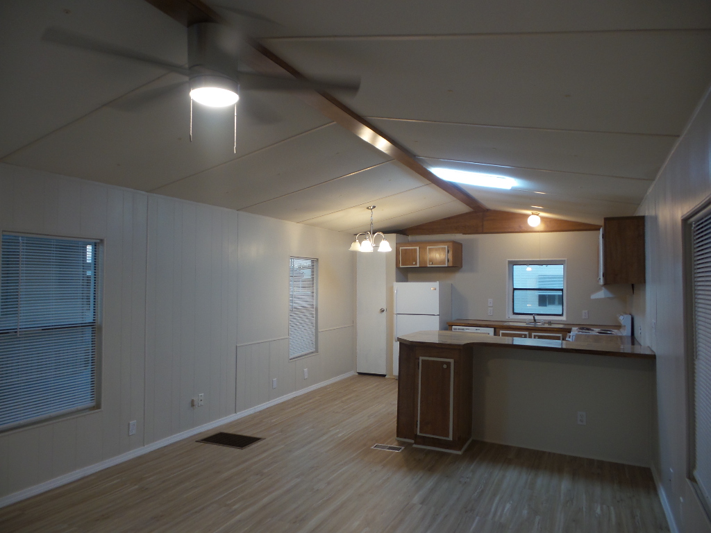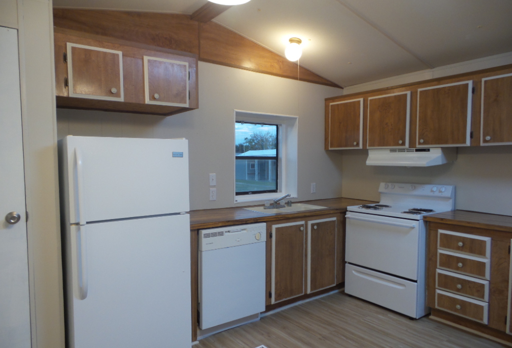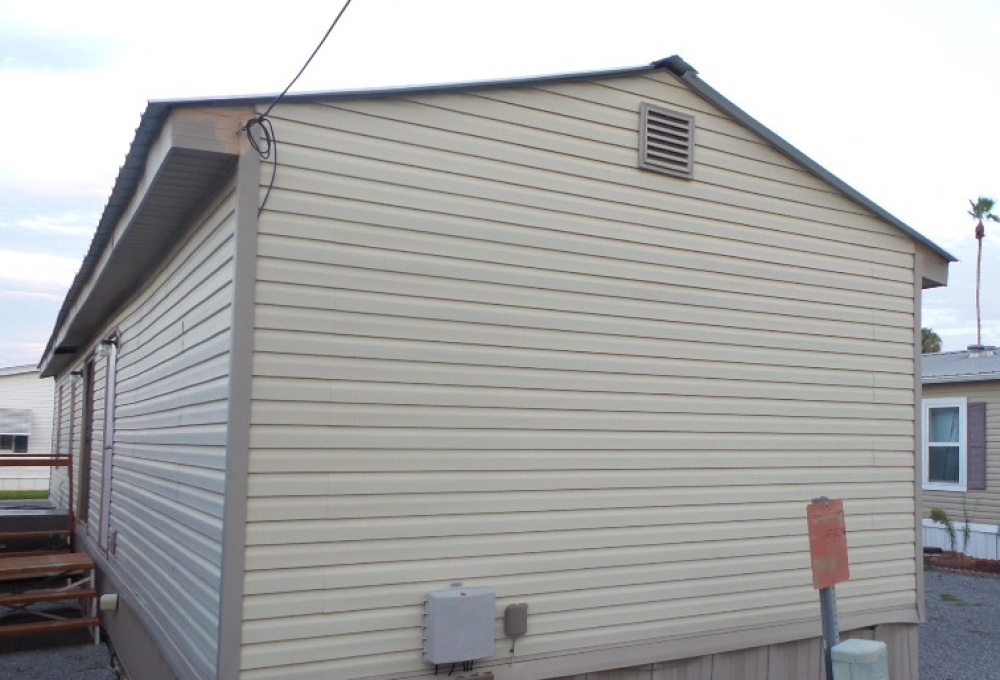 Redman Brighton 14x56 (784 sq ft) Manufactured home. 2 bedrooms & 1 bathroom with ADA ramp & updated bathroom. As you drive under the carport, you can access the ramp to the sun screened raised wood deck, perfect for morning coffee & evening beverages with the SE breezes. Entering the front door is the freshly painted Livingroom, with wood laminate flooring throughout. To the right is the front kitchen which includes all appliances, including a dishwasher & a pantry, plus spacious countertops & cabinets surrounding the room. Along the hallway to the back of the home is a patio door exit & adjacent to the guest room awaiting your utilization choice. The spacious bathroom features a walk-in shower & ADA toilet, etc. Additional closets include a linen closet. The master bedroom is at the back of the home with a spacious closet. This home is unfurnished at present, except all appliances including W/D near the bathroom & master bedroom. Outdoors the yard is rock/cement with established palm trees & low maintenance due to a metal roof & vinyl siding. Plus, a storage shed & all in once A/C/heat. Call Rita for a tour at 712-281-9862.