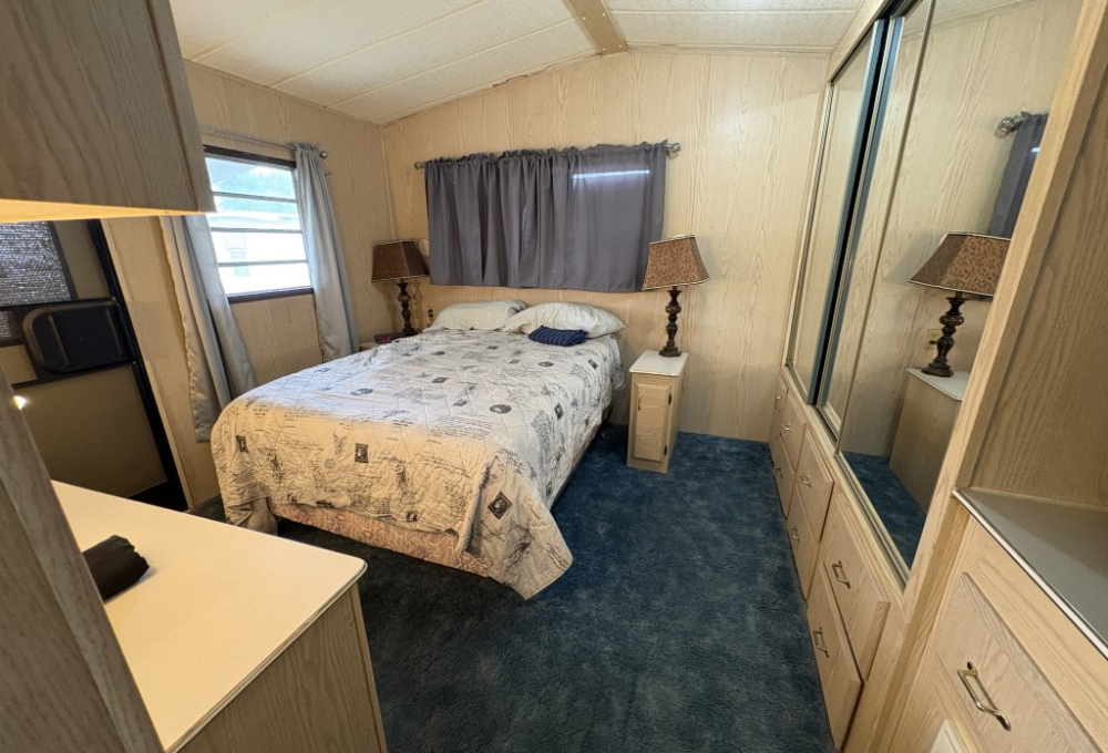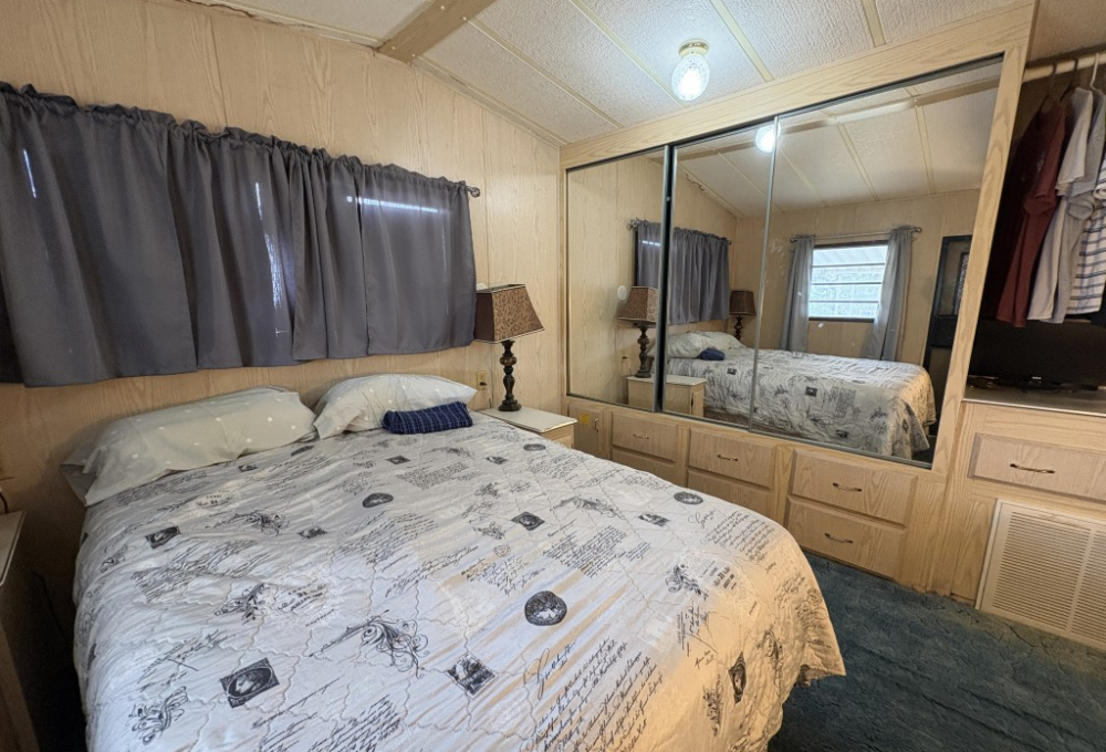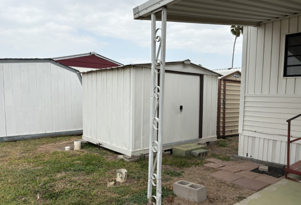 Outside the wheelchair ramp provides easy access to the home and makes rolling in groceries with ease. There are 2 sheds. The 8x10 has a new metal roof and new weather proof flooring. The 2nd shed is a 6x6 for additional storage needs. Lawn care is included with the rent leaving you more time to enjoy the park's amenities and entertainment.