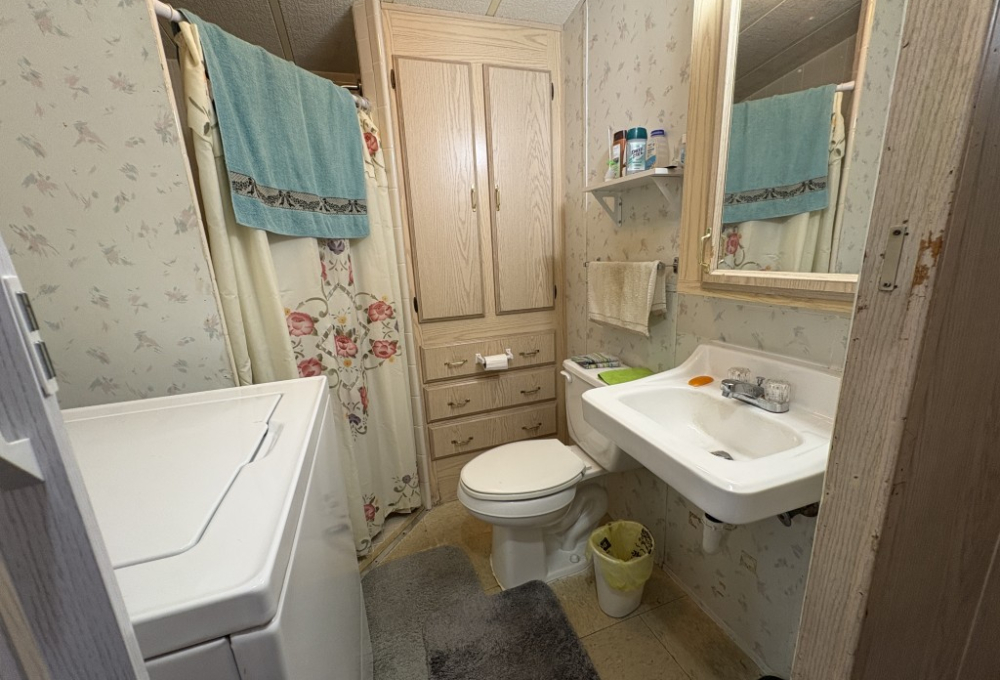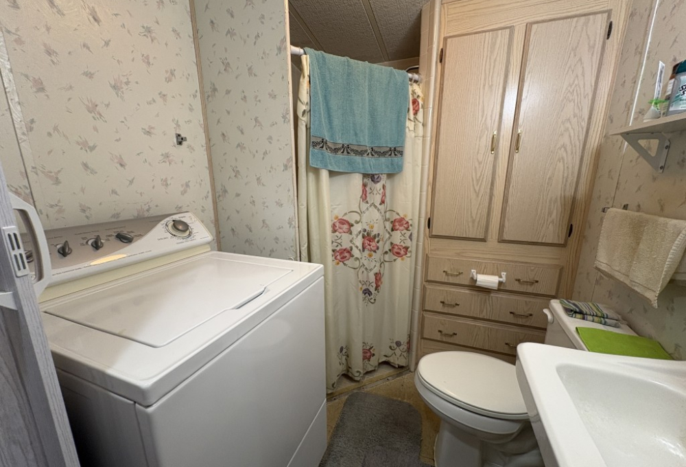 Home highlights include a sturdy metal roof, Cathedral ceilings that create an open, airy feel, a walk-in shower for easy access and room for the washer included. The kitchen is spacious and includes everything you need to start preparing your favorite meals. The bay-window dining area is perfect for enjoying meals, playing cards and enjoying your morning coffee with a view. The bedroom is spacious with plenty of built-in storage and mirrored sliding glass closet doors to enhance the room.