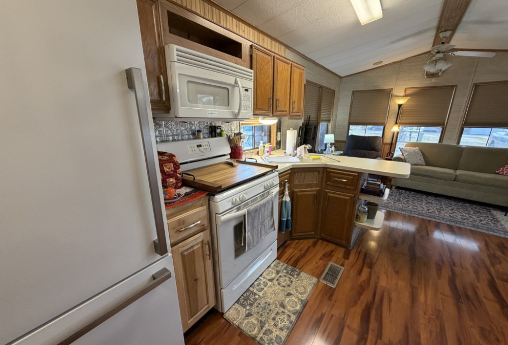 Beautifully maintained 1991 Homesteader Park Model (12x33), offering 396 sq ft of comfortable living space.