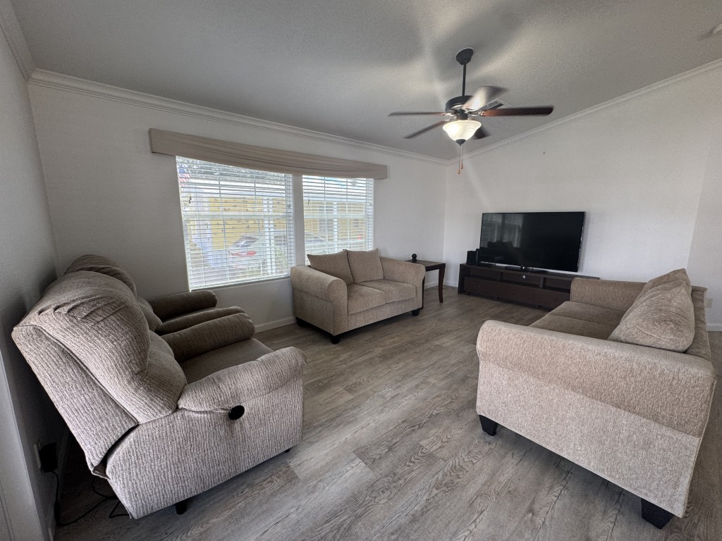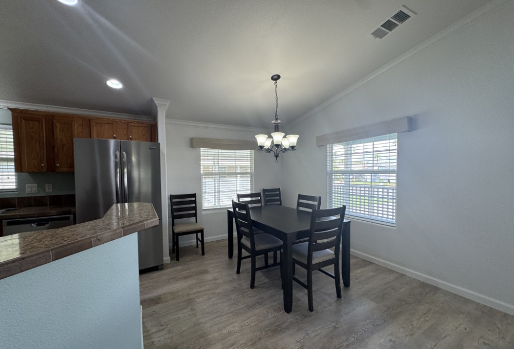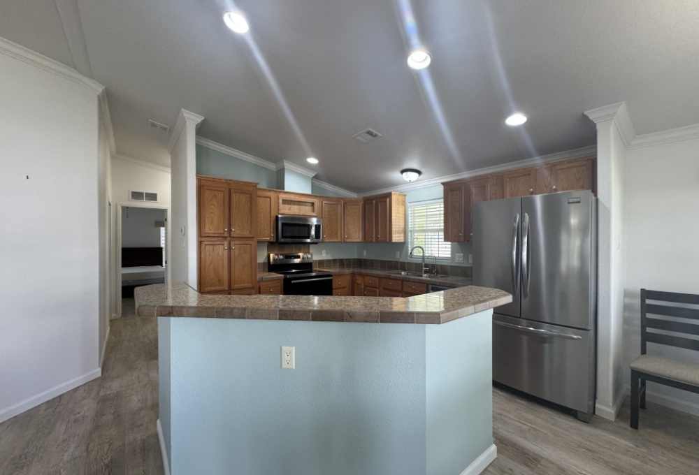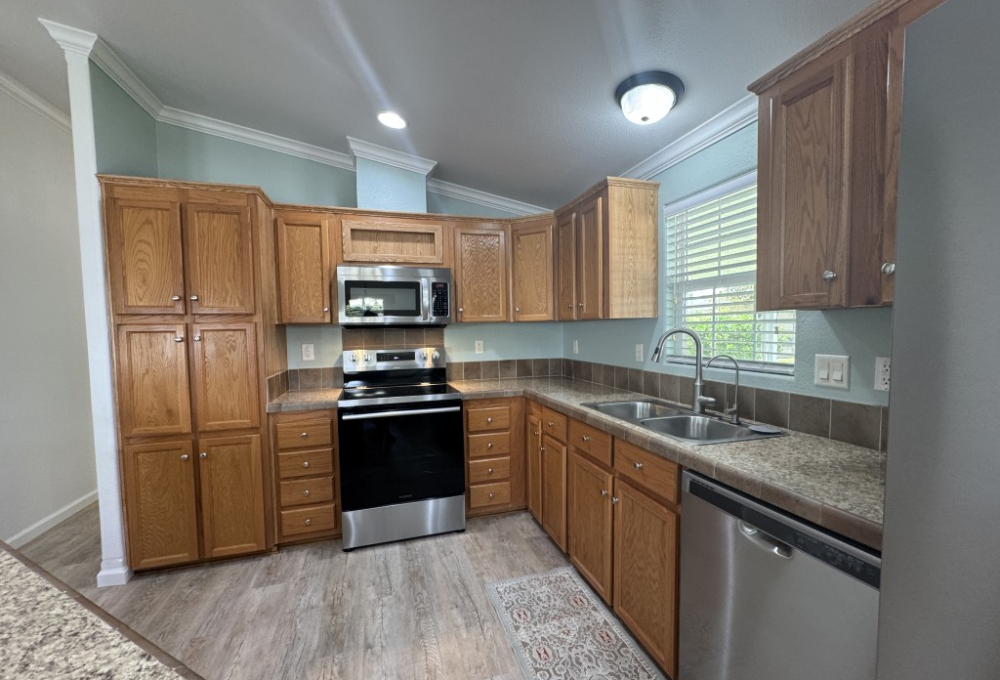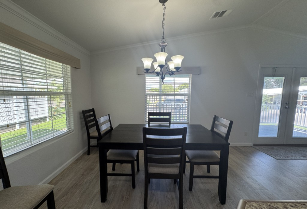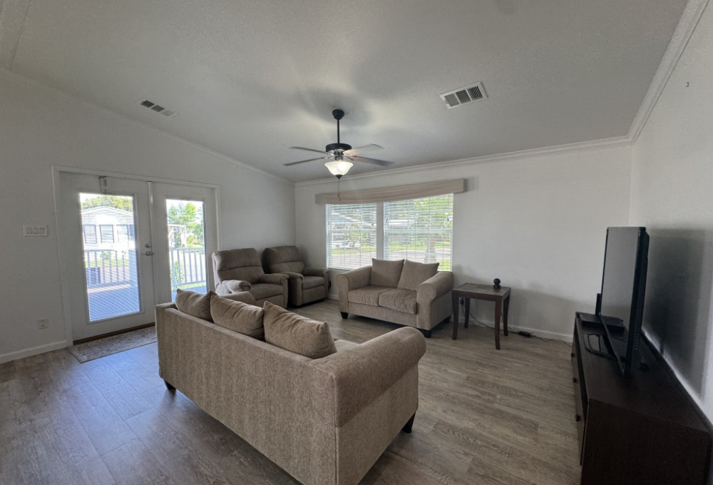 Lot rent is $721 monthly and includes basic Spectrum cable and internet, sewer, and one day per week trash pickup. Water is park metered; electricity is through your choice of provider.