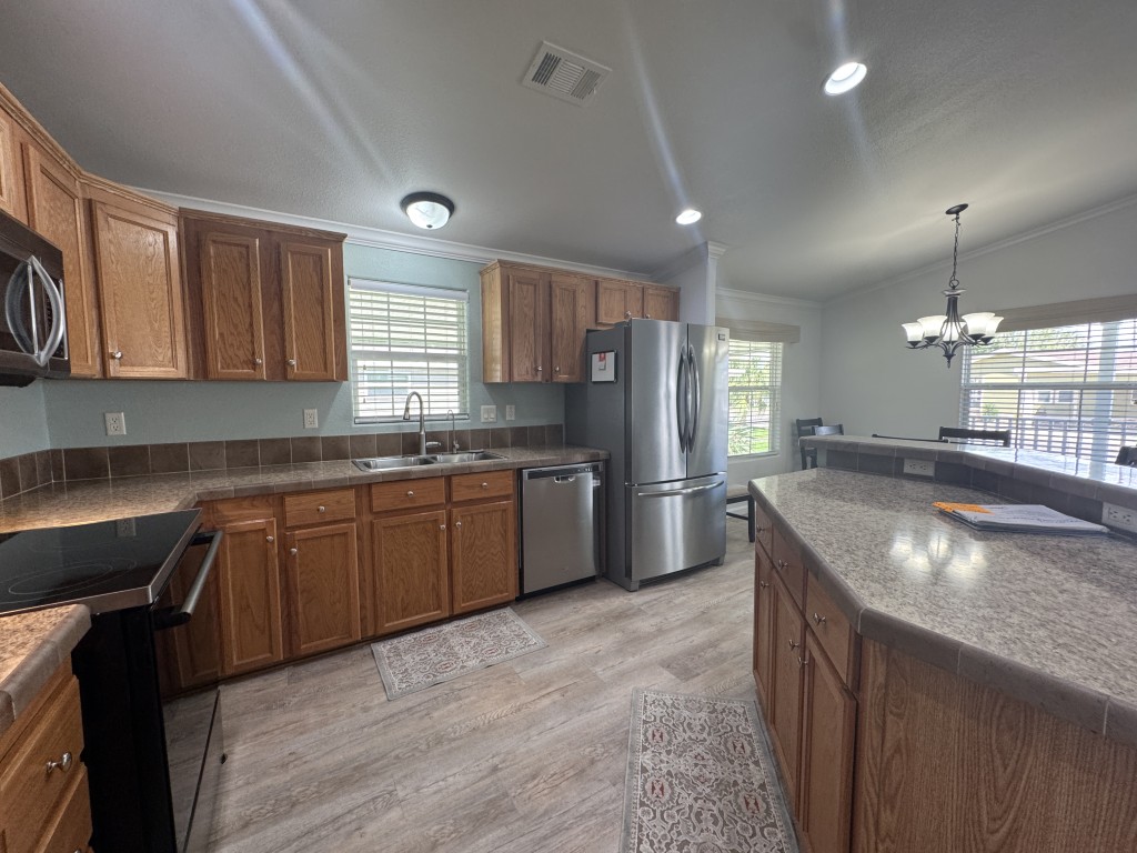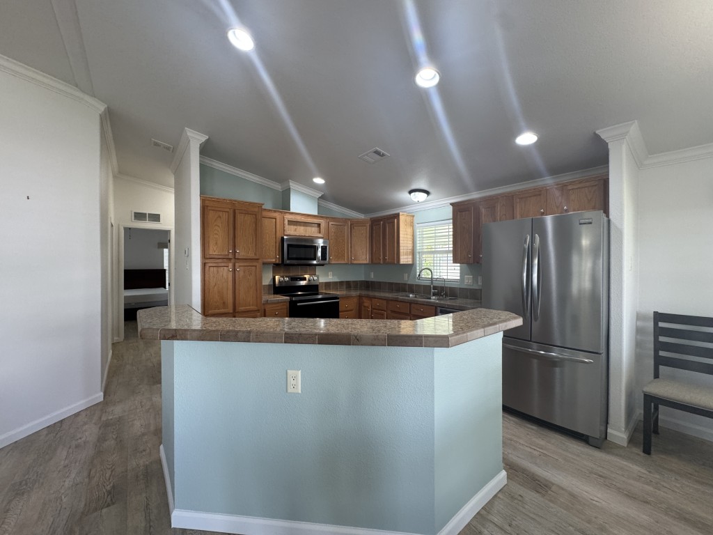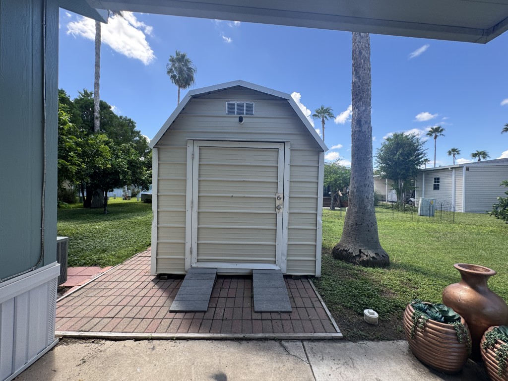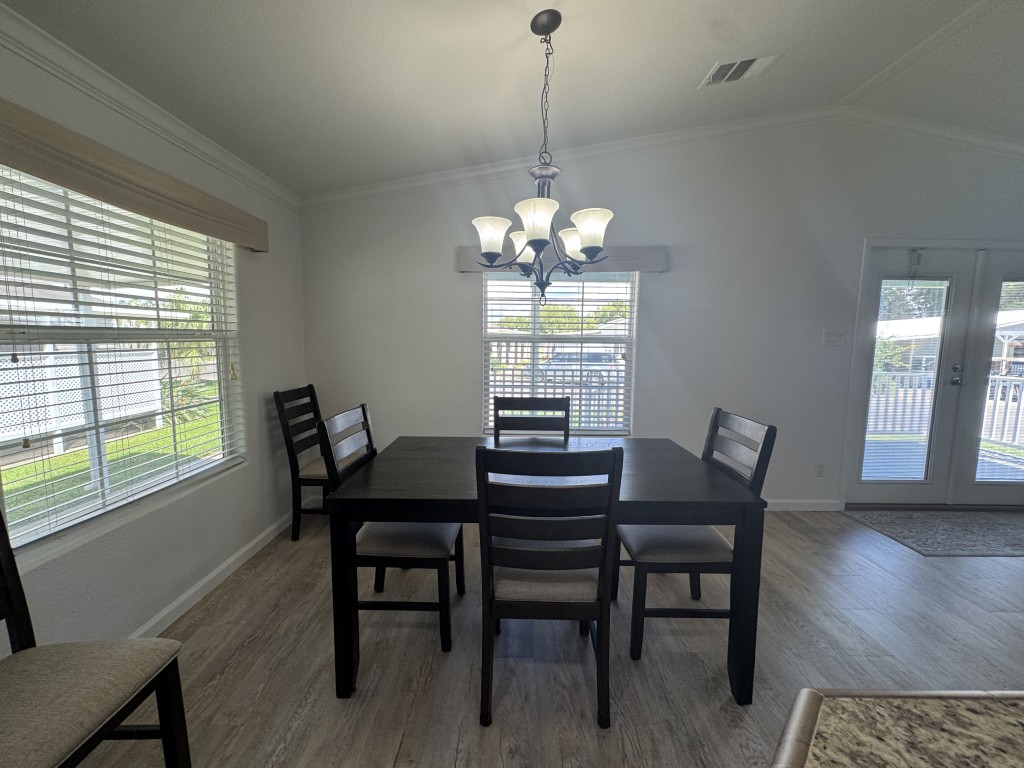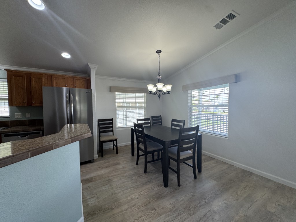 Lot rent is $721 monthly and includes basic Spectrum cable and internet, sewer, and one day per week trash pickup. Water is park metered; electricity is through your choice of provider.