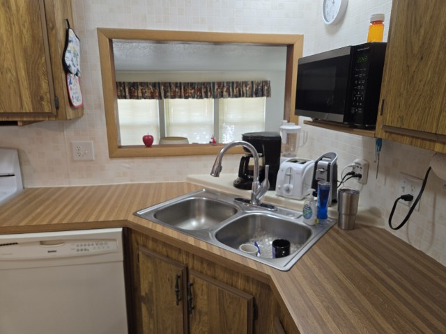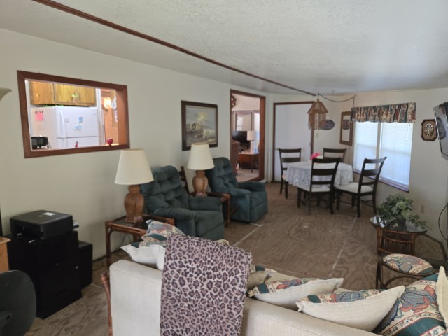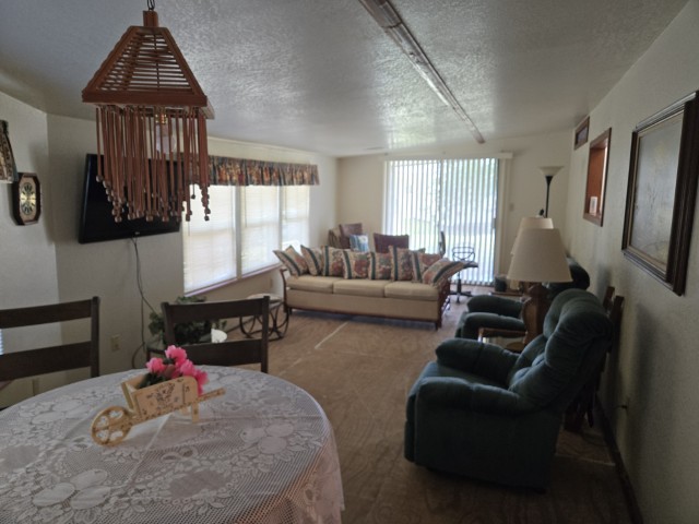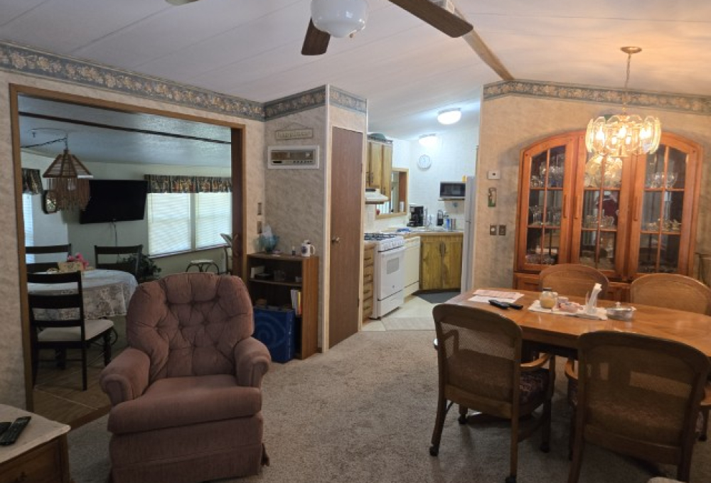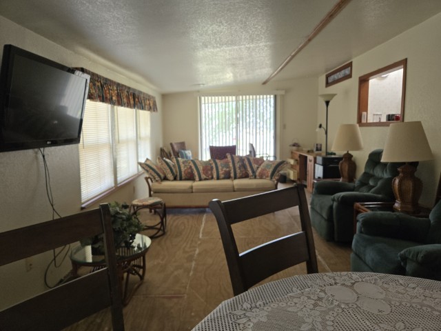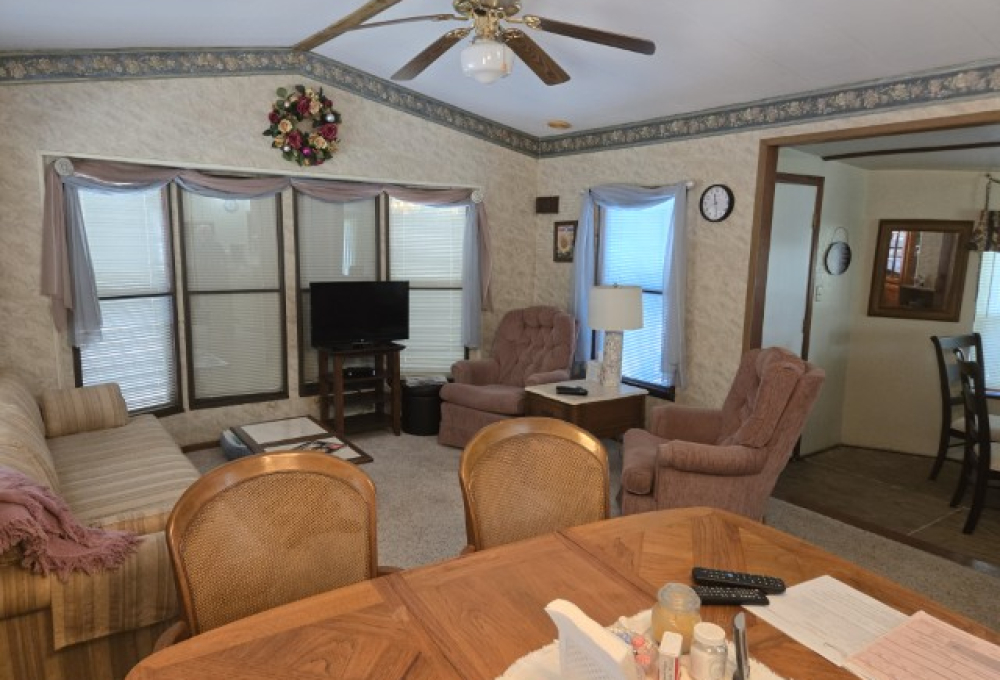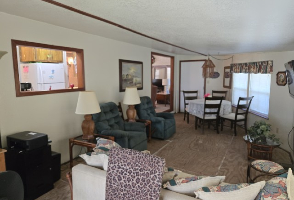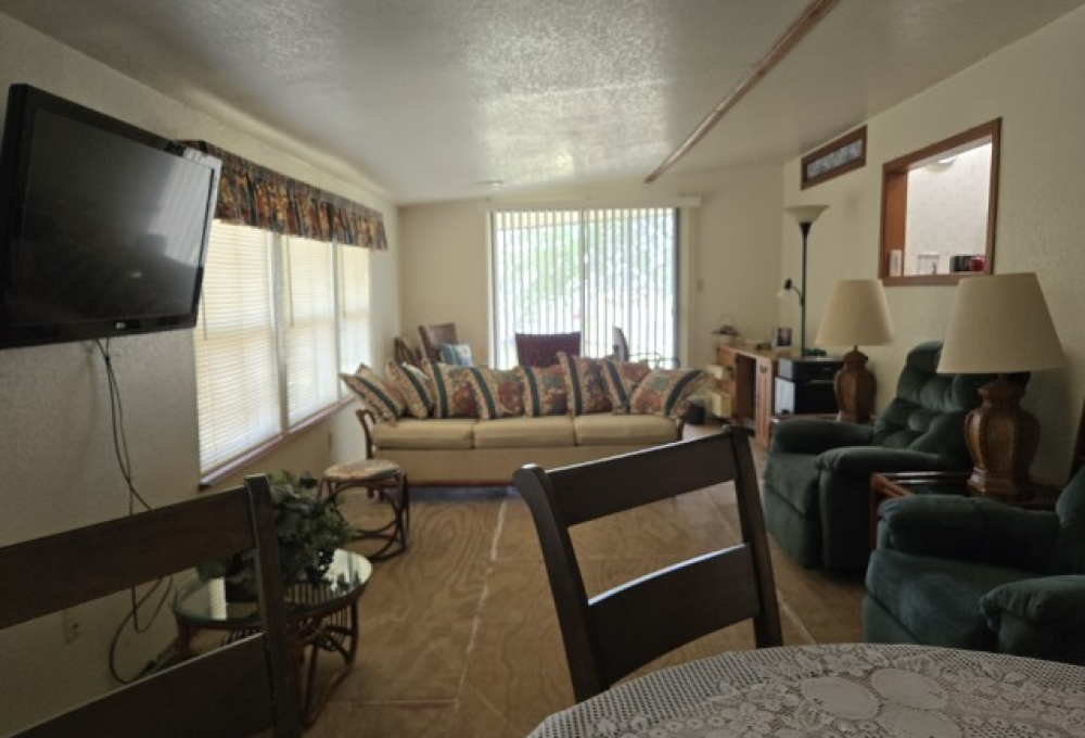 This charming 14' x 44' mini mobile offers 616 sq ft of comfortable living space, plus a huge 12' x 30' Texas Room addition that brings the total to nearly 1,000 sq ft of usable space. Located in the ever popular Sunshine Resort Park, this home sits at the end of a quiet dead end street and features a private back patio, giving you a little extra peace and privacy within this vibrant 55+ community.