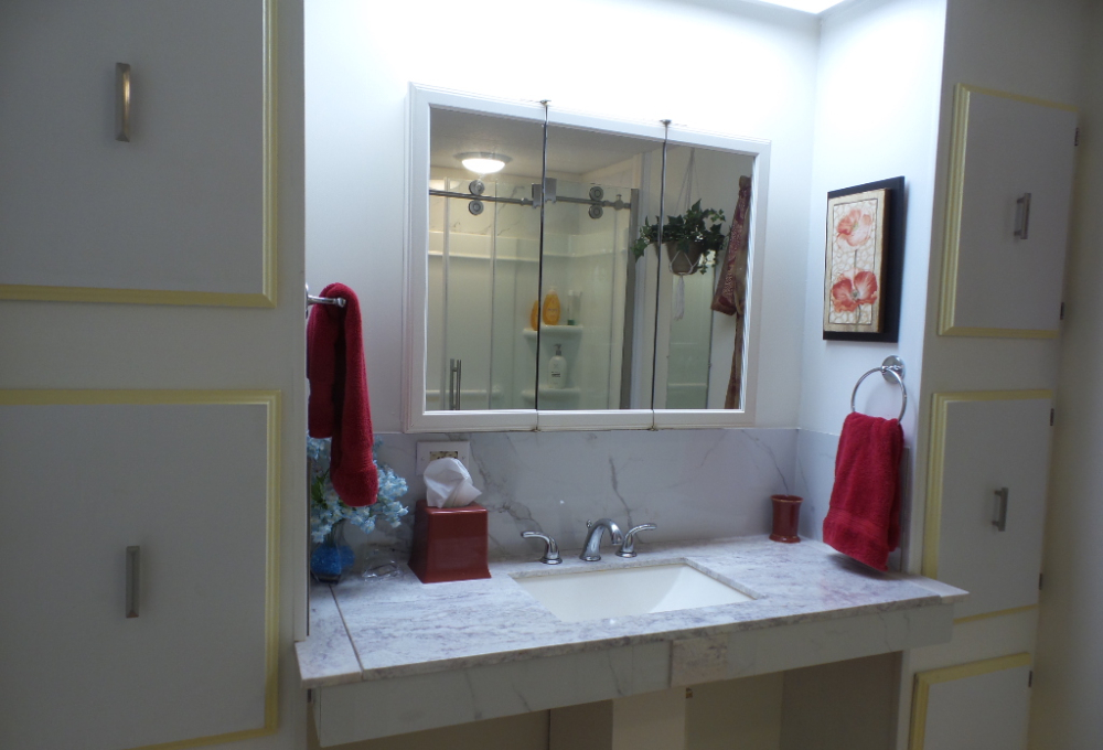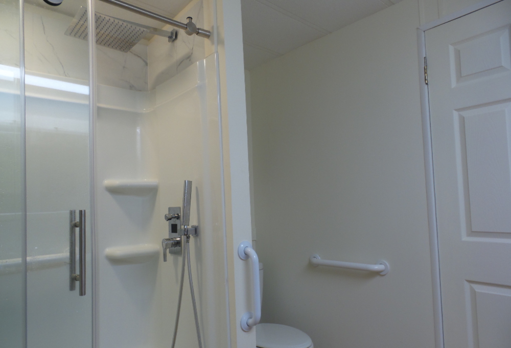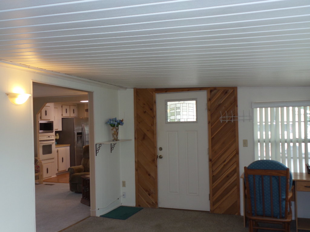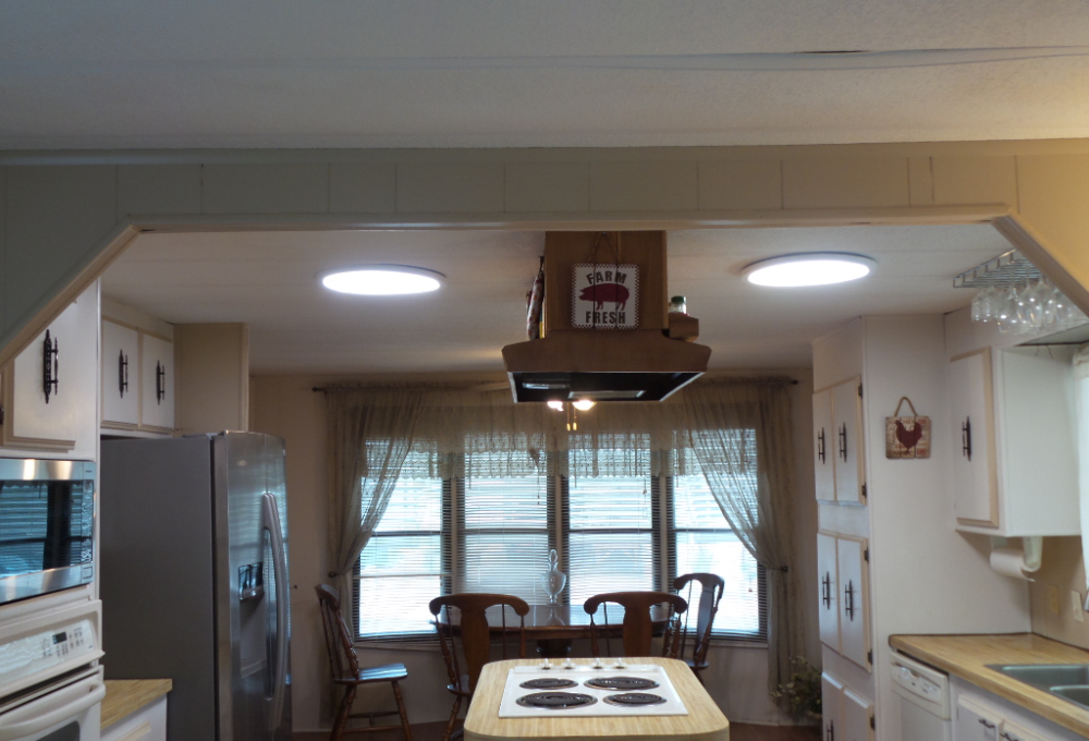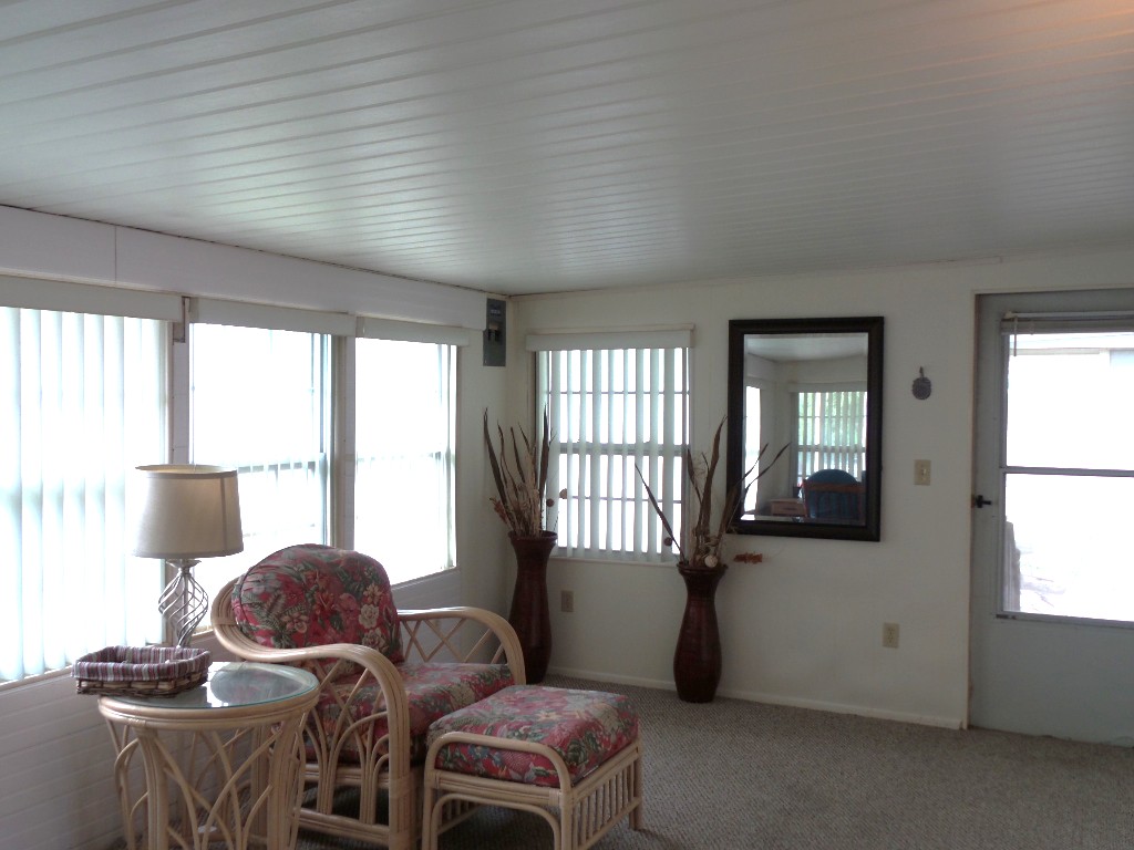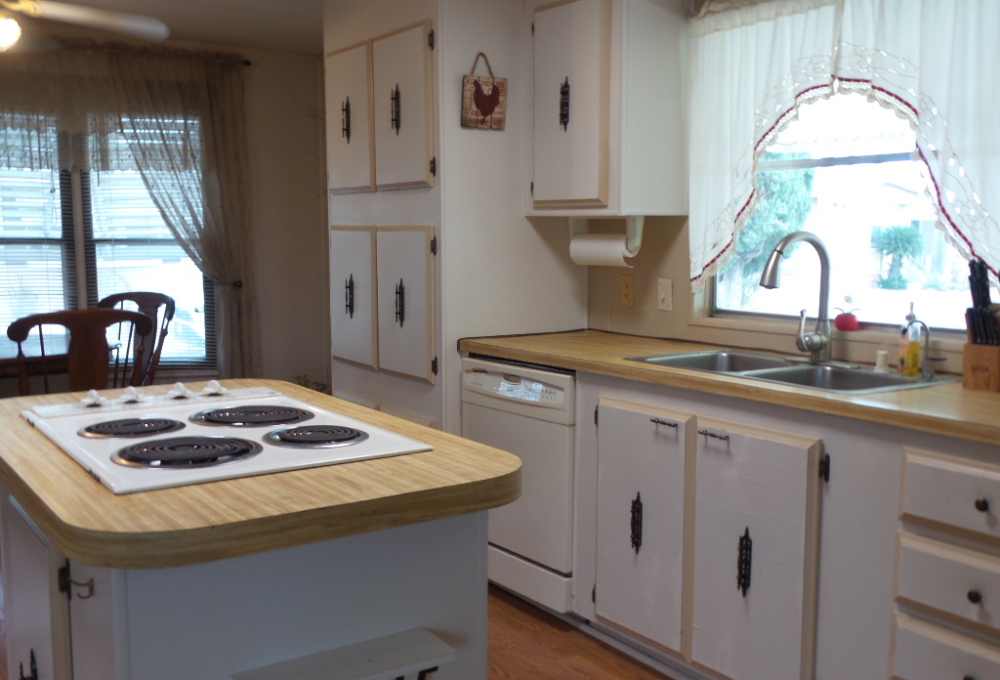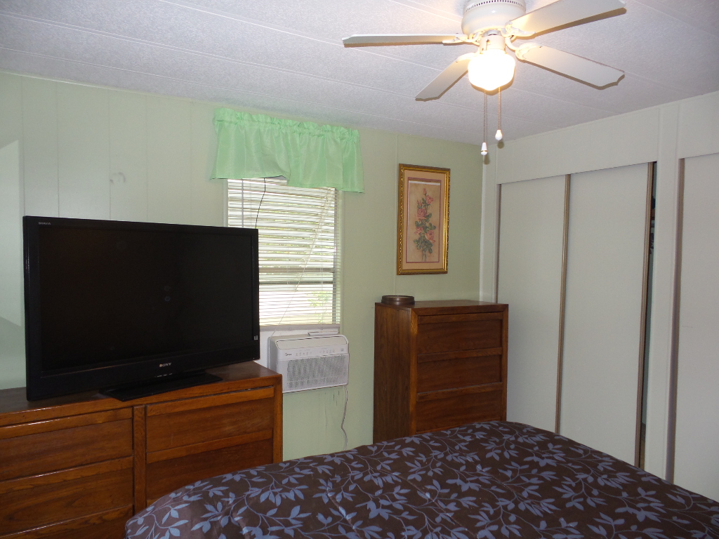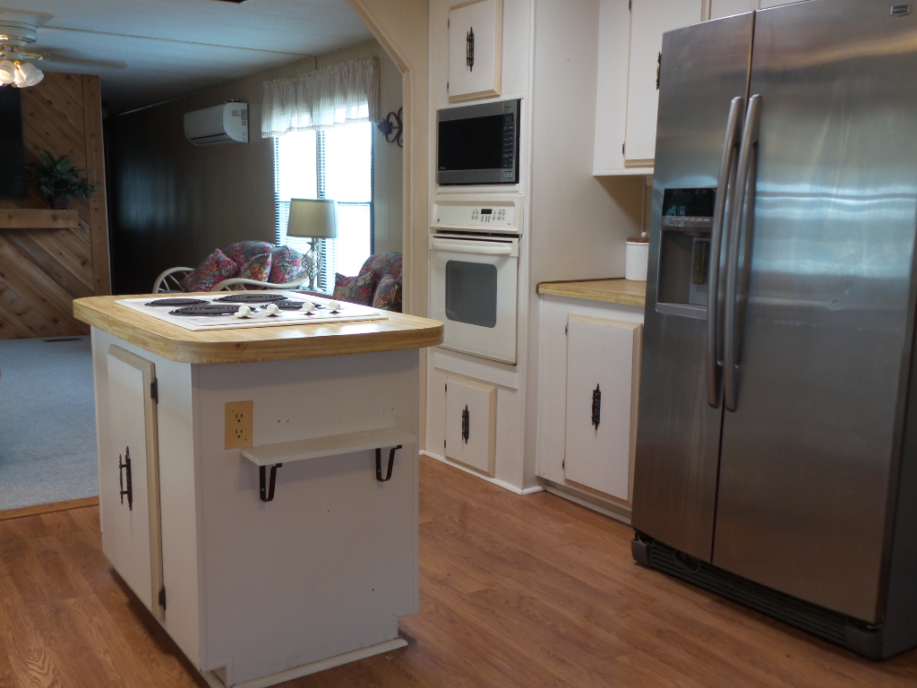 Austin American 14x66’ 2-bedroom, 1.5 bathroom Manufactured Home with Tx Rm, Patio, Deck & Carport. (924 sq ft plus Tx room adds another 220=1144 sq ft of living space.) Entering the TX Room, you are surrounded by natural light from the windows & a back door exit to the patio & shed. Also, a shortcut to the library & activities thru the backyard, beyond the Orange & grapefruit trees! An open archway leads to the Livingroom sporting a 75” TV with rattan furniture & a recliner. A front kitchen features a range top on the island, with an abundance of cabinets on both walls & a wall oven plus a microwave, in addition to the dishwasher & S/S fridge. The dining table is adjacent to the front windows with a view. Along the hallway is the dbl guest room with an en-suite ½ bathroom. Near the back door is the W/D set, across from the updated luxury bathroom, which includes a rain shower & wand, with perfect adjustable temperature shower with a barndoor style glass door. The marble top modern vanity & updated stool add elegance. The Q Master bedroom is to the back of the house with a dresser set, large closet & TV. A newer 30-year roof & W/H provides low maintenance. The yard is spacious & has citrus trees & a cypress/lawn. Cable & Wi-Fi inc with lot rent. Call Rita for a tour at 712-281-9862.