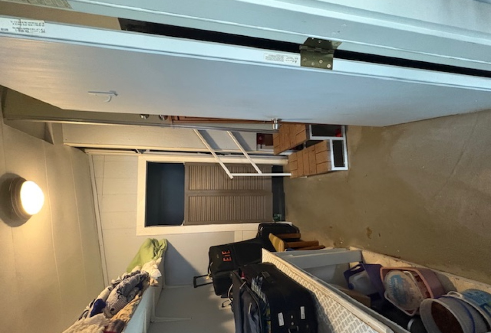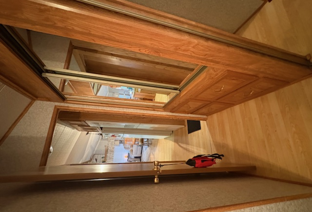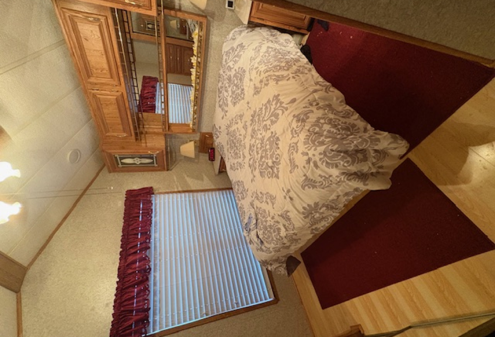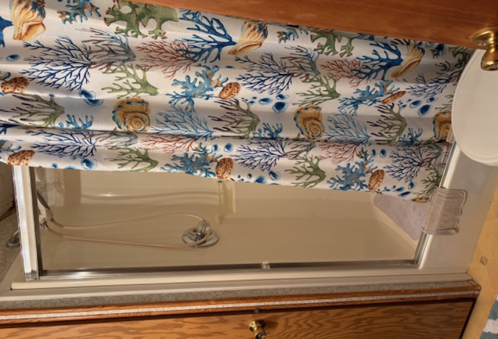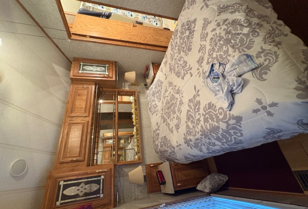 The rear bedroom has space for queen bed and has a full wall closet and drawer storage space. There is an entry door to the bathroom from the bedroom as well as hall entry. The bath has step-in shower and vanity with cabinet storage.