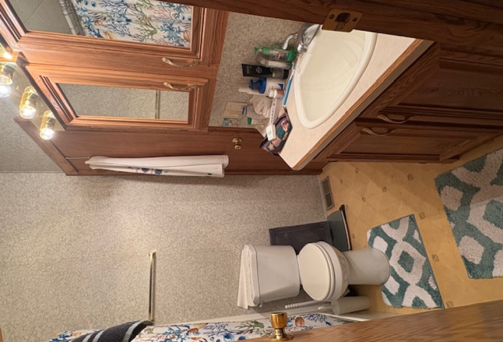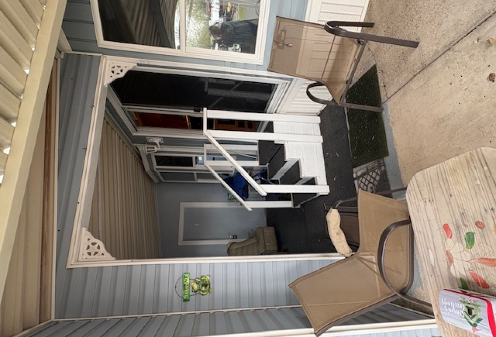 You can exit the hallway door into the room addition which is divided into three sections. The rear section has a newer full-size washer/dryer, work table and storage space. The mid section is currently used for additional living space and has an entry door to the front enclosed patio section. There are thermal windows in all sections of the room addition and it could easily be converted to heated/cool space, almost doubling the size of living space in this park model.