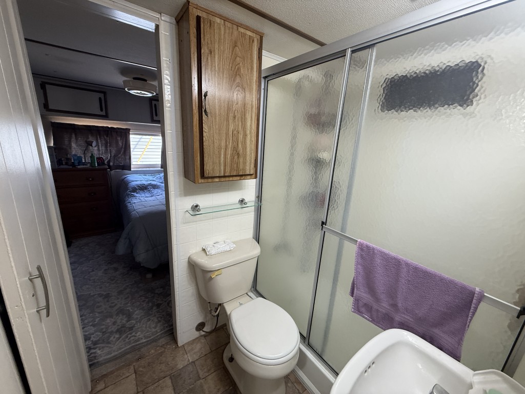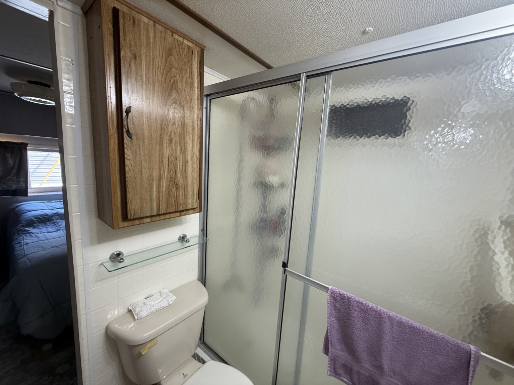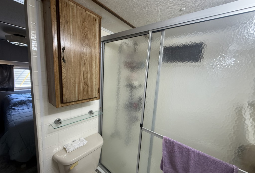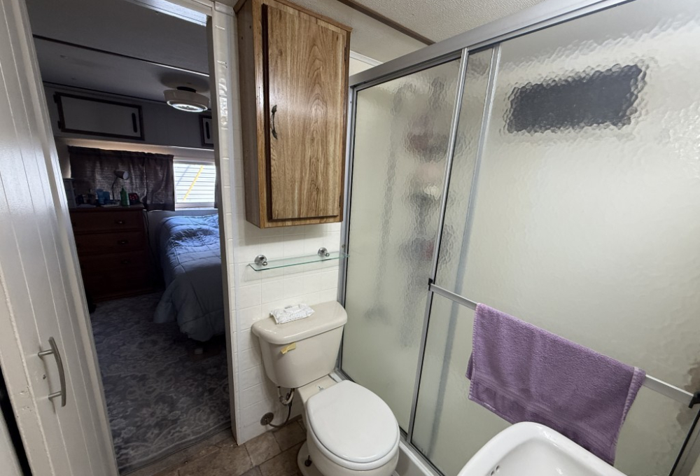Inside, you’ll find a walk‑in shower, a full‑size washer and dryer, and additional bedroom space located in the Texas room, providing extra flexibility and comfort.
