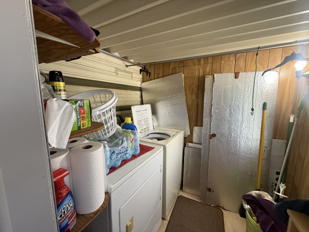 Recent upgrades and improvements include solar screens on the exterior windows, vinyl siding replaced on the south side in 2024, a roof replaced in 2025, and a new refrigerator/freezer and water heater installed in 2022. A newer pressure washer is also included.
