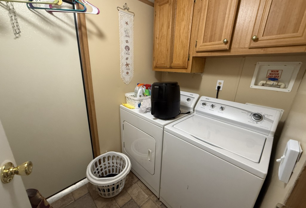Retreat to the spacious master bedroom, where double French doors lead to a walk‑in shower. A dedicated laundry room with a full-size washer and dryer adds ultimate convenience.