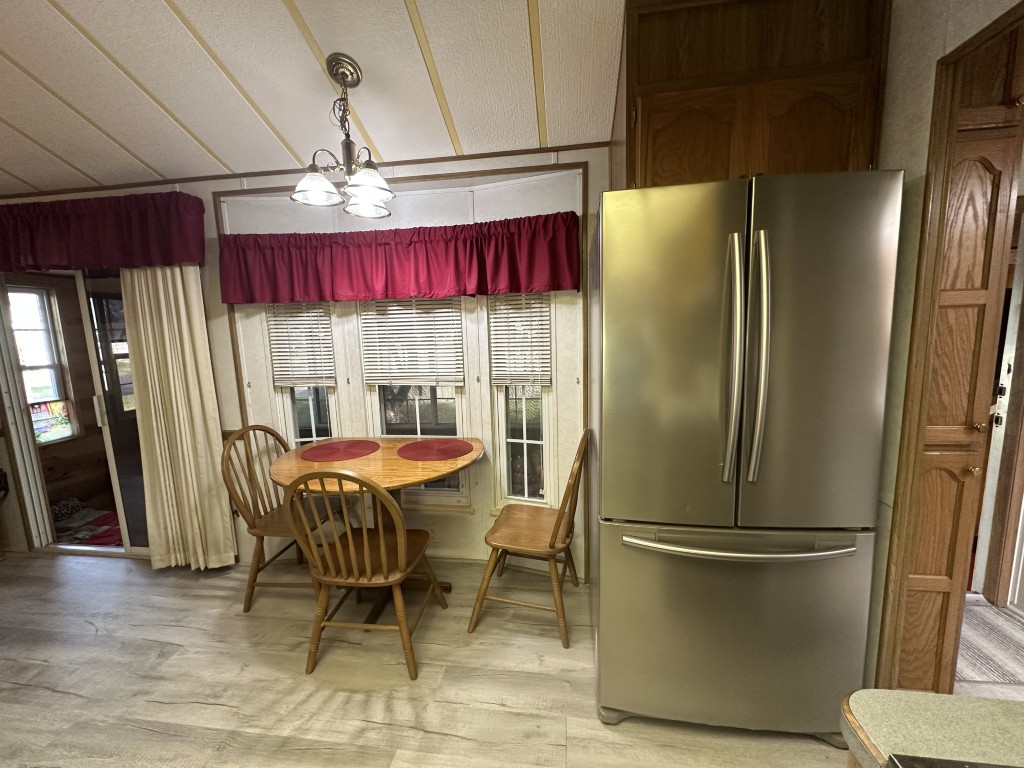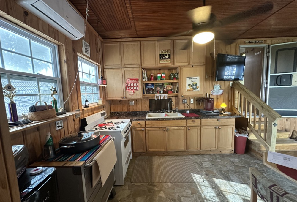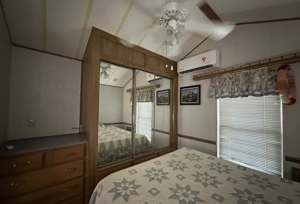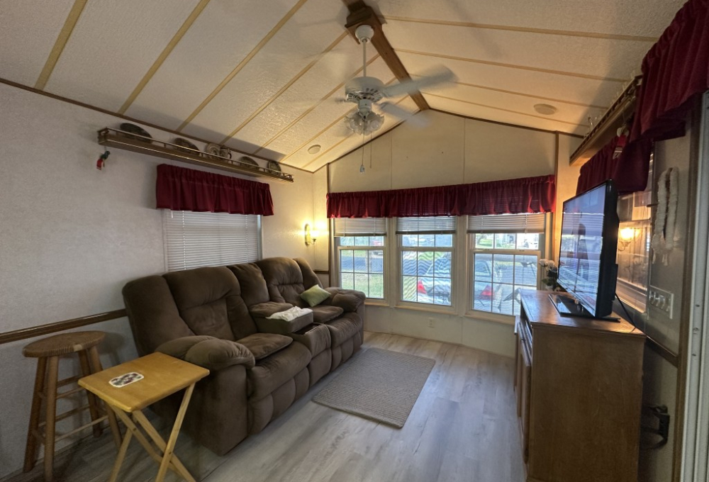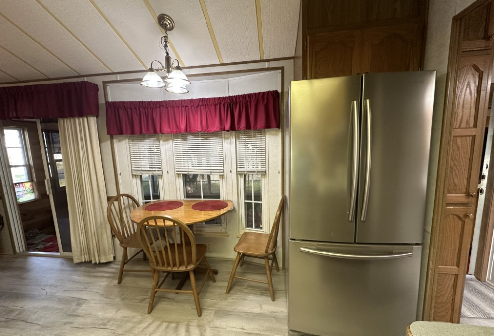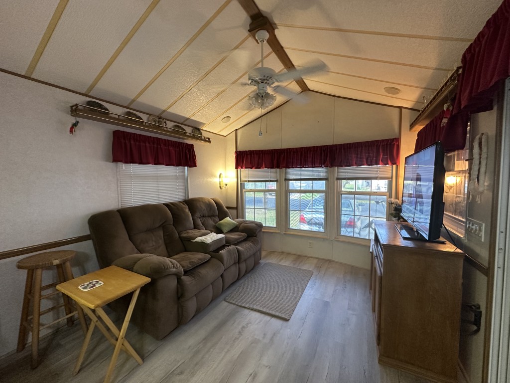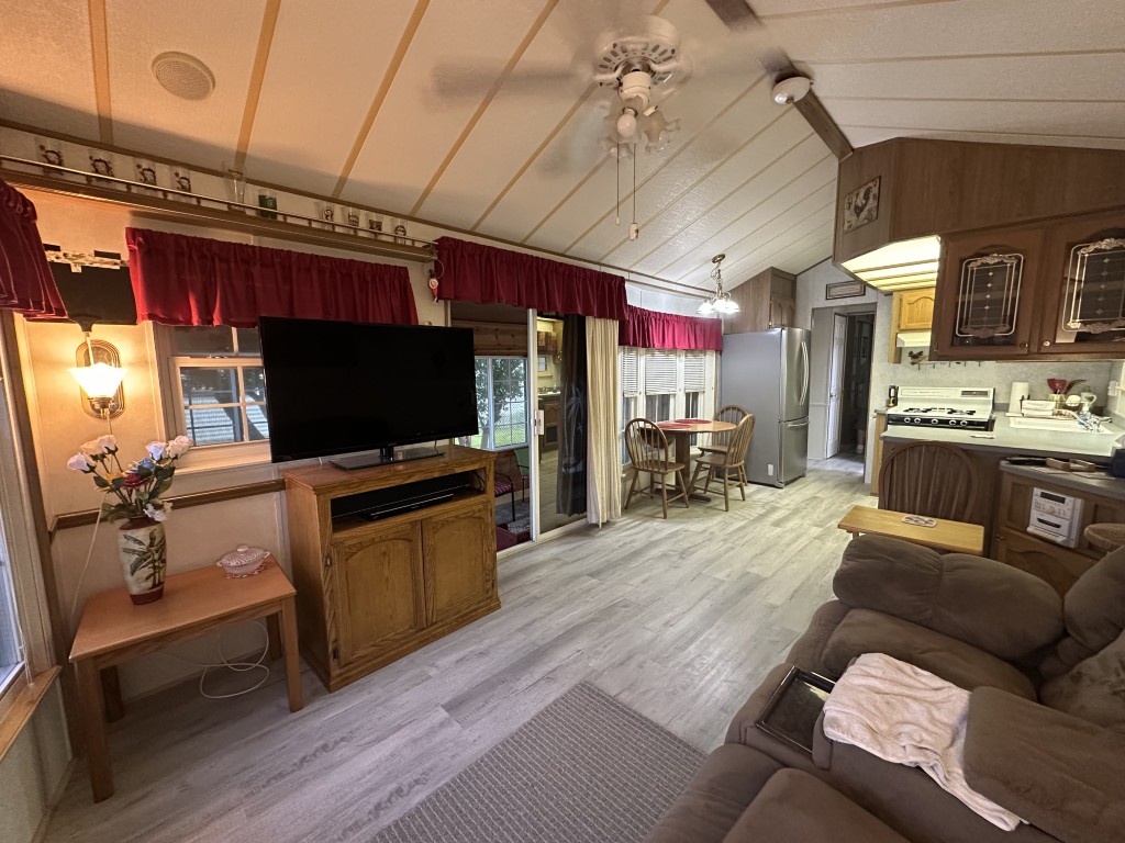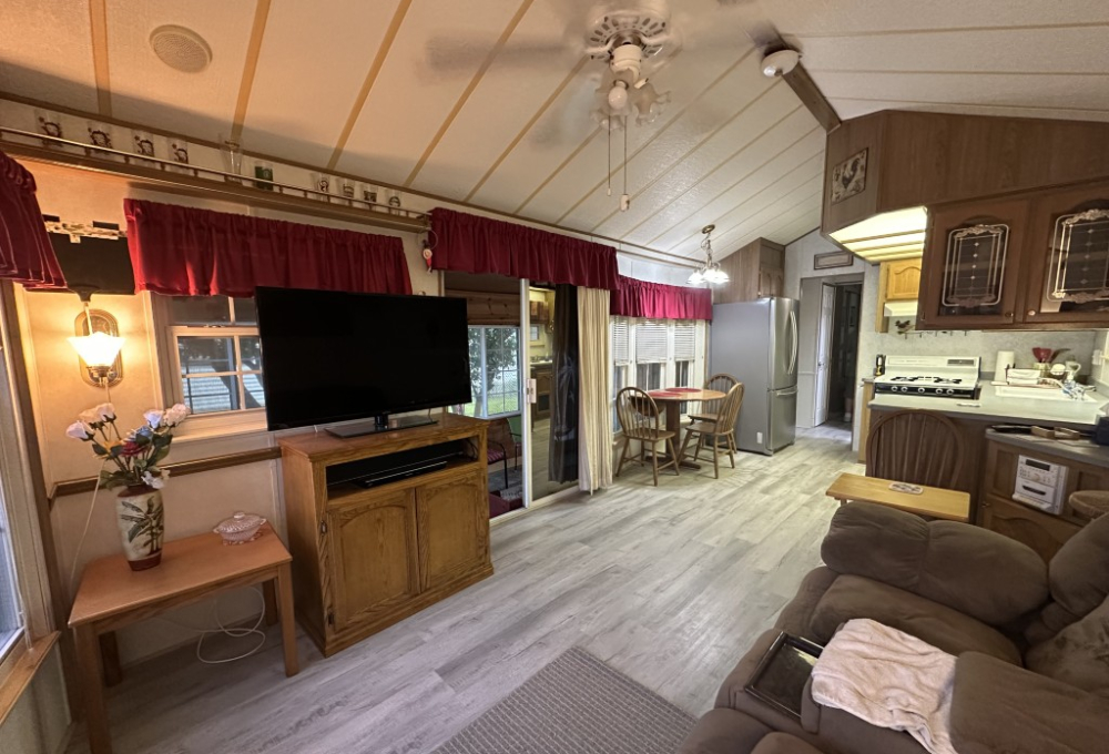 Discover this delightful park model with 740 sq ft of living space nestled in a vibrant 55+ community, where you own the land and can take advantage of an array of exceptional amenities. The property stands out with its inviting Texas Room, featuring a well-equipped kitchen and an electric fireplace—perfect for cozy evenings that evoke the warmth of a rustic cabin retreat.