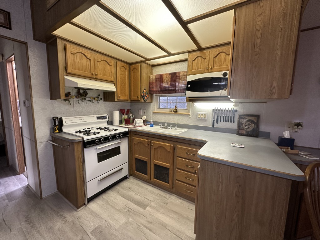 More features include a gas golf cart for easy community travel, a sprinkler system to keep your landscaping lush, and a variety of fruit trees that create a serene outdoor haven right in your own backyard.