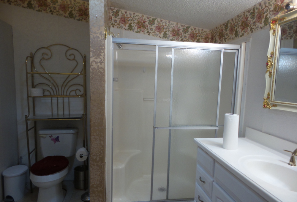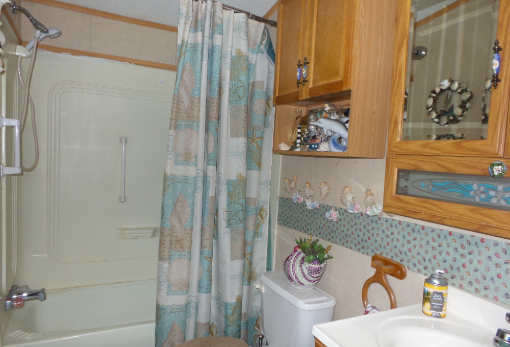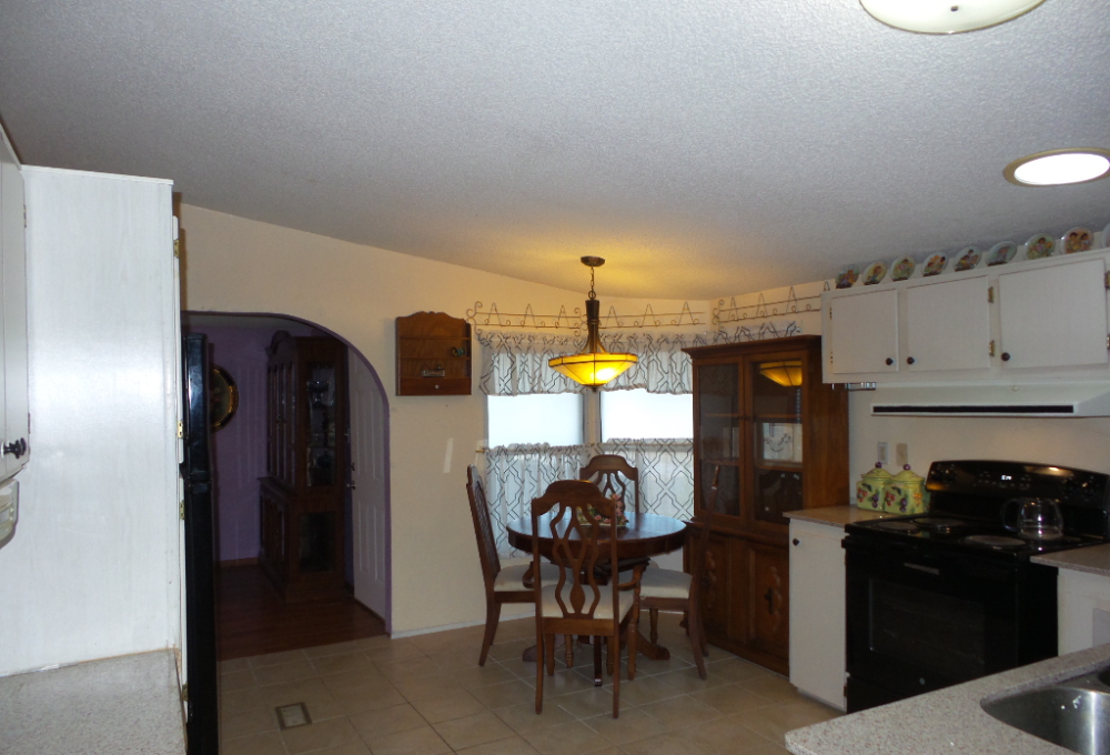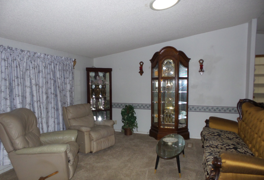 Redman Trinity double wide 28x44’ (1232 sq ft) 3 bedroom, 2-bathroom, Manufactured home with TX room, Garage & storage. From the Carport/Patio you enter the front Tx room with China hutches & matched period-style sofa furniture upon wood laminate flooring. The ceramic tiled kitchen is spacious with a dinette near the front corner windows. A laundry room with W/D & pantry are opposite the table. Granite countertops surround the kitchen with ample workspace/cabinetry & include all Electric range, dishwasher, Kenmore fridge & a microwave. From the Livingroom featuring a matched period style sofa & recliners is access to the extensive garage & carport area. The 3 bedrooms are beyond & beside the Livingroom. The Q Master bedroom has a walk-in closet & en-suite bathroom with a walk-in Shower & closet. The main bathroom: T/S is off the Livingroom which is convenient to the Guestrooms/office. Dressers/side tables & a desk are available for your choice of space usage. A Q white wood bed with drawers beneath also has display shelving & a walk-in closet. The electric door garage offers a large parking area & extends around the back to a golf cart garage/storage shed & back patio. The home has a steel roof & updated flooring, plus maintained A/C. You can customize & personalize this home to your taste, with added TLC & updates. Call Rita at 712-281-9862 for a tour & more information on the Coop owned HOA, here.