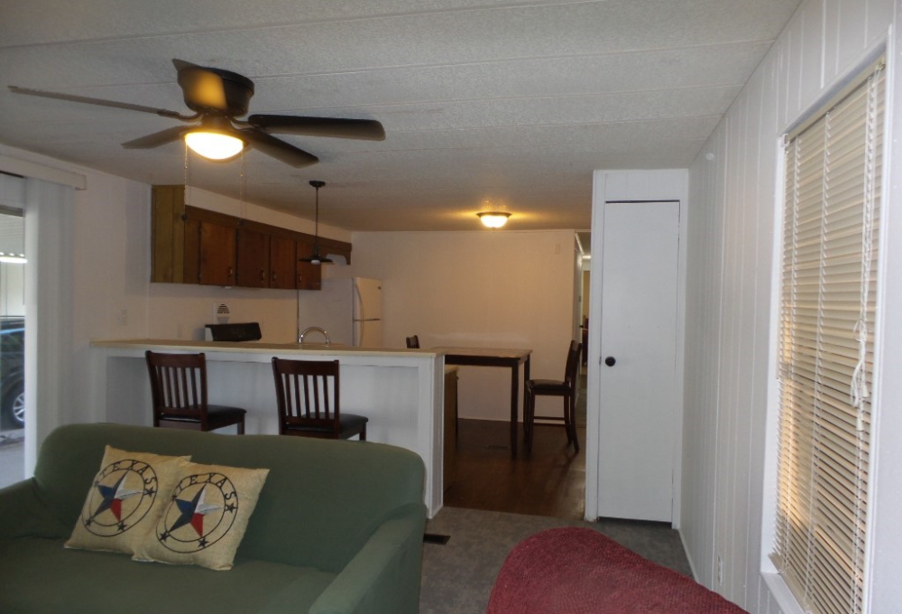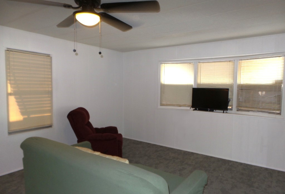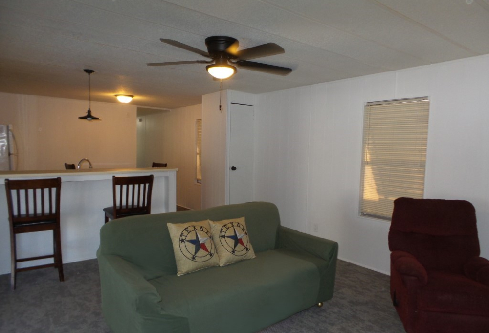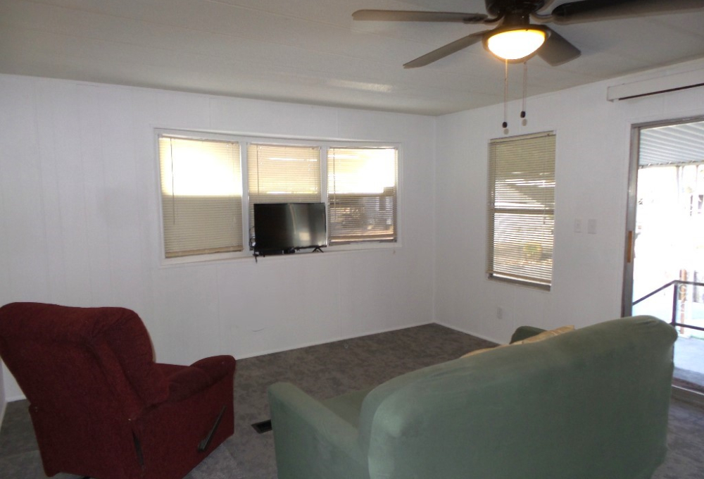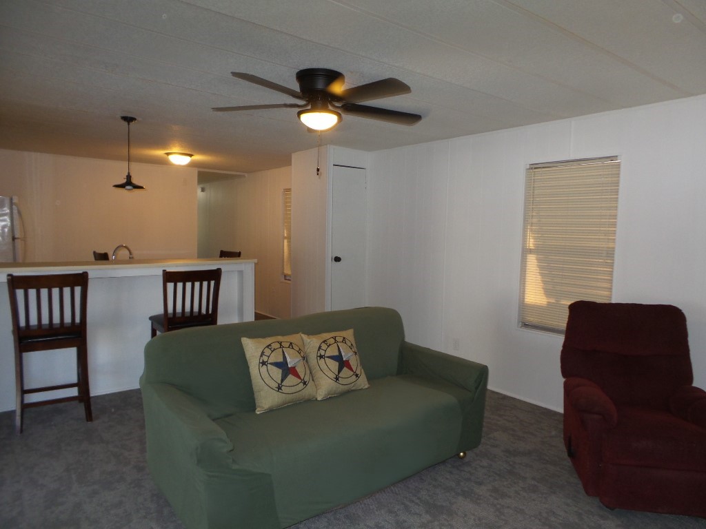 Amherst 14x65’ (910 sq ft) 2-bedroom 1.5 bathroom Manufactured home with carport & shed. Upon entering this front Livingroom it’s quite evident of the renovations in new lighting & fresh paint providing a light & refreshing feel with updated grey toned carpet beneath the sofa & recliner facing the TV and northern exposure. A bar/counter extends with 2 bar stools separating the dine in kitchen with updated appliances, fixtures & a hi-top table faux marble top table. Along the hallway is a guest bedroom/sewing room/office providing versatile options. Continuing towards the back door exit is the W/D adjacent to the bathroom, featuring a lovely tiled Dbl shower & bidet stool! The Q master bedroom is at the back of the home with a L mirrored closet & convenient ½ bath included. Alamo Palms provides Spectrum wifi & TV included with your lot rent in addition to numerous activities & a great pool & exercise room. Please Call Rita for a tour of this home & resort community at 712-281-9862.