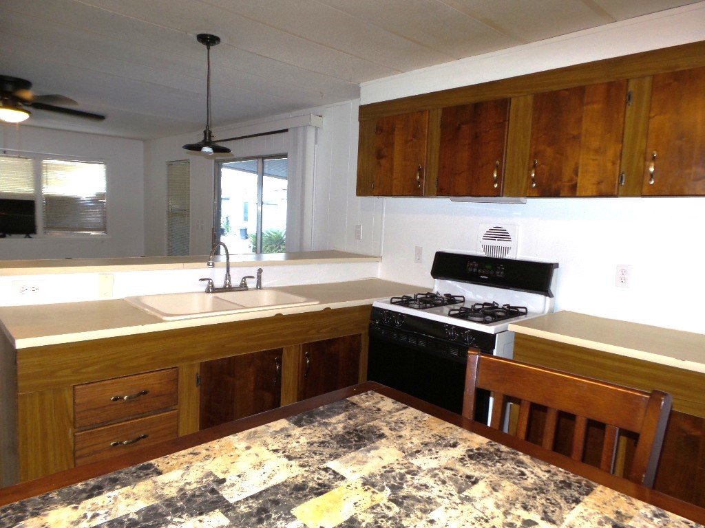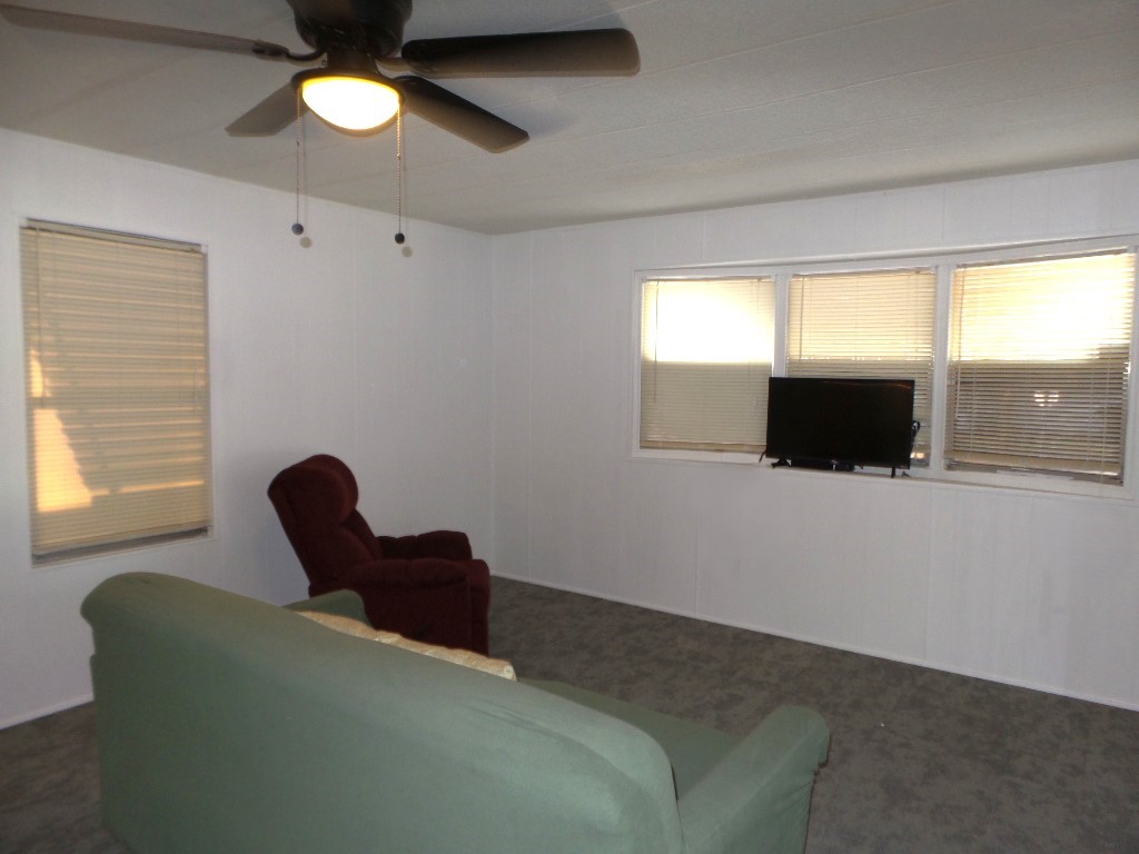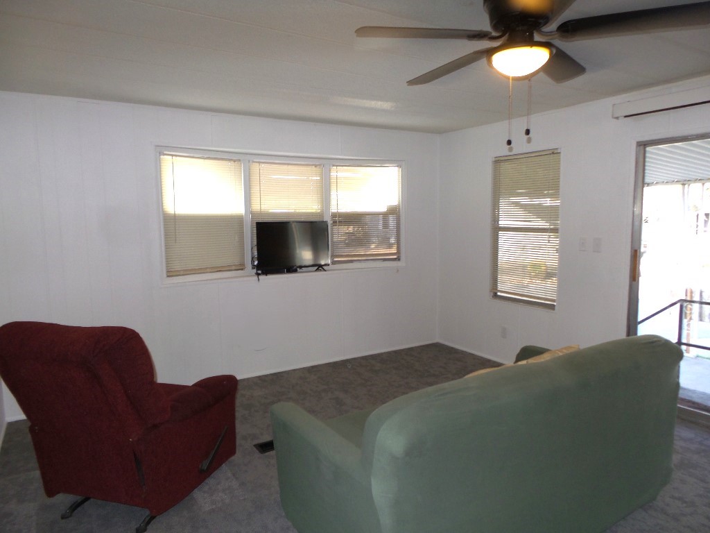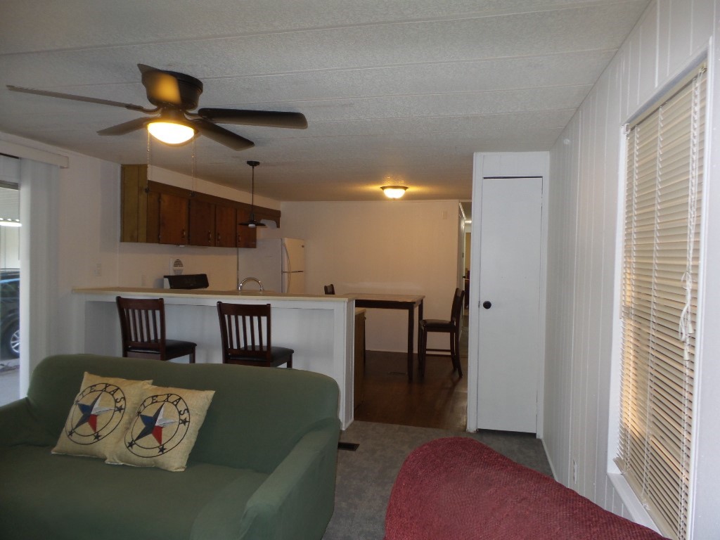 Amherst 14x65’ (910 sq ft) 2-bedroom 1.5 bathroom Manufactured home with carport & shed. Upon entering this front Livingroom it’s quite evident of the renovations in new lighting & fresh paint providing a light & refreshing feel with updated grey toned carpet beneath the sofa & recliner facing the TV and northern exposure. A bar/counter extends with 2 bar stools separating the dine in kitchen with updated appliances, fixtures & a hi-top table faux marble top table. Along the hallway is a guest bedroom/sewing room/office providing versatile options. Continuing towards the back door exit is the W/D adjacent to the bathroom, featuring a lovely tiled Dbl shower & bidet stool! The Q master bedroom is at the back of the home with a L mirrored closet & convenient ½ bath included. Alamo Palms provides Spectrum wifi & TV included with your lot rent in addition to numerous activities & a great pool & exercise room. Please Call Rita for a tour of this home & resort community at 712-281-9862.