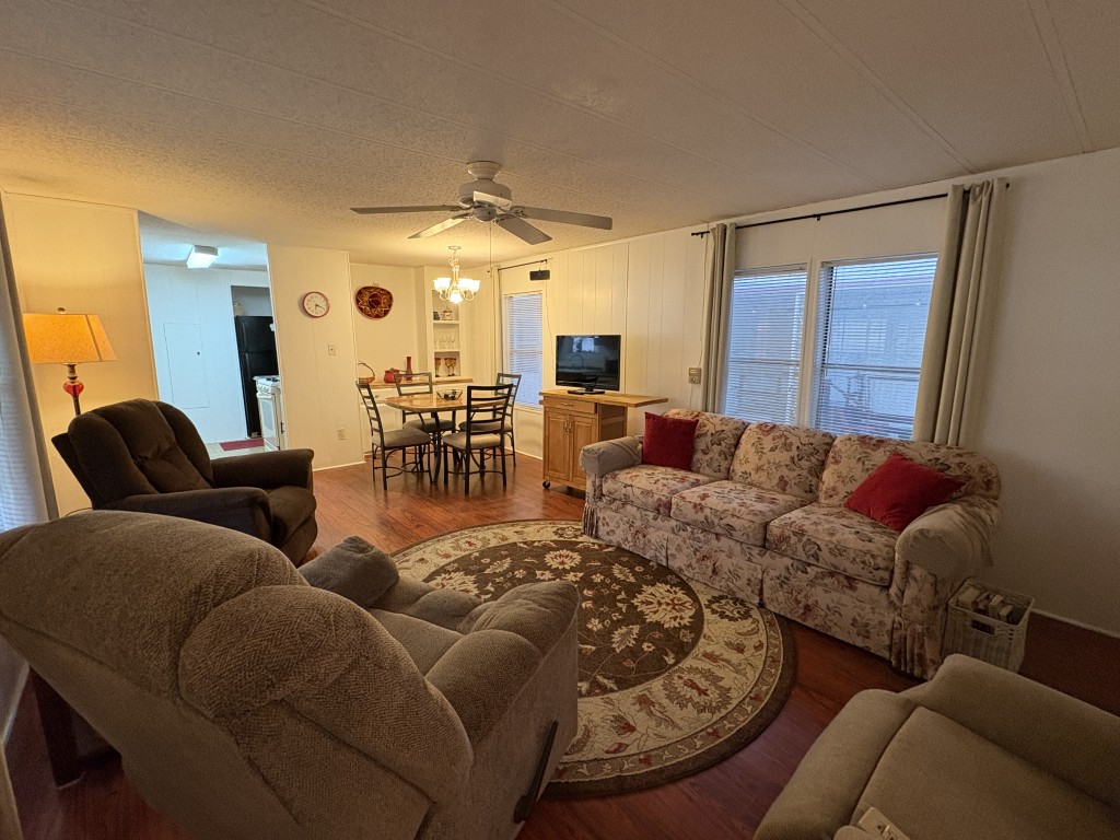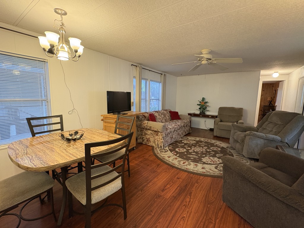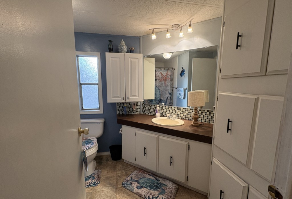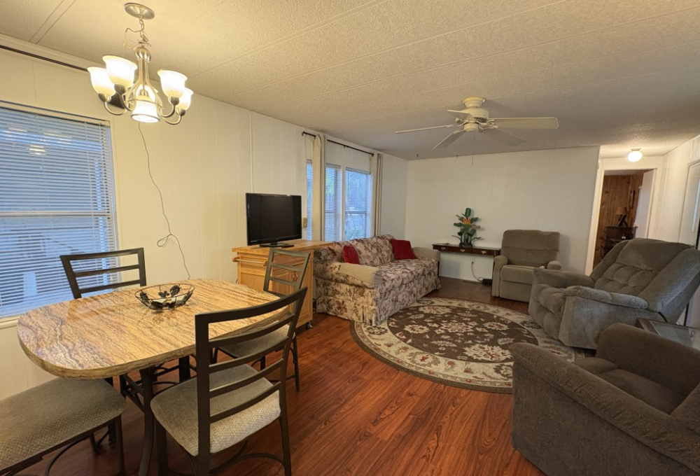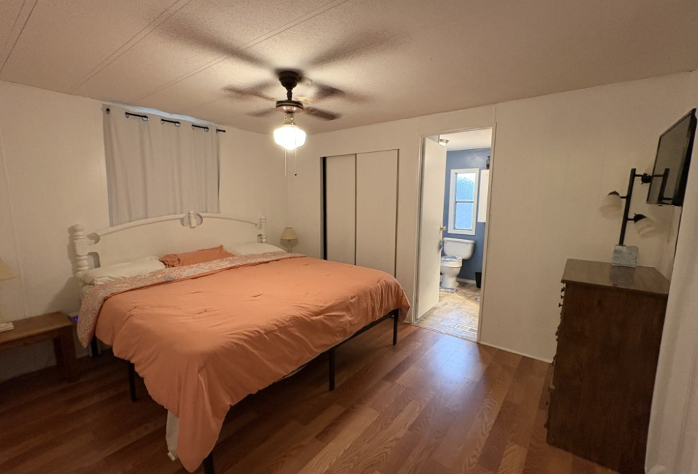 Beautiful flooring, New metal roof, Fresh paint inside and out, New skirting, new steps, and new exterior shade/sunblock screens. Remodeled kitchen with updated finishes. New window shades and curtains. Two new king beds/mattresses. New 55" TV with soundbar.
