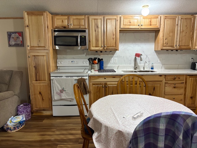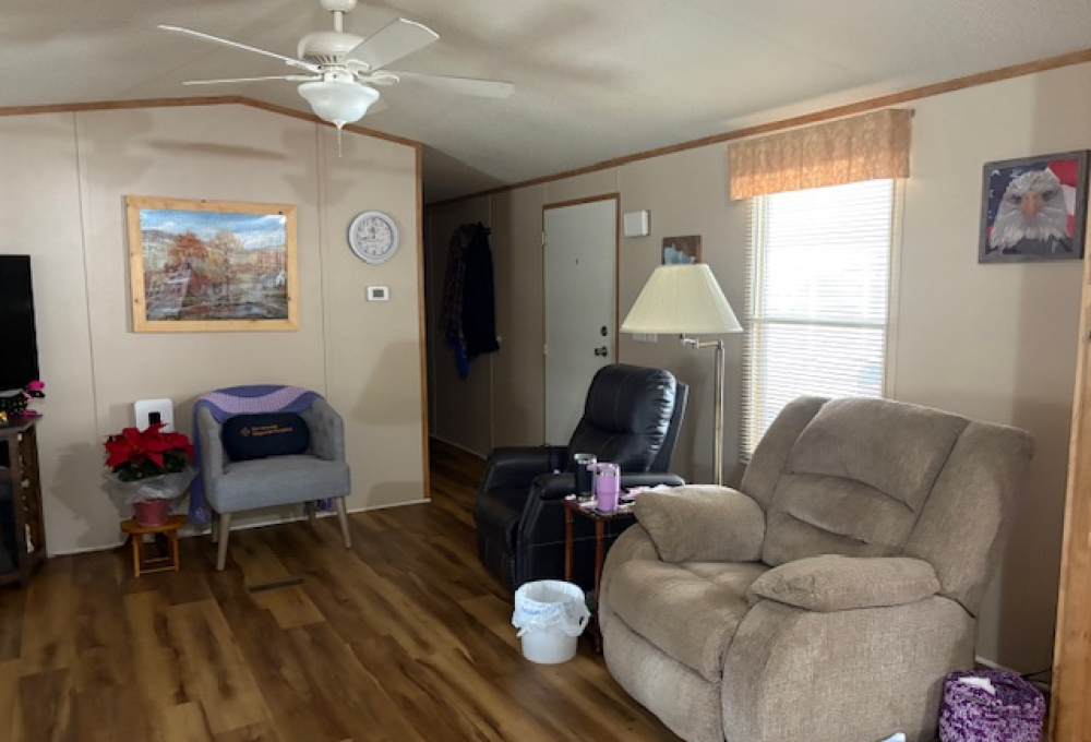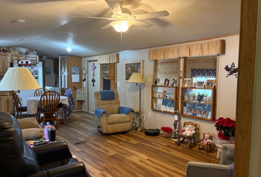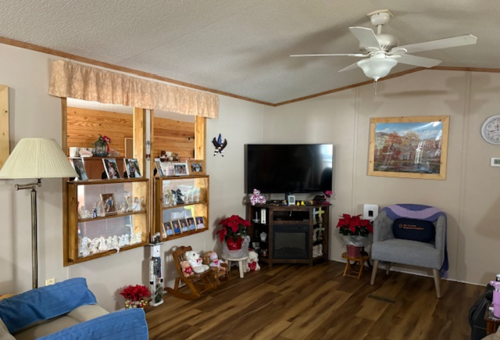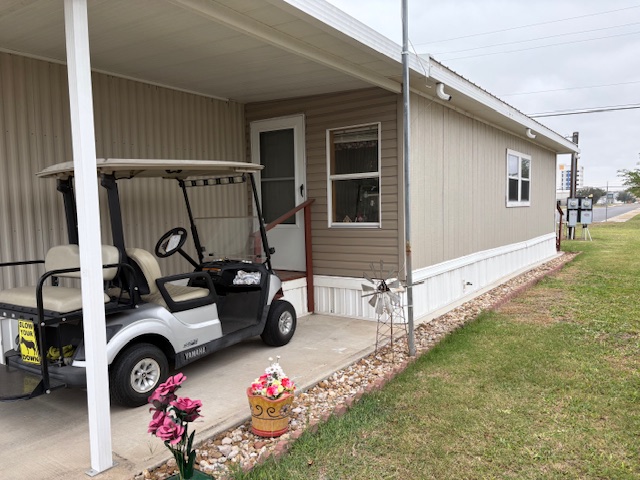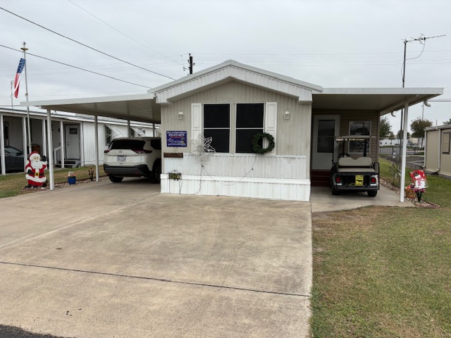 Totally updated 2003 Fleetwood mobile home in McAllen Mobile Home Park is move-in ready. This meticulously cared for, updated, and expanded home is a must see. Recent updates include new laminate plank flooring throughout house, new kitchen cabinets in 2020, new metal roof 2023, 3-ton AC/heat unit installed in 2023 with 5-year warranty, washer and dryer new in 2022, tankless water heater installed in 2025, new carport in 2023. This mobile home has awnings on both sides for patio or parking use, a very large garage/storage area, plenty of room for crafts/quilting/sewing in the remodeled Texas room, and workshop and tool space in the large, attached garage.