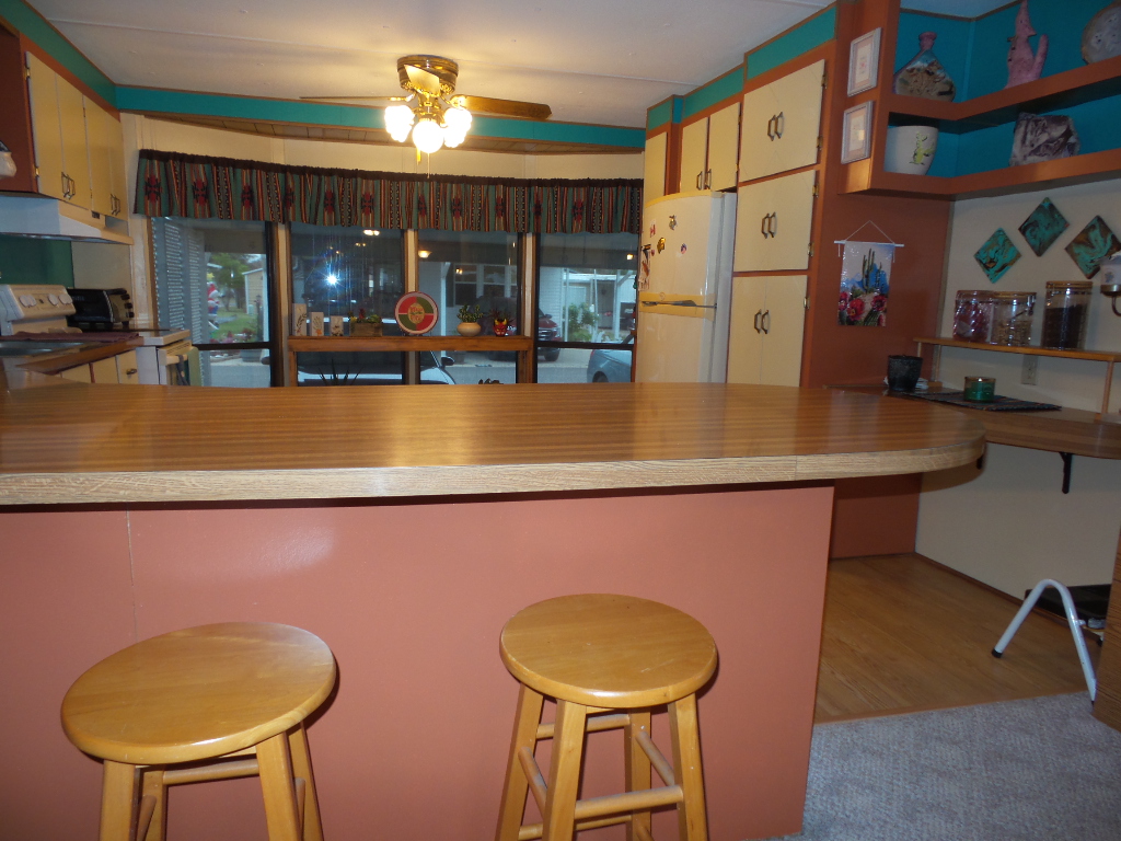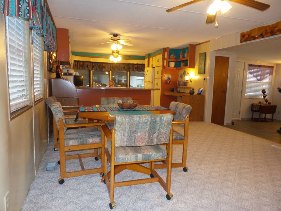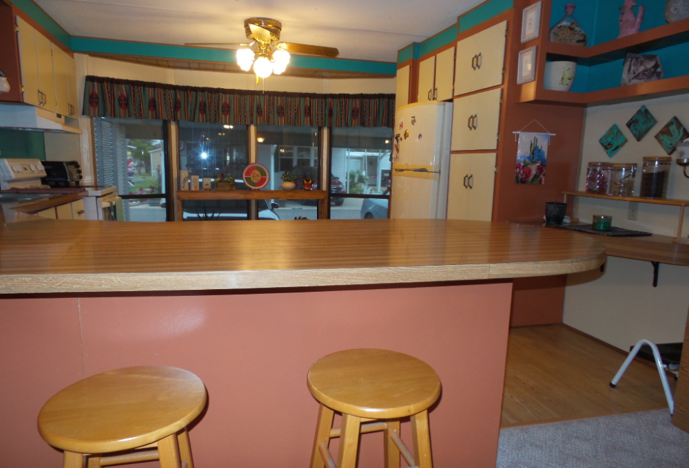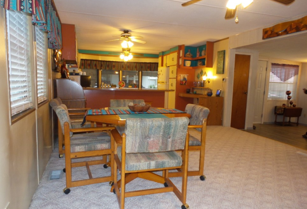 Bellavista Bonneville 14x66’ 2-bedroom, 1.5 bathroom Manufactured home with a TX room, deck & workshop adding to a total of 1282 sq ft of total living space! An XL lot with a carport for 2 cars awaits, with an inviting deck entrance to the home. The 32x12’ Texas room provides a sofa sleeper & chairs with the tv, plus a back door exit to a patio & 11-8x13-10’ shed/ workshop. The TX room also has access to the ½ back & an open archway into the dining room, with a desk & China hutch. A dinette overlooks the yard, with more seating at the bar diving the front kitchen area. This spacious dream kitchen has extensive cabinets/countertops, pantry & closet with a panoramic view from large front windows. Along the hallway is the Q guest room with a ½ bath, with dual access to the bedroom & Tx Rm. Near the back door is the W/D & updated bathroom featuring a new vanity & walk-in shower with extra linen storage. The Master bedroom has plenty of room for K bed & dressers, with bedside tables & the closet. This home has several coat closets & extra storage! It’s been painted & updated with new flooring, faucets & sink, etc. Updated appliances, W/H, A/C/H. It’s energy efficient with a steel roof & thermal windows added. Located on a spacious lot with citrus & palms trees, a fun resort with lower-lot rent & numerous amenities. Call Rita for a tour appointment at 712-281-9862!