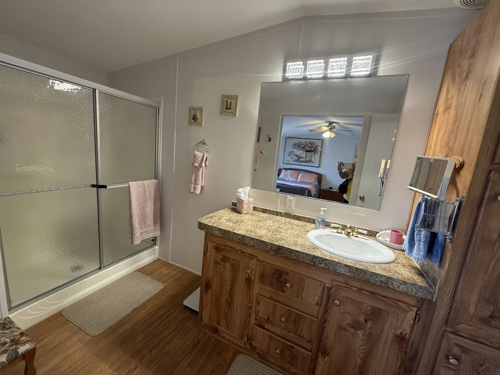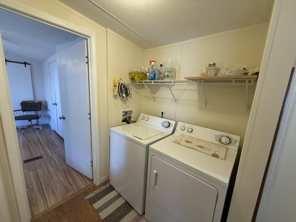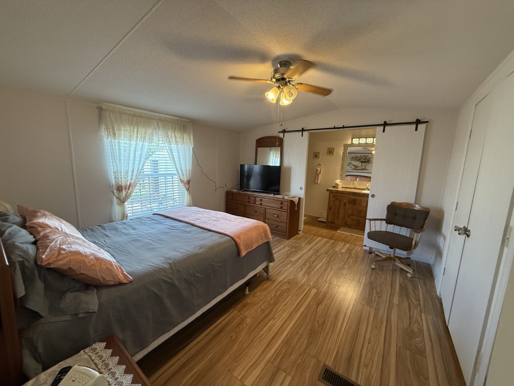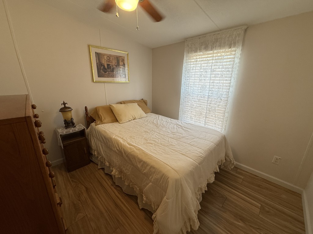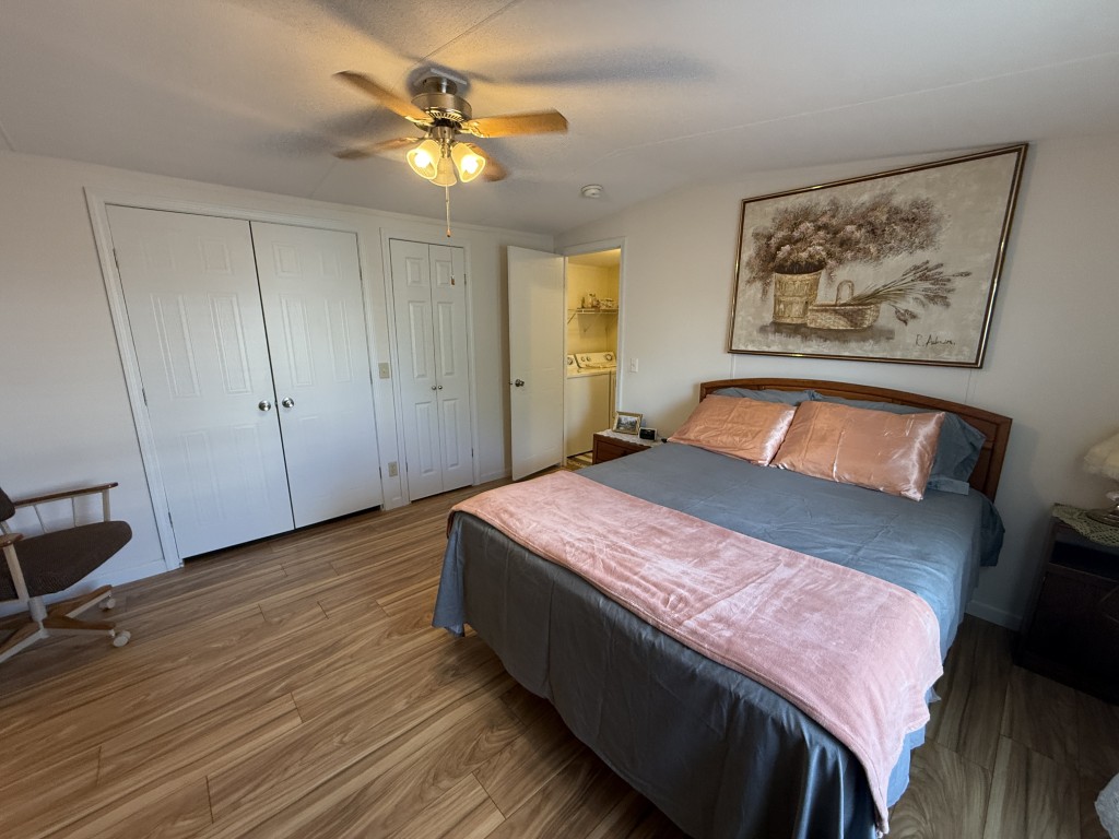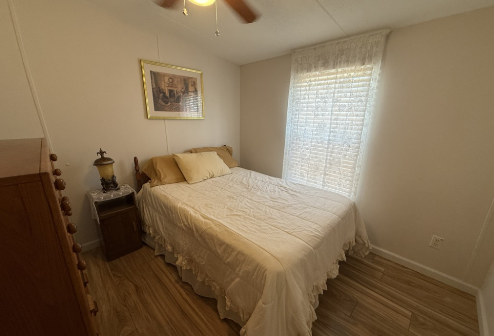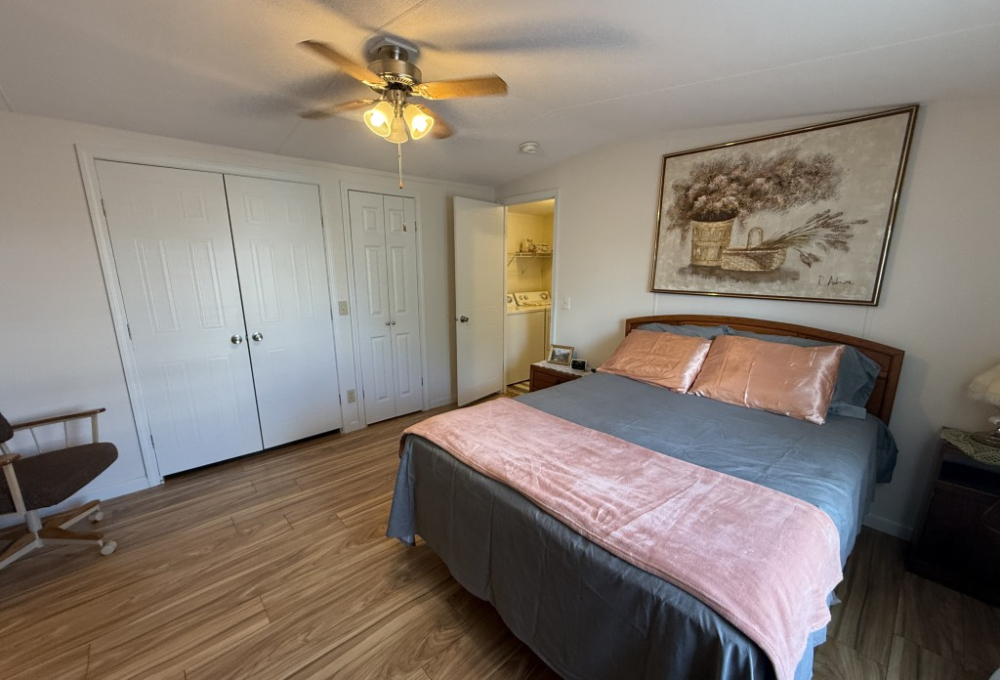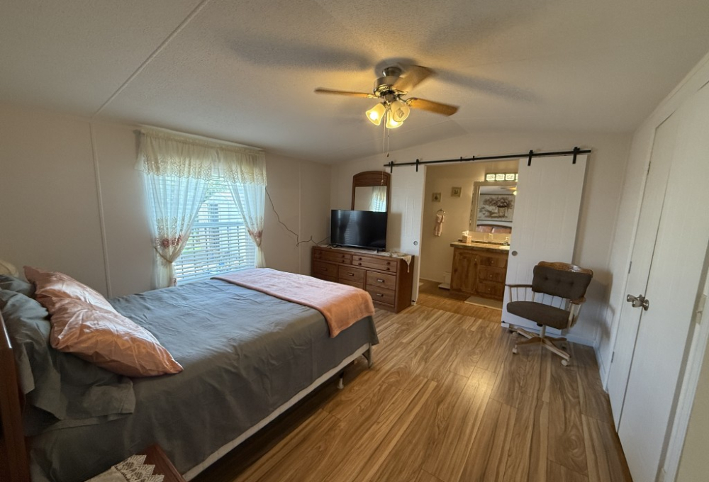 One of the standout features of this home is the expansive outdoor space. Whether you are hosting barbecues, or simply soaking up the sun, you'll find plenty of opportunities to enjoy the outdoors in your own private oasis. The kitchen is in the front of the home and has a 2024 dishwasher and the wood laminate flooring was replaced in 2022. The home has colonial trim on the base and door jams and wanes coating. The outside and inside have been freshly painted and there is a new ceiling fan in the living room and guest bedroom. The master suite is spacious and a very large lighted closet and there is an ensuite bathroom with a farm door entry and a separate toilet area and a walk-in shower. The laundry area has a new 2025 Whirlpool washer.
