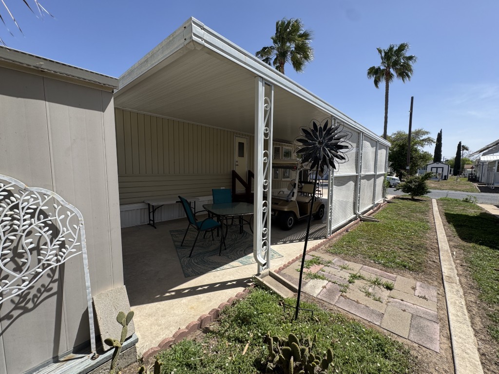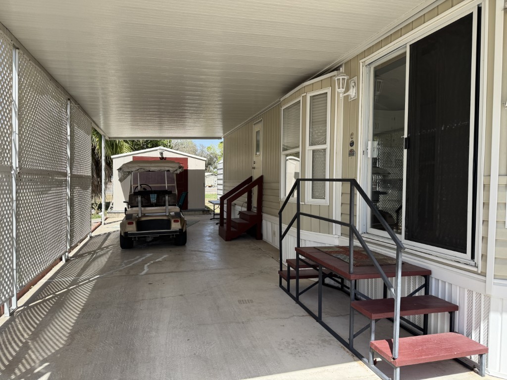 - Covered carport and patio area