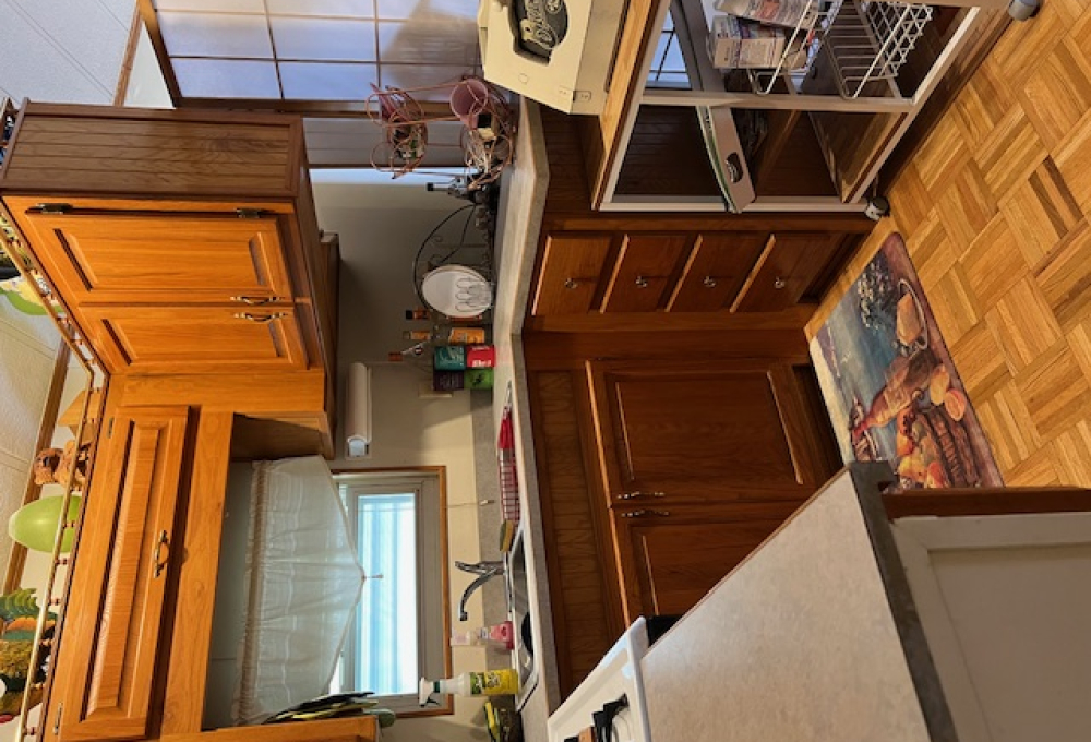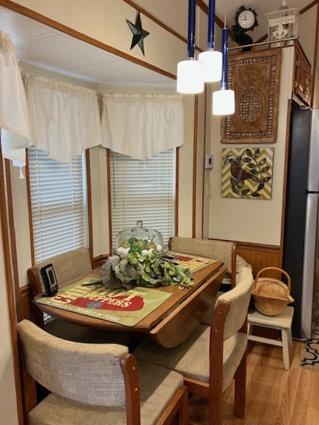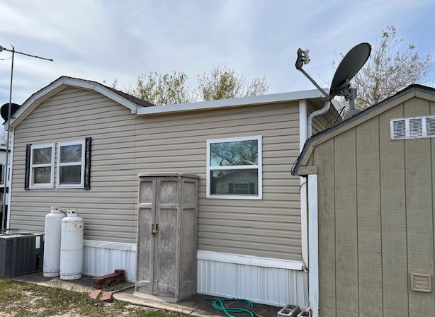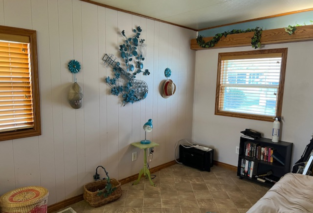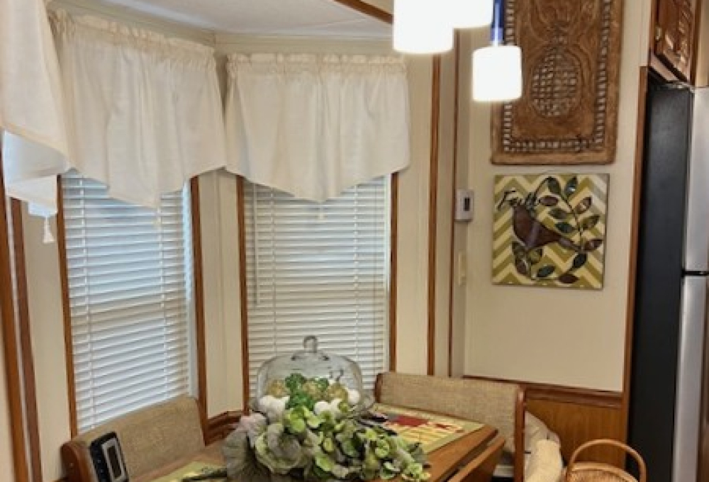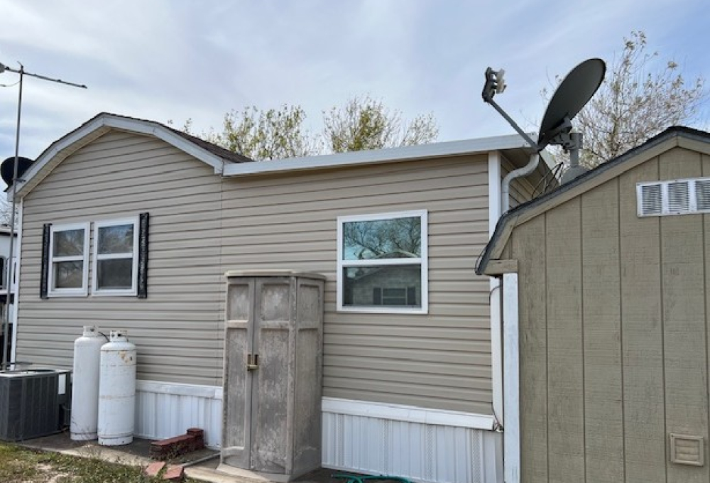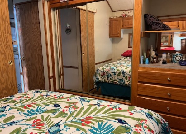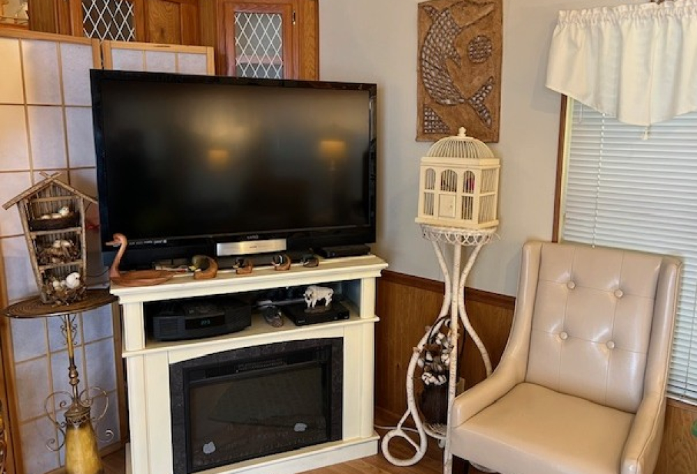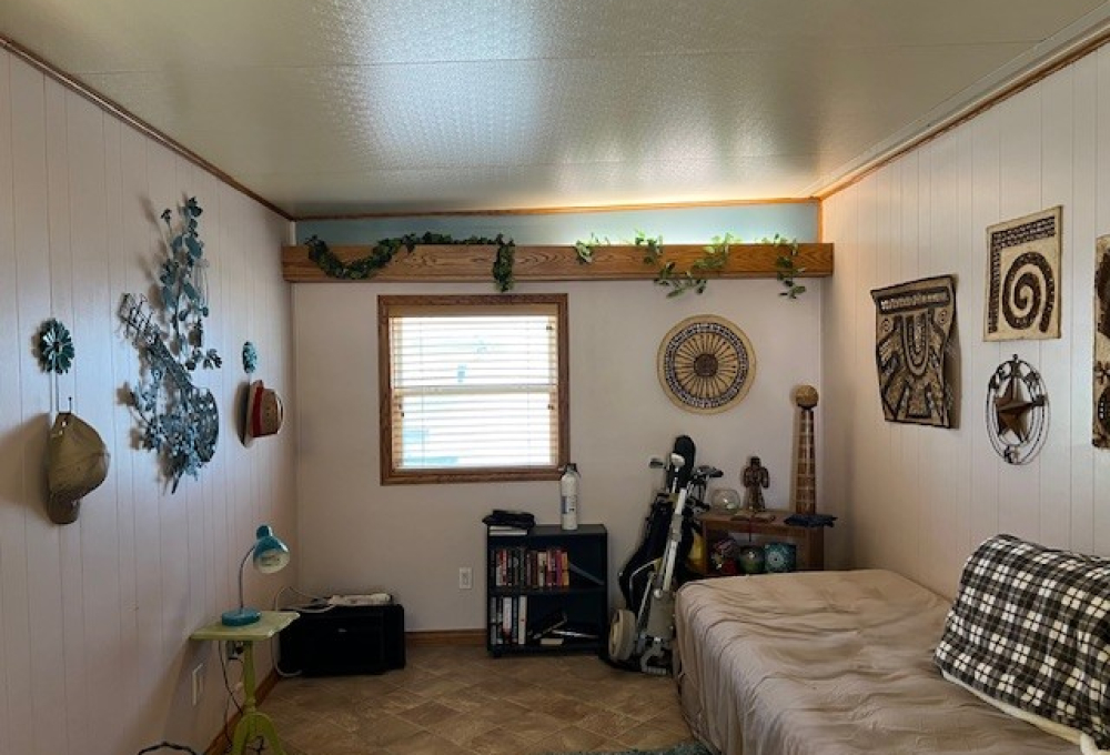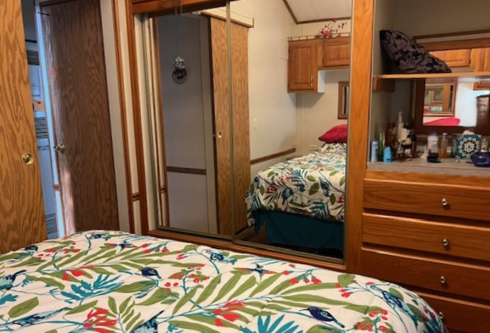 Cedar 1999 1-2 bedroom, 1 bathroom Park Model 12x33’ (396 sq ft) plus TX Room =558 sq ft of Living space. Driving along the tree lined street you pull into a XL carport for 2. A privacy latticed deck allows relaxation & guests. Inside the patio door is the Livingroom with 2 recliners facing the TV atop an electric fireplace with great ambiance. A glass dinette will be placed withing the bay window. The kitchen is efficient with a gas range, microwave & brand-new fridge, plus a pantry. The bathroom has a T/S combination. A Q bedroom is within the bedroom with under bed storage & a triple mirrored closet & drawers beneath. From the hallway is the entrance to the TX room which is presently a bedroom with a closet & storage. An access door opens to the deck. A storage shed is at the back with a full-size W/D. Low maintenance is key with new upgraded shingles in 2025 & LVP flooring through the main rooms. Lot rent is economical with 6/6 & it’s located near the golf course & not far from the hall activities, pool, woodshop, exercise room, pickleball & more! Call Rita for a tour at 712-281-9862!