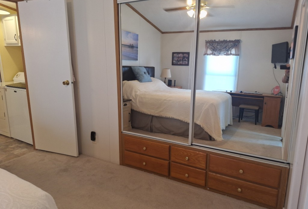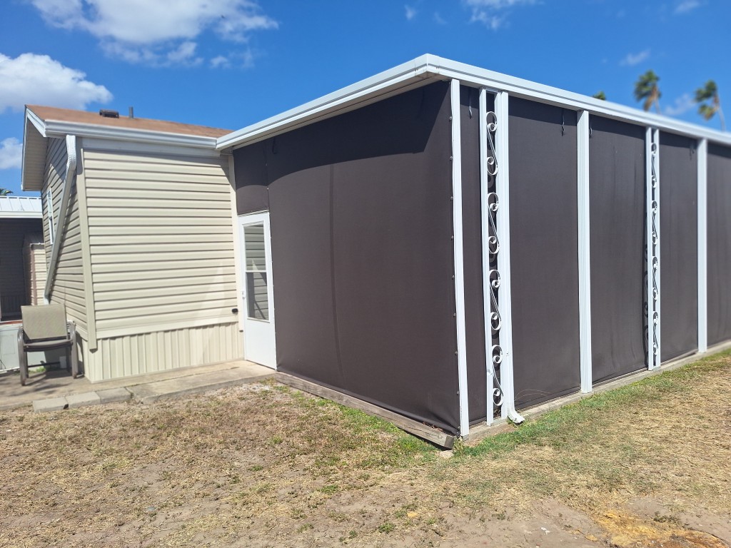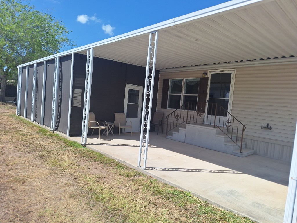 This beautiful 2 BR 2 BA - 16' x 48' Winner model mobile home has 768 sq. ft. of living space. Located in the nicest resort in the valley - Llano Grande Resort and Golf Club, Mercedes, TX, a 55+ gated retirement community. This spacious home is fully furnished with freshly painted light colored walls, has tons of natural light, carpet & laminate flooring. Washer & dryer are included. The kitchen & dining area has a bay window & features plenty of cupboard space. Master suite has a walk-in shower. It has a 24’ x 16’ screened-in sunroom with patio furniture where you may enjoy your morning coffee and entertain your friends. Covered carport for parking. The 8’ x 10’ storage shed has room to store your golf clubs & the handyman’s tools. Close to all amenities and a golf course is nearby for the avid golfer. This cheery home has been well maintained and is move in ready. Make this your Winter Home! Electric golf cart with Lithium batteries (2024) is also for sale.