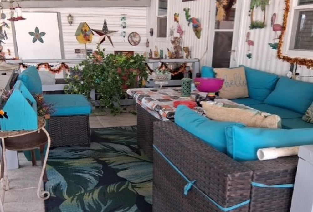 Located close to the pool and rec hall to enjoy meals and dances or to socialize.
