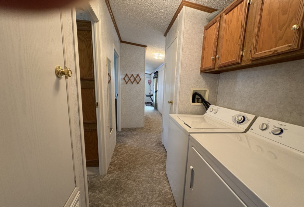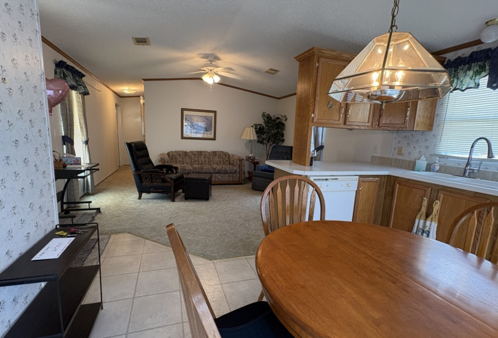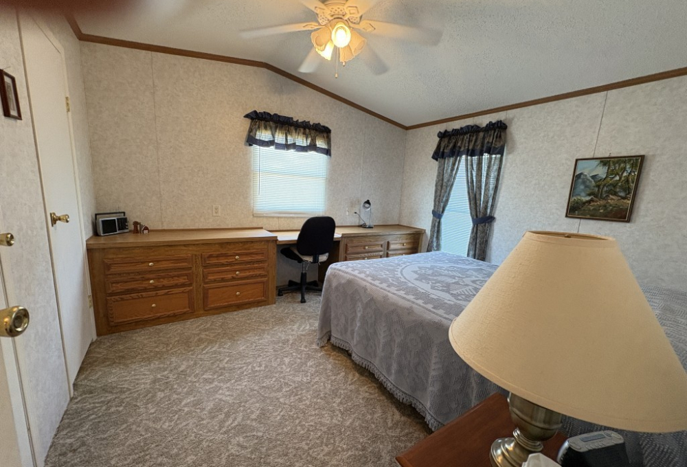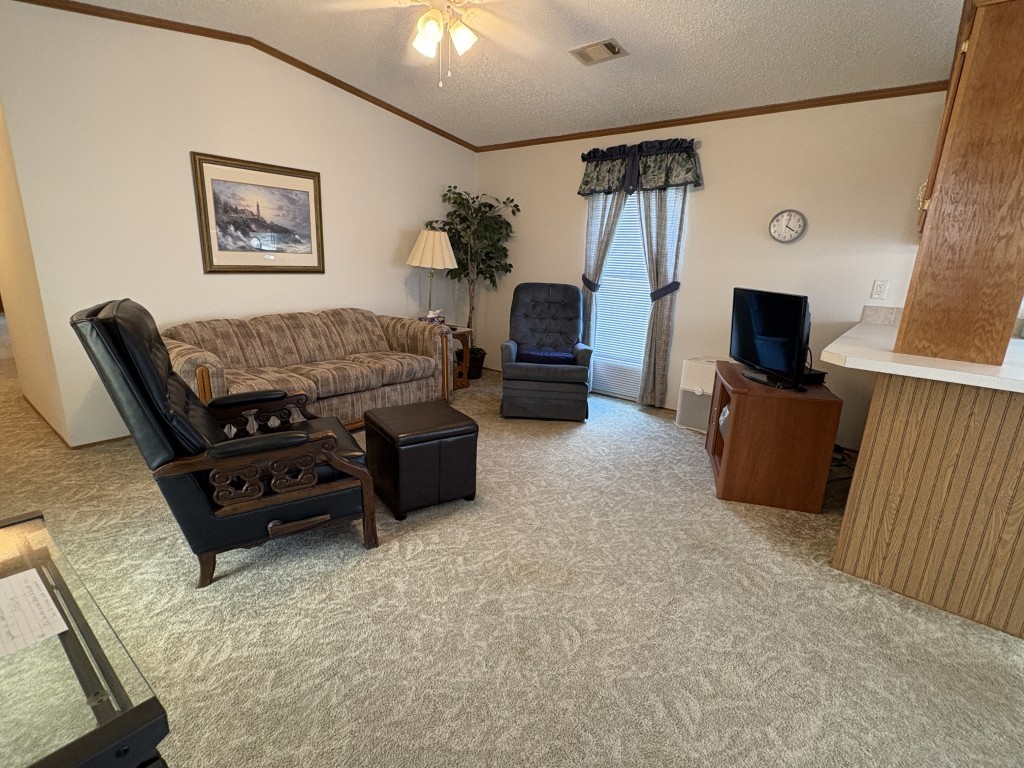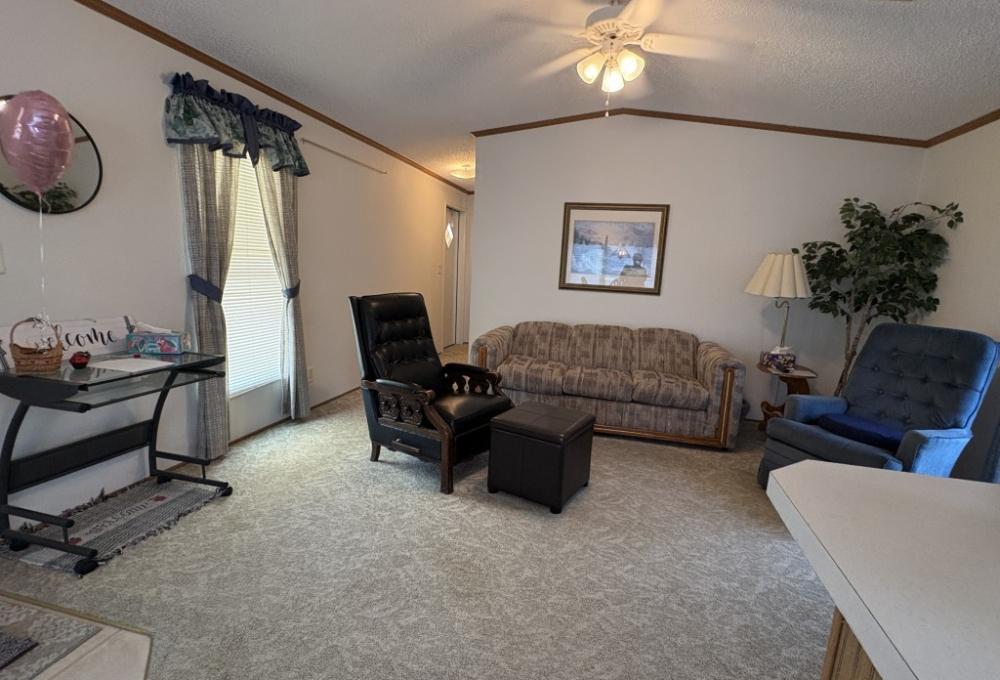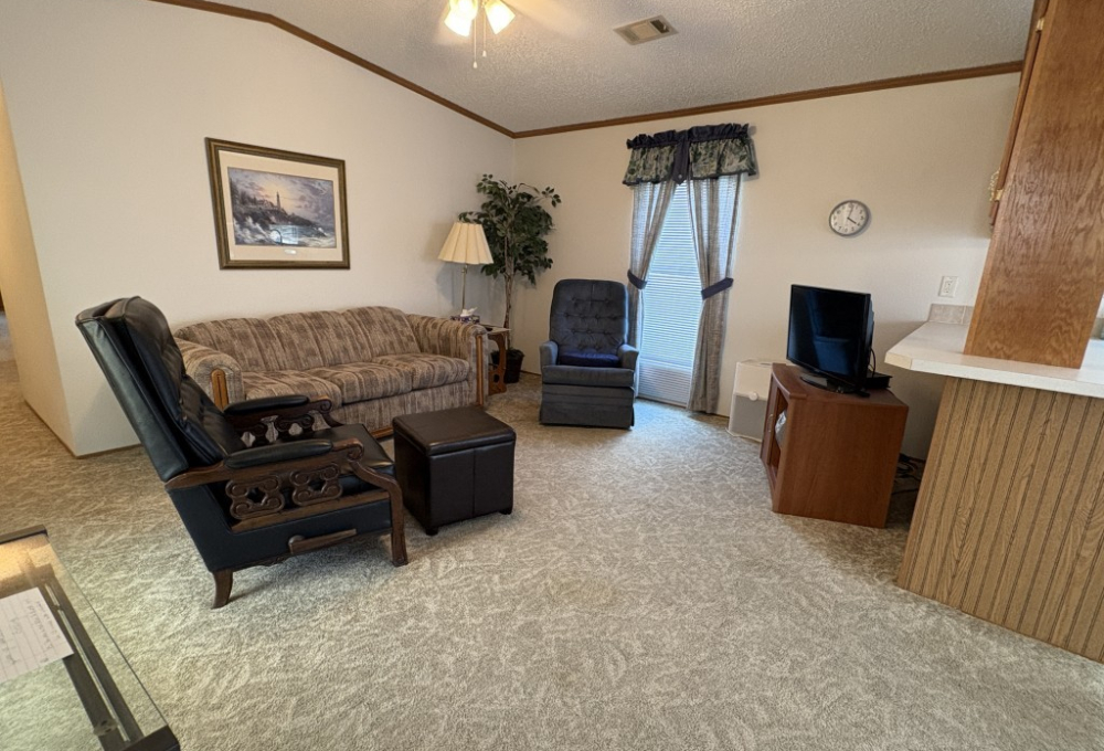 Welcome to your cozy corner-lot retreat! This charming 16x52 home features 2 bedrooms, 1 bathroom, and a convenient walk-in shower. The front kitchen is a true delight—flooded with natural light from large windows that offer a perfect view of friendly passersby. Sculptured, easy-care carpet flows throughout the home, adding comfort and style with minimal upkeep.