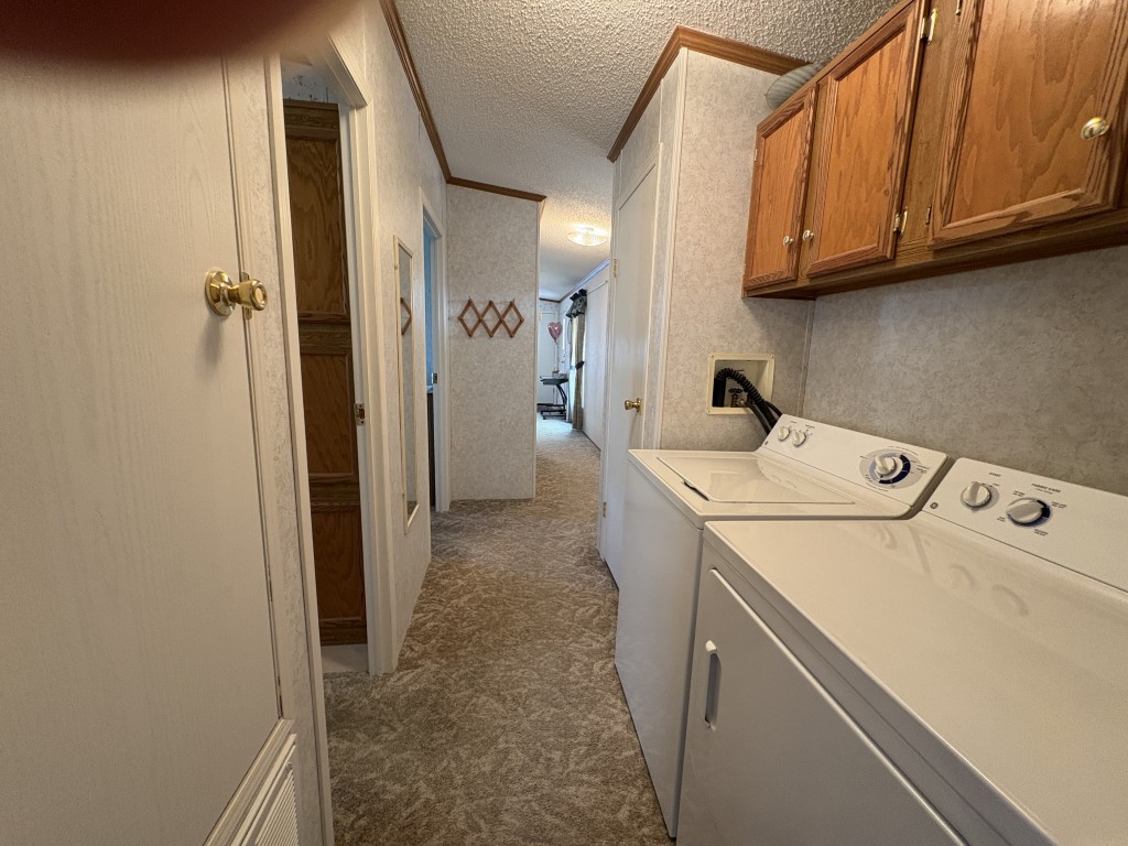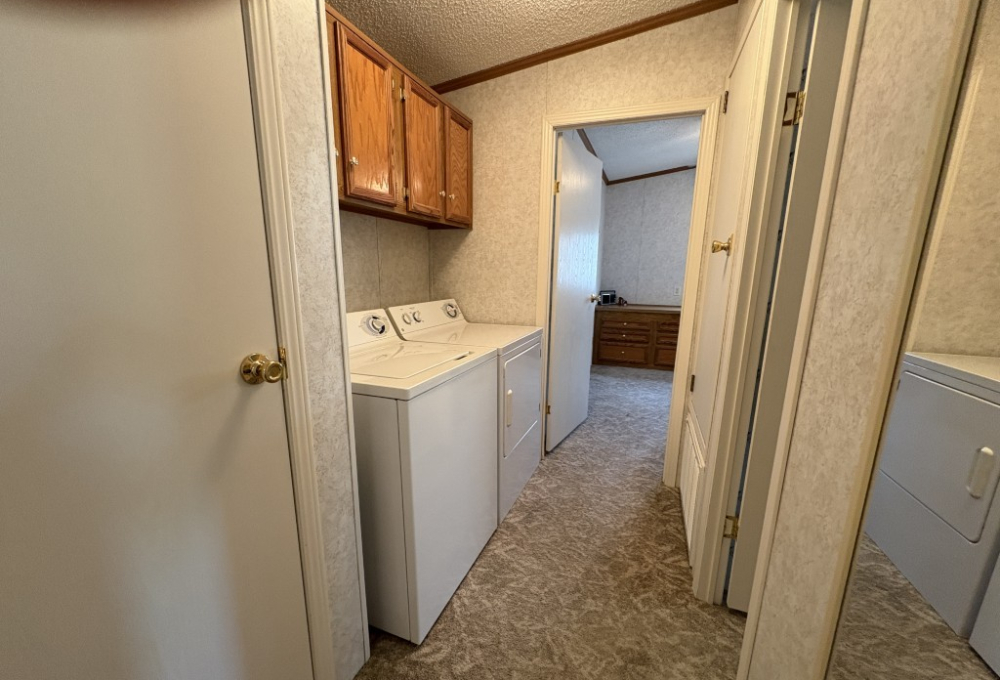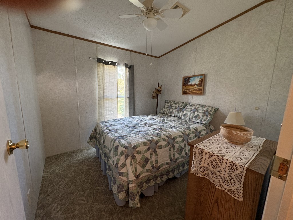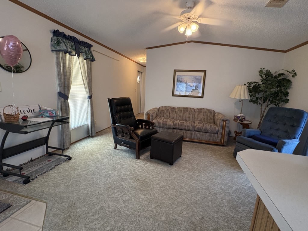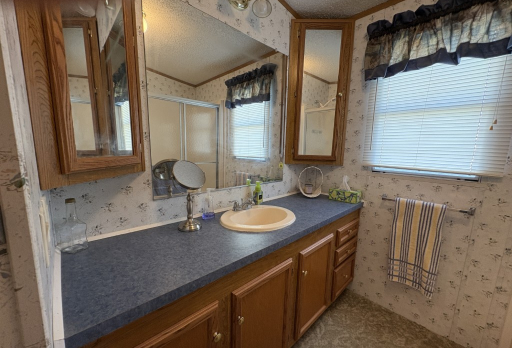 Welcome to your cozy corner-lot retreat! This charming 16x52 home features 2 bedrooms, 1 bathroom, and a convenient walk-in shower. The front kitchen is a true delight—flooded with natural light from large windows that offer a perfect view of friendly passersby. Sculptured, easy-care carpet flows throughout the home, adding comfort and style with minimal upkeep.