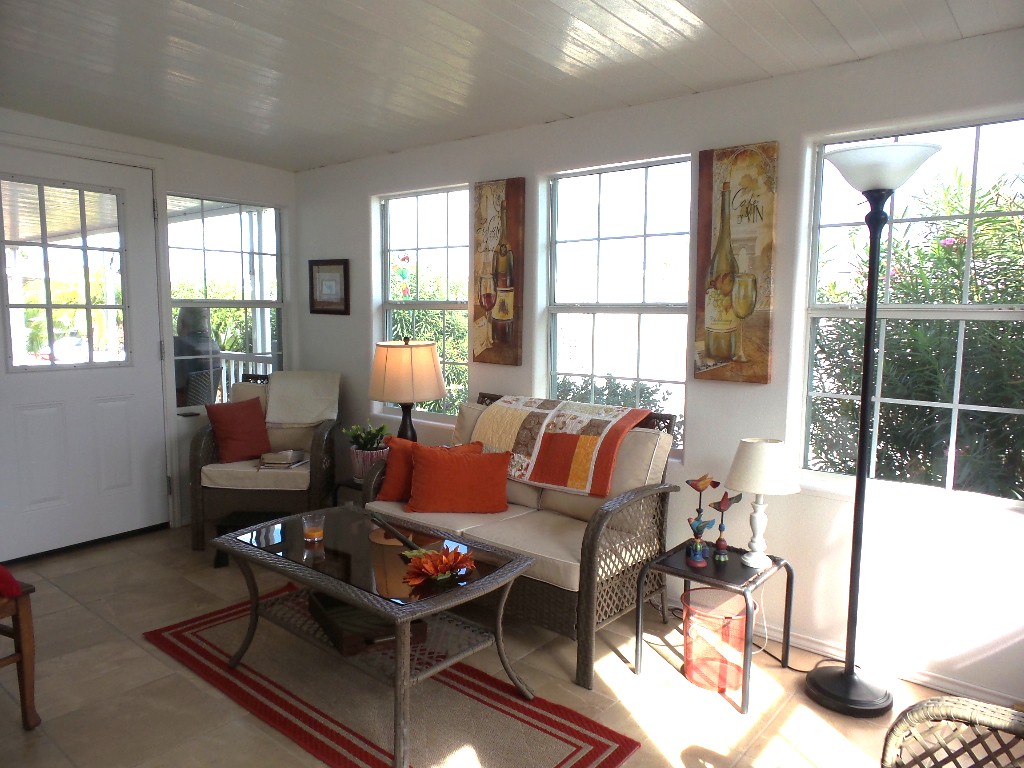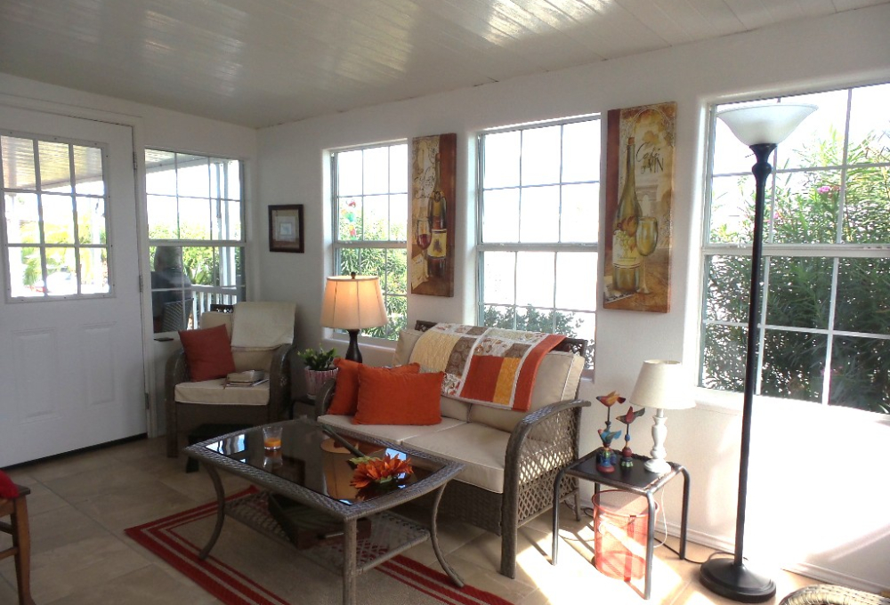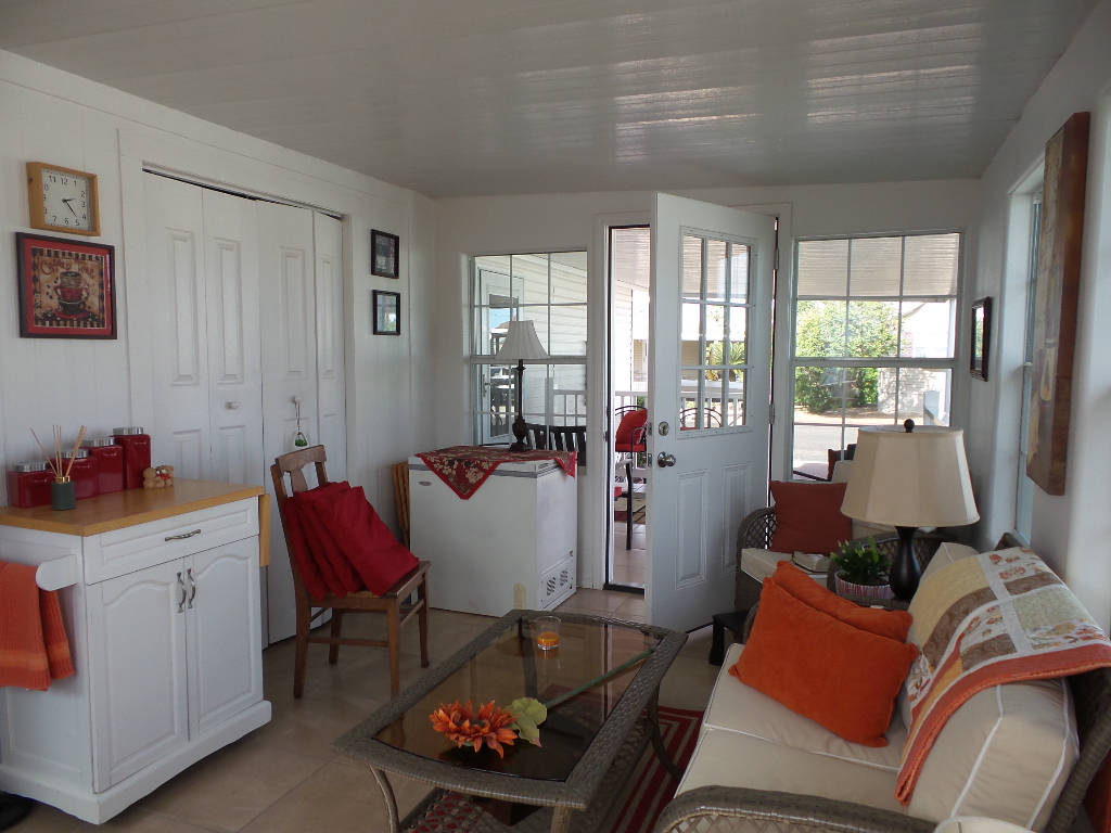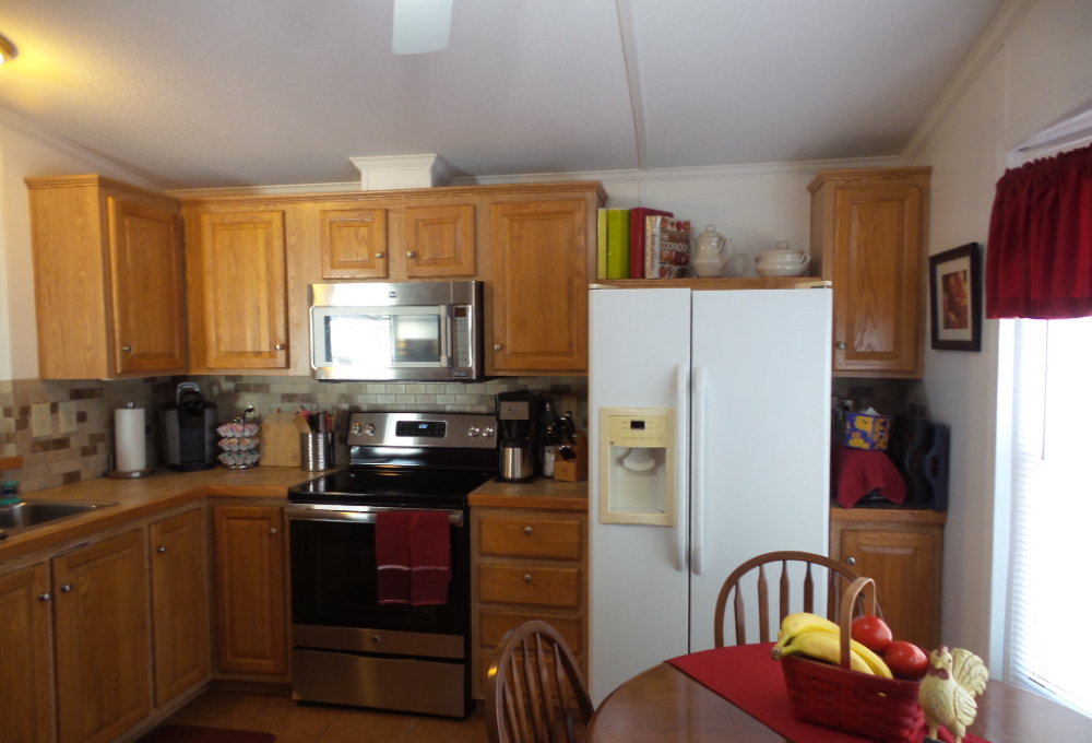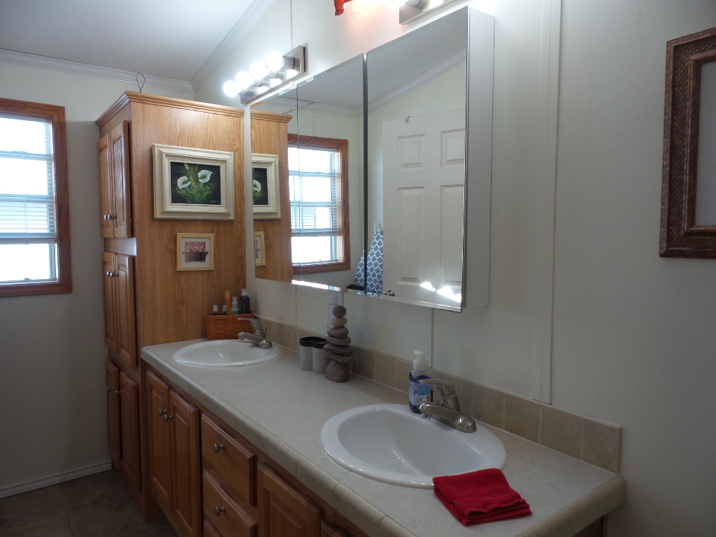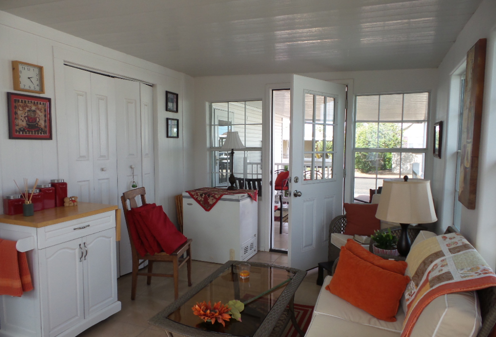 American Homestar 2-bedroom, 2-bathroom, Manufactured home 2007 16x60’ +12x16’ Tx room=1127 sq ft of living space. Driving up to this tropical oasis you see an inviting deck to enjoy the TX weather outside, or inside this lovely TX room! Entering the Livingroom you note matched reclining leather furniture upon LVP flooring, with bar stools towards the front kitchen. It has an abundance of oak cabinets featuring tiled countertops & backsplash with ceramic tiled floors. Updated newer appliances include the dishwasher & flat-top stove an overhead microwave, with a side/side fridge near the table, adjacent to the panoramic front windows. Along the hallway is access to the TX room with surrounding thermal windows & relaxing patio furniture with great views of the outdoor plants. An exit door goes to the quaint back patio area & shed, as well. The main T/S bathroom is between the guest & master bedroom, near the new W & D. The Q master ensuite bedroom/set is at the back of the home with XL mirrored closet/drawers. The M bathroom has a walk-in shower & dual sinks with extra cabinets. This lovely home has textured & pristine painted walls, & is energy efficient/low maintenance with sunscreens, steel roof, new/updated appliances & brand-new W/H. A must see for all the great outdoor/indoor spaces! Call Rita>712-281-9862 Tour.