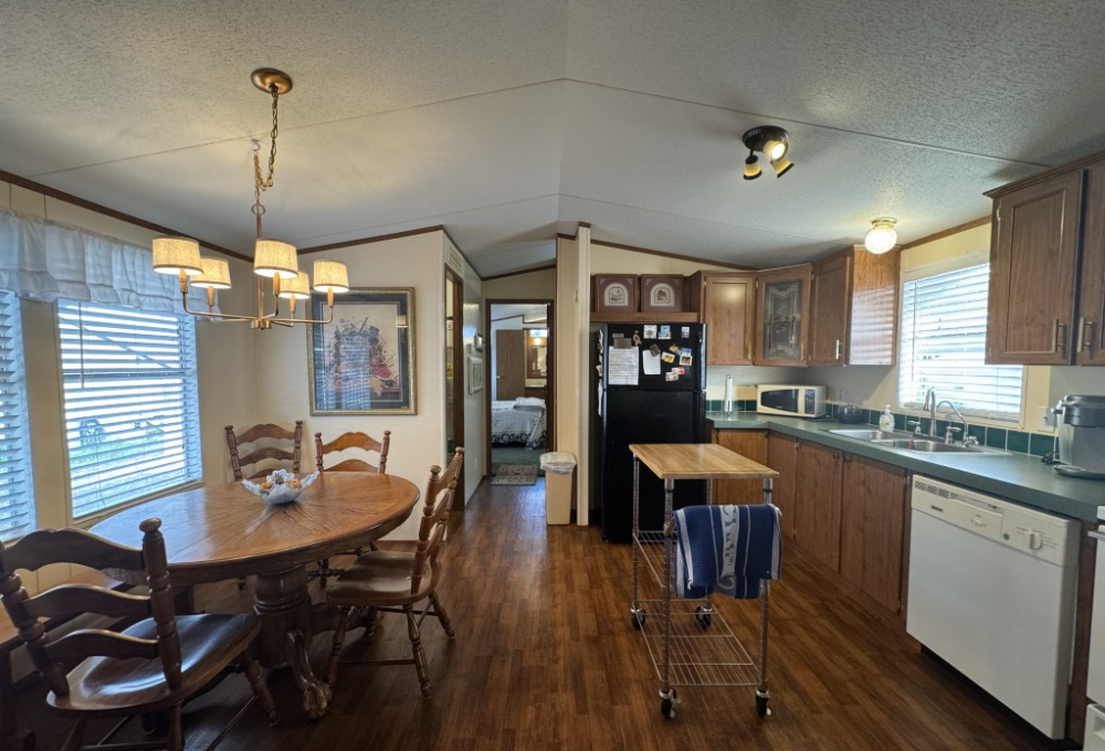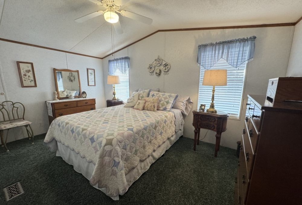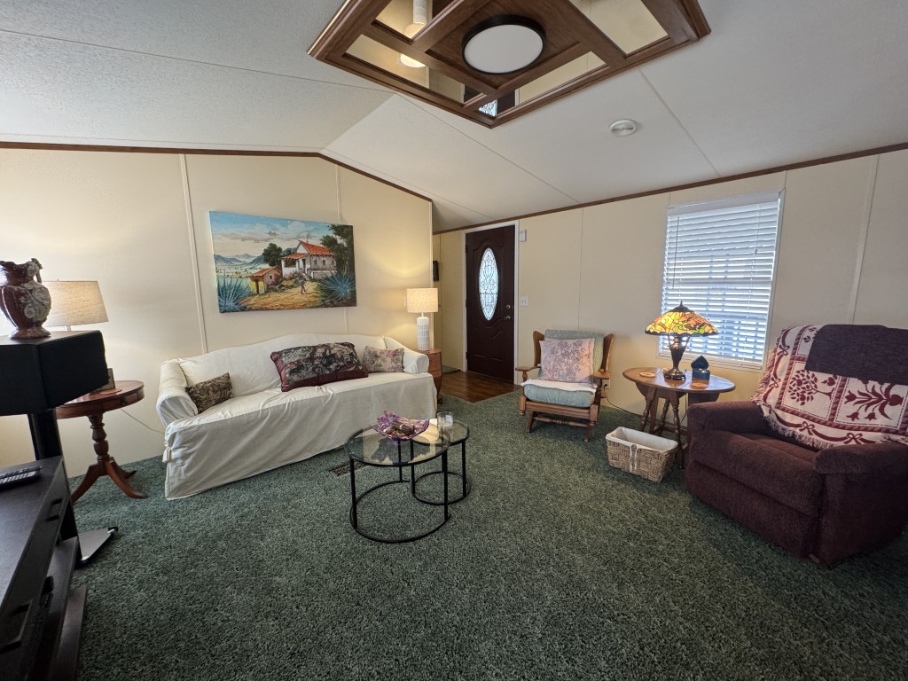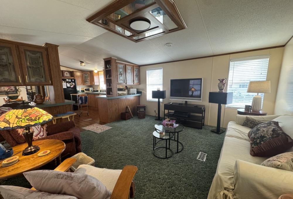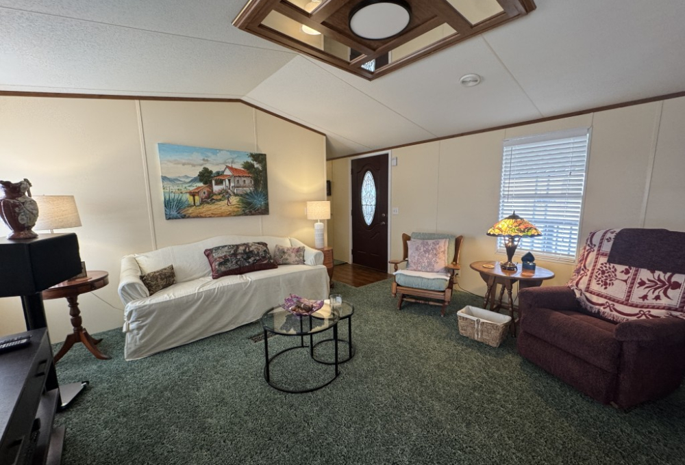 This 2000 Palm Harbor Riverbend manufactured residence (16x76) features three bedrooms, two bathrooms, and approximately 1,216 square feet thoughtfully designed for both comfort and practicality. The home is freshly painted, fully furnished, and utilizes all-electric systems. Flooring is carpeted throughout except for the kitchen.