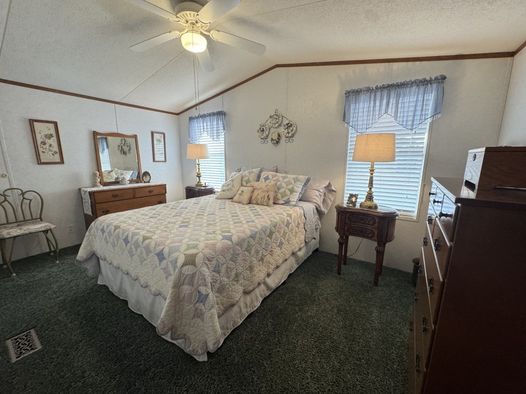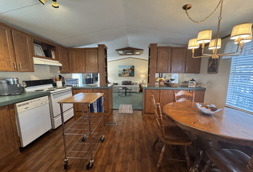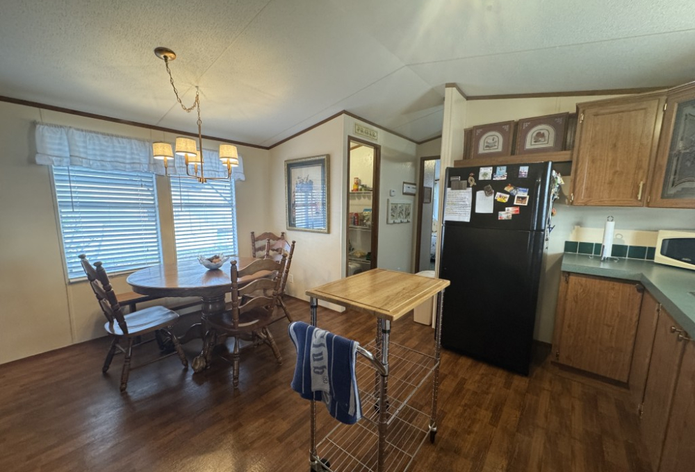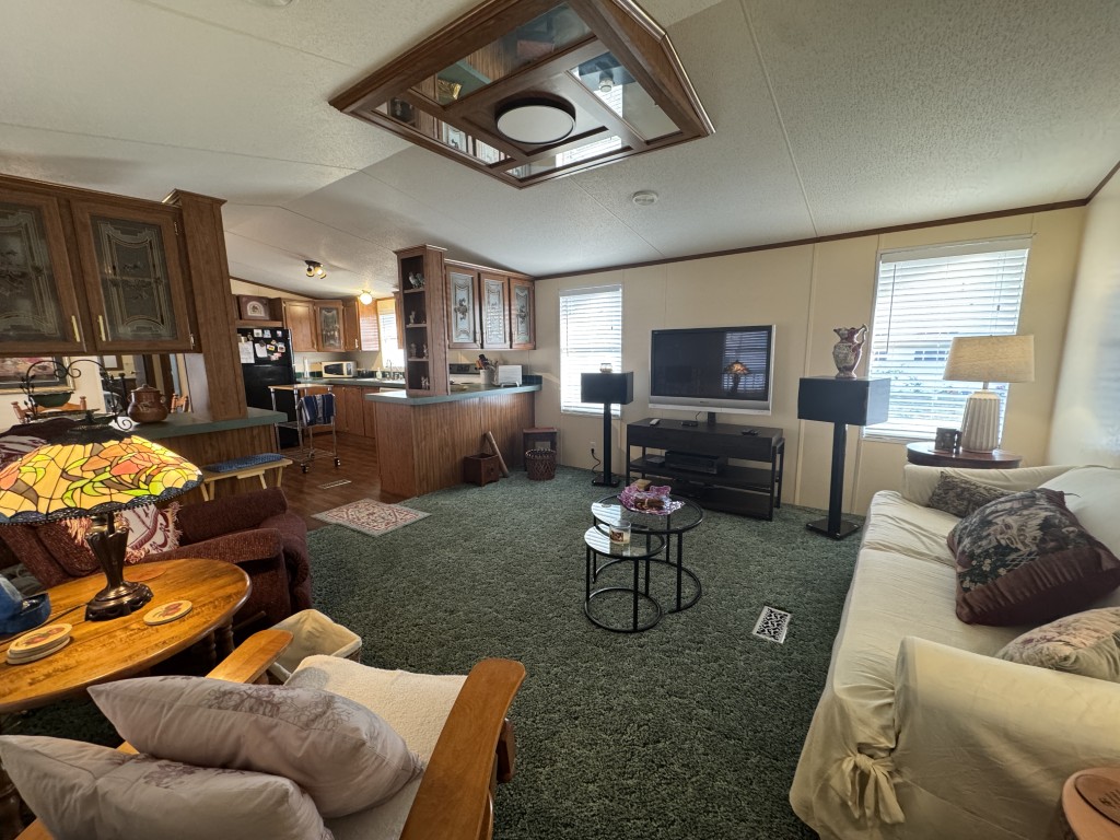 This 2000 Palm Harbor Riverbend manufactured residence (16x76) features three bedrooms, two bathrooms, and approximately 1,216 square feet thoughtfully designed for both comfort and practicality. The home is freshly painted, fully furnished, and utilizes all-electric systems. Flooring is carpeted throughout except for the kitchen.