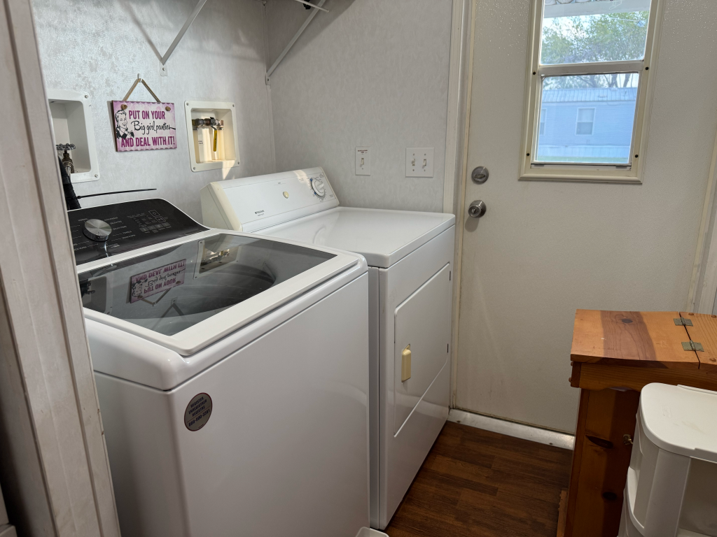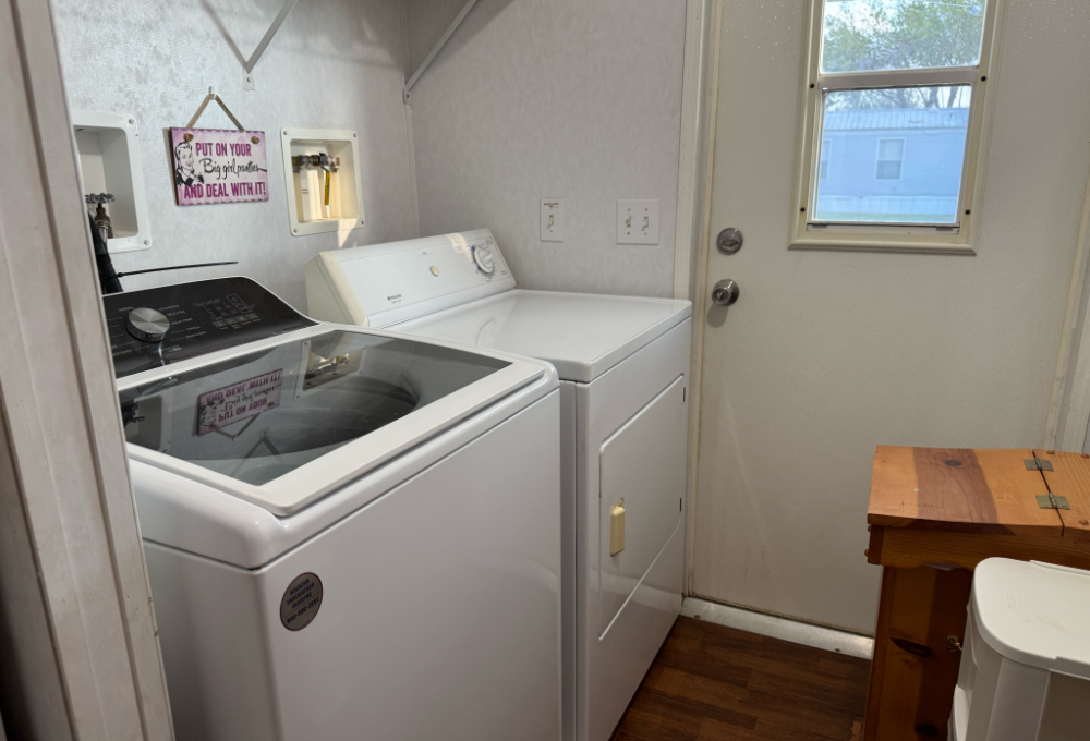 A dedicated laundry room is equipped with both a washer and dryer. Recent upgrades include a newer 40-gallon hot water heater; although the air conditioning unit is original, it has been diligently maintained and functions effectively.