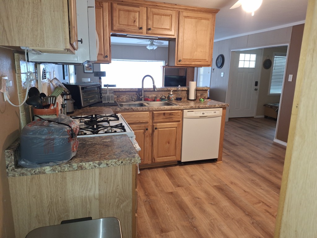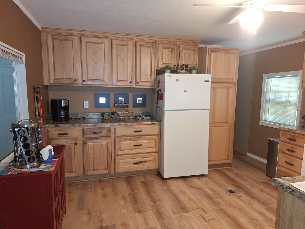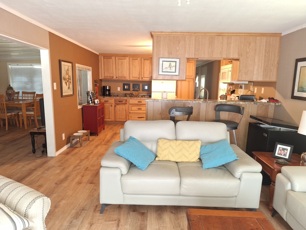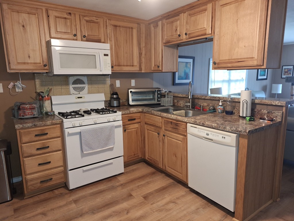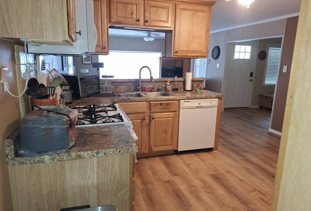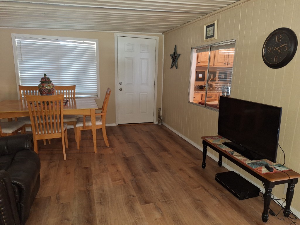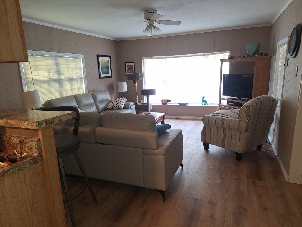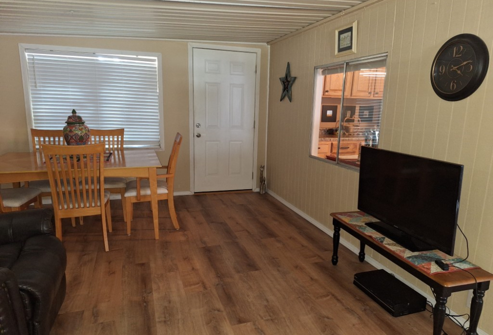 Custom Premier Model, 14' x 56', 2BR - 1 BA, plus a Texas Room giving you 1,026 sq. ft. of living space. Earth tone-colored walls and new laminate flooring, walk-in shower and plenty of cupboard space. Home is fully furnished and includes a washer/dryer. It has a cozy sitting area at the back to entertain your friends and a carport at the front for parking your vehicle/golf cart. Vinyl siding on the home, metal roof and a workshop for the handyman. Close to the golf course, swimming pool, library, rec hall and other amenities around the park. Golf cart is also for sale. Join your friends and make this your winter home!