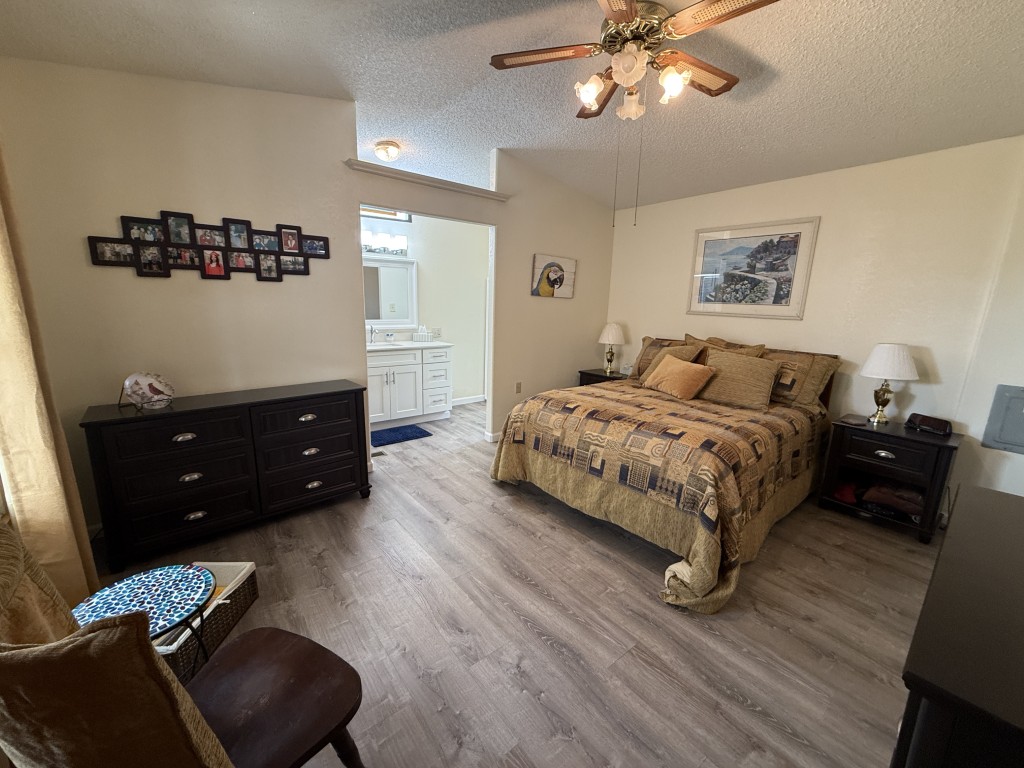 Upon entering the home, you are greeted by a spacious dining/kitchen area that opens up to the living room. The 2024 remodel included freshly painted oak cabinets in the kitchen, quartz countertops, a glass backsplash, a farmhouse sink, and all new LG stainless steel appliances. The fridge is a side-by-side model with an ice maker, a filter system, and a lighted walk-in pantry.