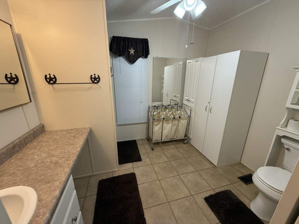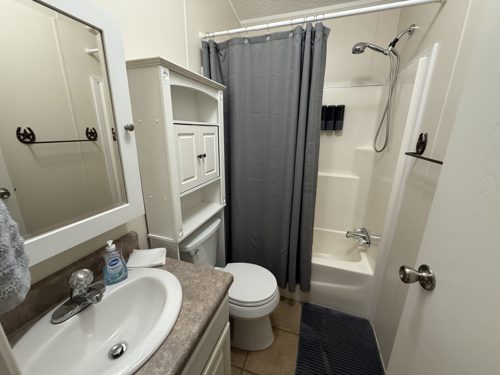 - Guest Bathroom: Includes a tub/shower combo, single sink vanity, and commode.