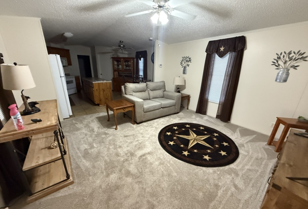 Presenting a 2005 Fort Worth Cavalier Home Builders' manufactured home with three bedrooms and two bathrooms, encompassing a spacious 15 x 76 sq feet layout, providing 1140 sq feet of comfortable indoor living space.