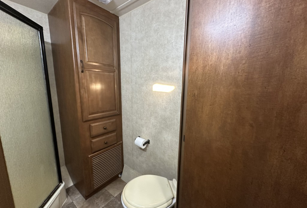 Enjoy outdoor living with a covered porch and take advantage of the outside shed, which comes with a washer and dryer and even more storage space. This travel trailer combines comfort, convenience, and style—perfect for your next adventure or a cozy home away from home.