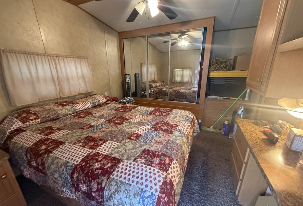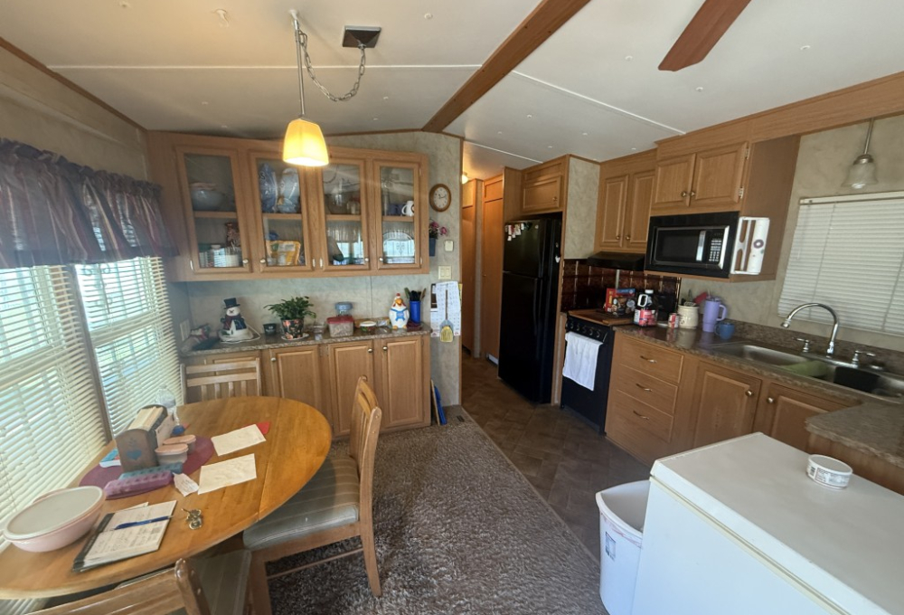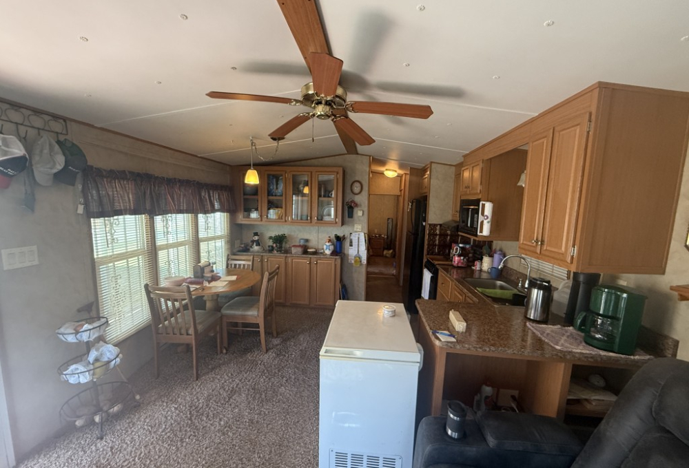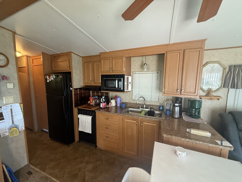 This move-in ready home comes fully furnished and features a spacious 8 x 33 covered patio area with a double door shed at the end, as well as a separate 18 x 24 carport. The home is equipped with central air and propane heat. The kitchen includes a propane stove, and the home also comes with a stackable washer and dryer.