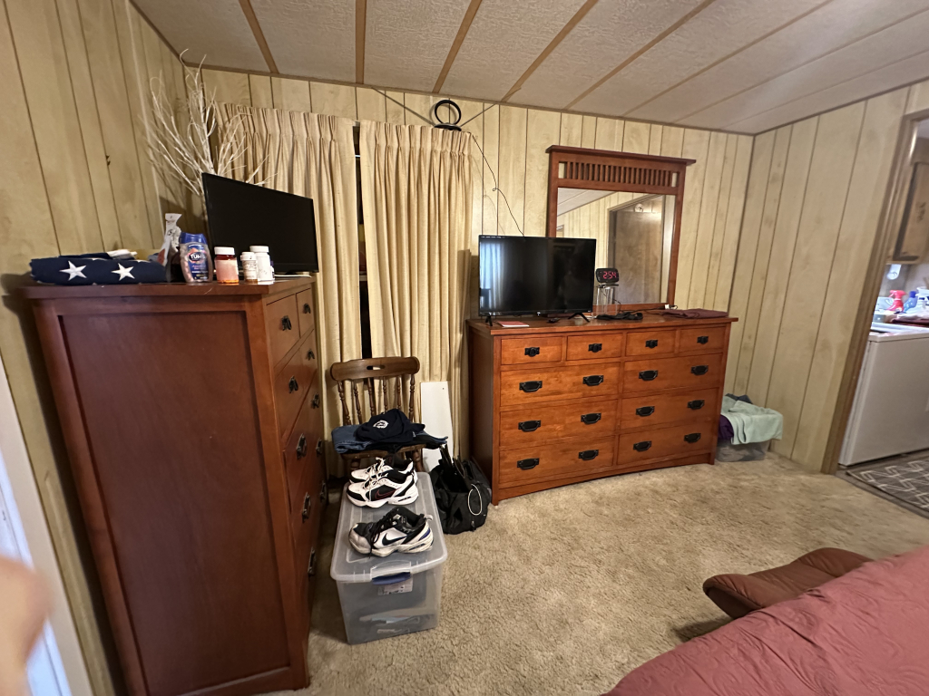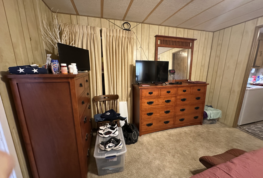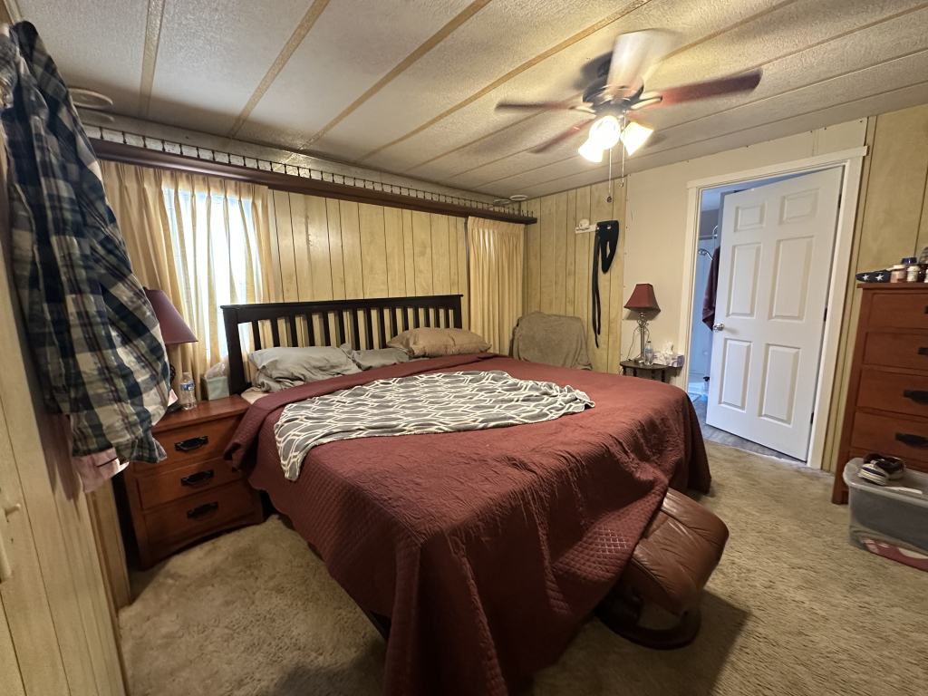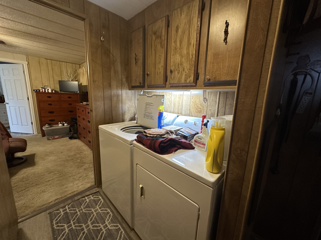 The guest room at the end of the hall offers ample closet space, storage, and a day bed. Next to it is the second full restroom with a tub, and across the hall are the washer and dryer, along with an outside back door leading to the carport and the Texas room. The master bedroom includes an en-suite bathroom with a double walk-in shower, ample lighting, and plenty of storage throughout.