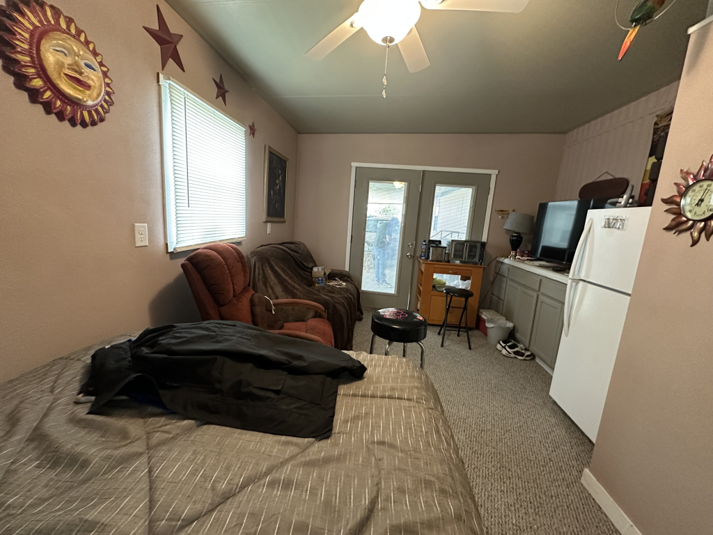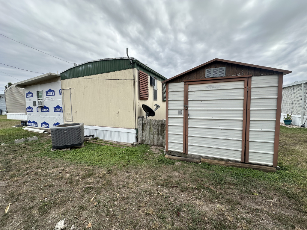 Discover this inviting 2-bedroom, 2-bath festival home located in the Snow to Sun 55+ gated community in Weslaco, Texas. Priced at $38,000 with lot rent of $567.00/month, this spacious residence features a Texas room converted into a cozy man cave complete with a half restroom, individual bed, fridge, carpet, and window unit, bringing the total living space to 1,156 sq ft.