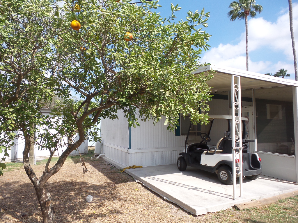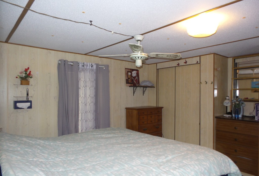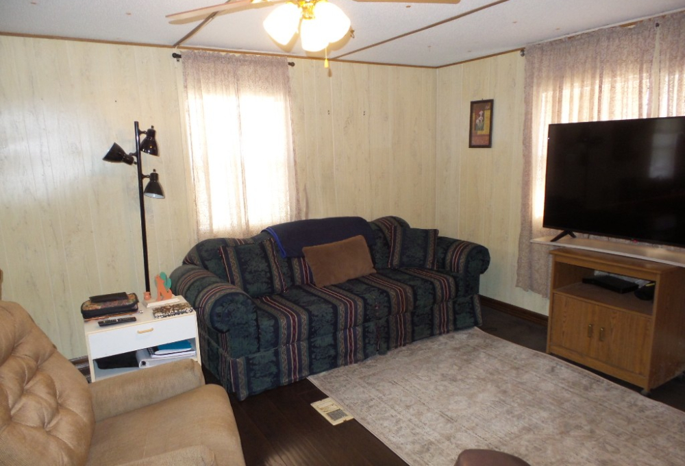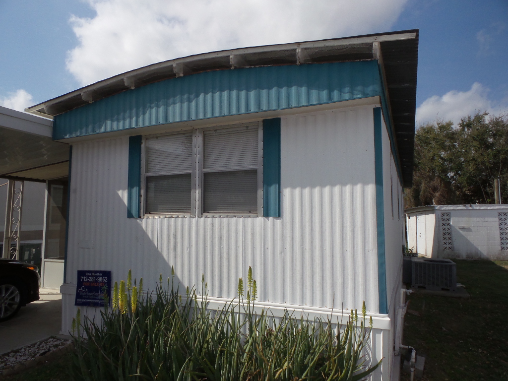 Victor 14x48’ (672 sq ft) Manufactured home with 1 bedroom 1 bathroom, screen porch & XL Shed. Entering the screen porch you note the SE breeze & patio furniture awaiting company, with a privacy sun screen & back exit. The front door access enters the Livingroom with updated flooring stretching thru the open concept room. An area rug is surrounded by the sofa & 2 recliners facing the TV. The dinette overlooks the side yard & the kitchen has been renovated with new countertops & sink, plus updated appliances including a gas range, overhead microwave & fridge. Along the hallway is the W/D near the back door & entrance to the fully renovated bathroom featuring a granite top vanity & walk-in luxury tiled shower, new stool etc. A K bed is in the bedroom at the rear of the home with drawers beneath & dressers & 2 closets. Behind the screen porch is a covered patio area (golf cart rented for season) The XL block shed adds storage. Call Rita for a tour appointment at 712-281-9862.