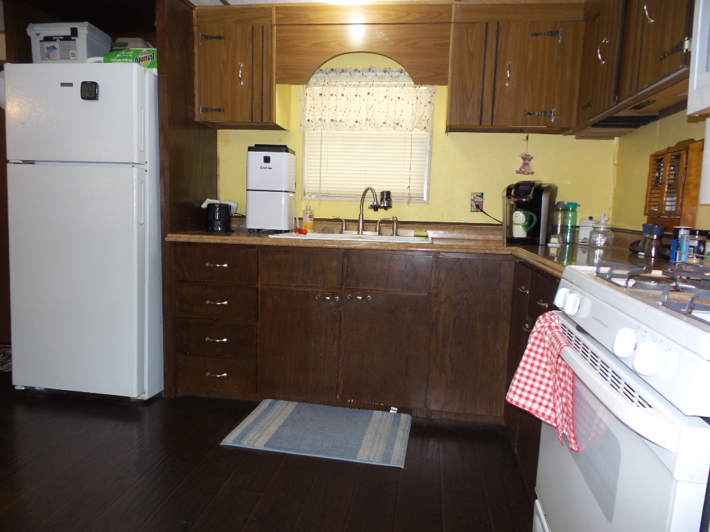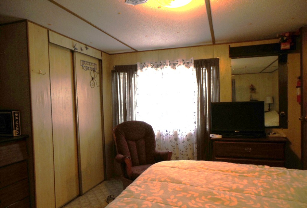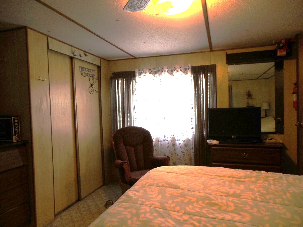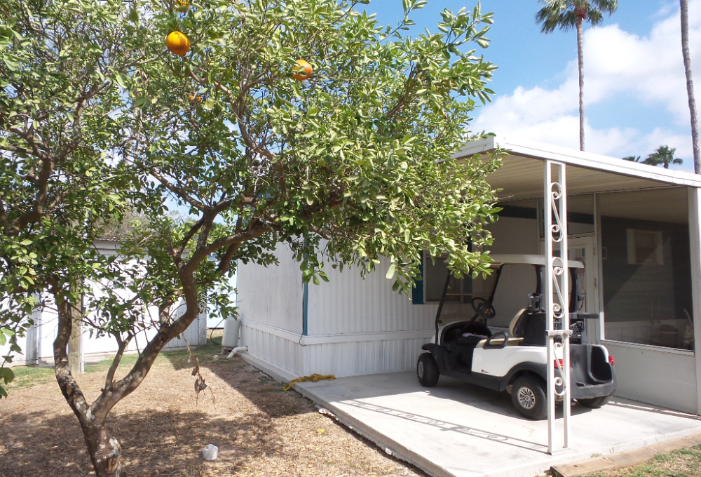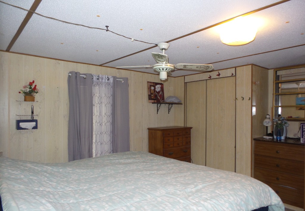 Victor 14x48’ (672 sq ft) Manufactured home with 1 bedroom 1 bathroom, screen porch & XL Shed. Entering the screen porch you note the SE breeze & patio furniture awaiting company, with a privacy sun screen & back exit. The front door access enters the Livingroom with updated flooring stretching thru the open concept room. An area rug is surrounded by the sofa & 2 recliners facing the TV. The dinette overlooks the side yard & the kitchen has been renovated with new countertops & sink, plus updated appliances including a gas range, overhead microwave & fridge. Along the hallway is the W/D near the back door & entrance to the fully renovated bathroom featuring a granite top vanity & walk-in luxury tiled shower, new stool etc. A K bed is in the bedroom at the rear of the home with drawers beneath & dressers & 2 closets. Behind the screen porch is a covered patio area (golf cart rented for season) The XL block shed adds storage. Call Rita for a tour appointment at 712-281-9862.
