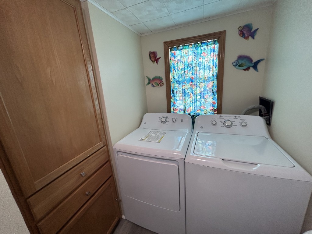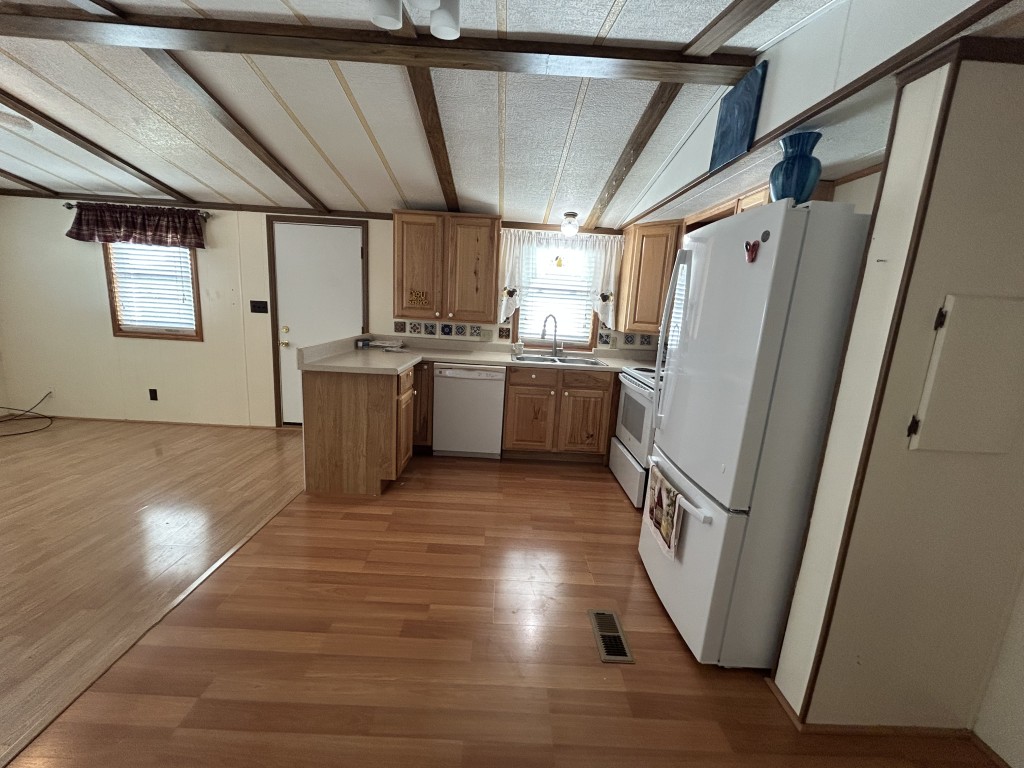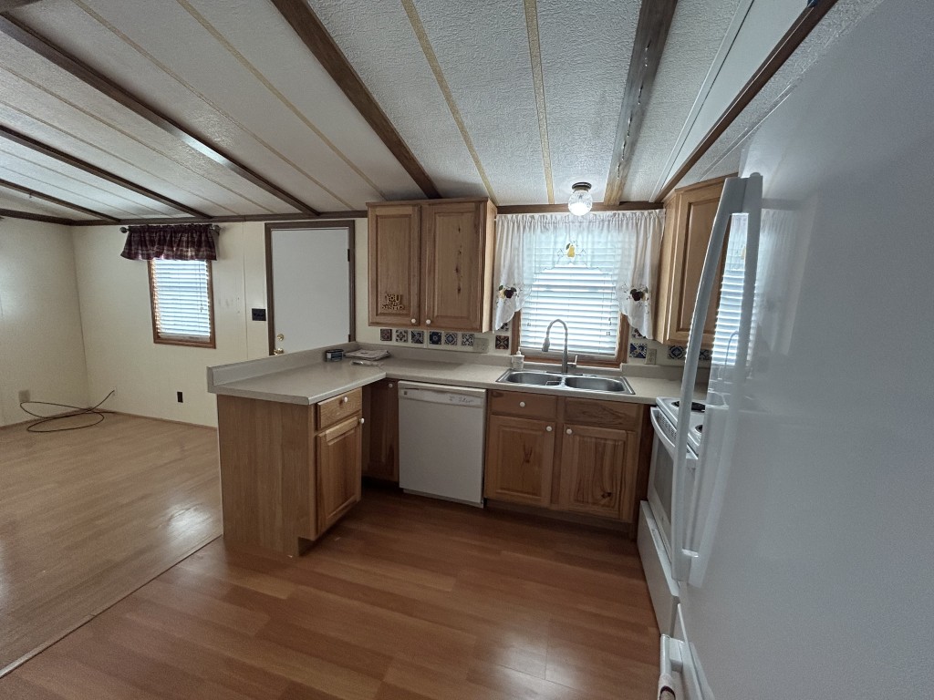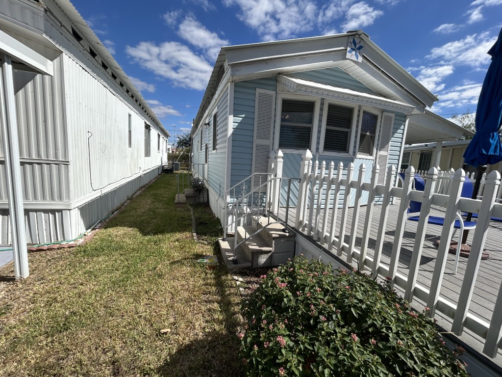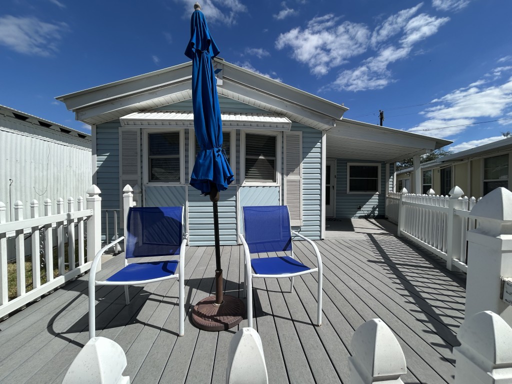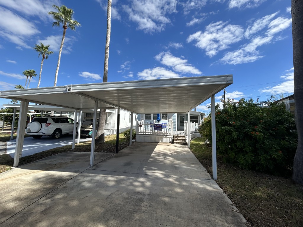 Discover this charming 1983 Schult mobile home offering comfort and convenience! Enjoy a spacious 1-bedroom, 1-bath layout with 560 sq ft, plus a bright 19x20 insulated Texas room. Conveniently located in a friendly, gated 55+ community near shopping and dining. Relax on the generous 11x11 composite deck or park easily in the 11x21 carport. There's a covered space for your golf cart (9x11), plenty of indoor storage, an attached 6x13 shed, and an extra 4x7 shed for all your needs. With a durable metal roof, vinyl tilt-in windows throughout, updated heat pump, modern refrigerator, and an all-electric setup, this unfurnished home is ready for you to make it yours!