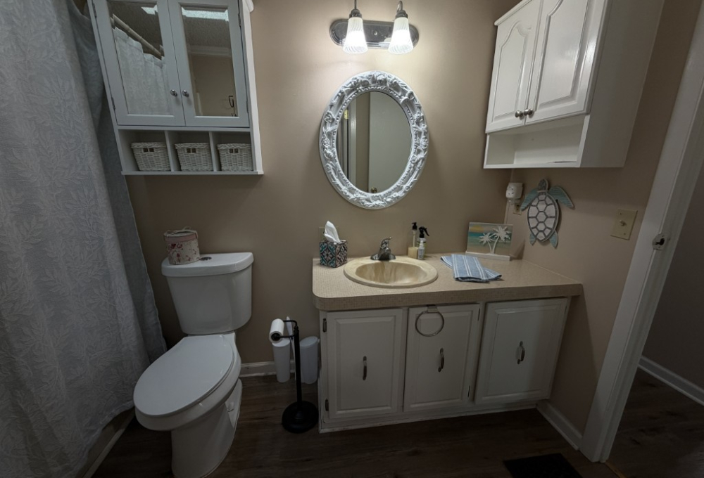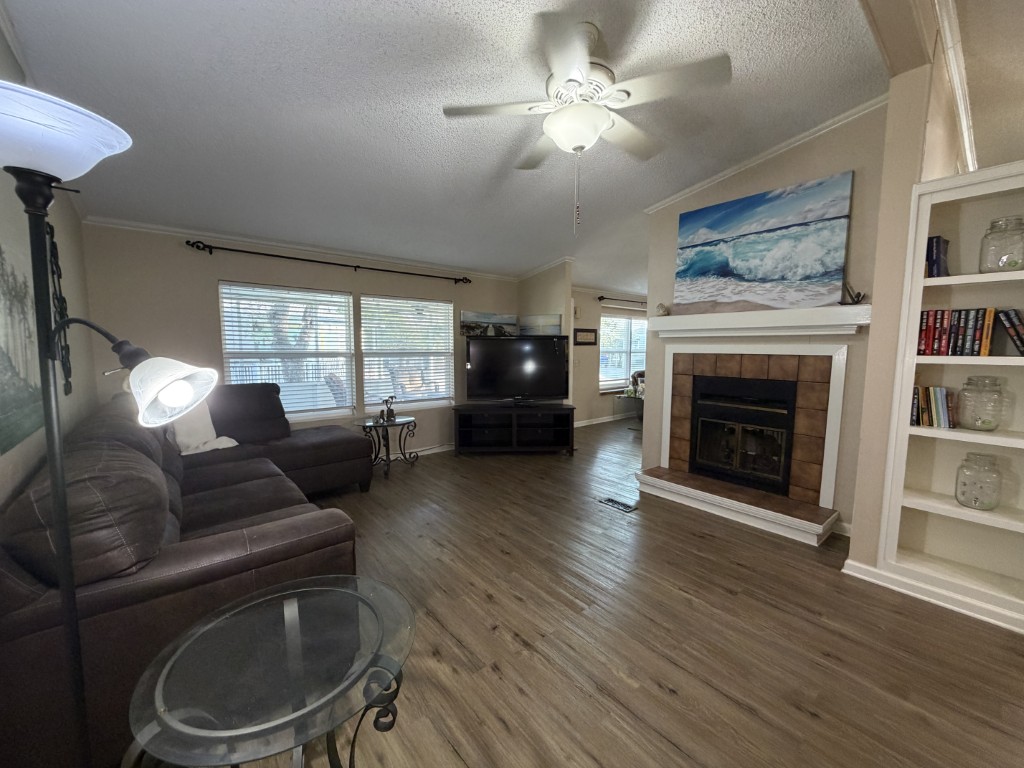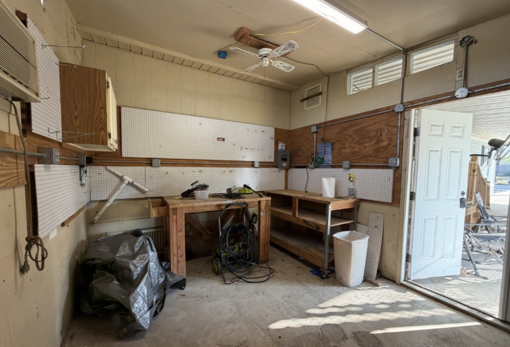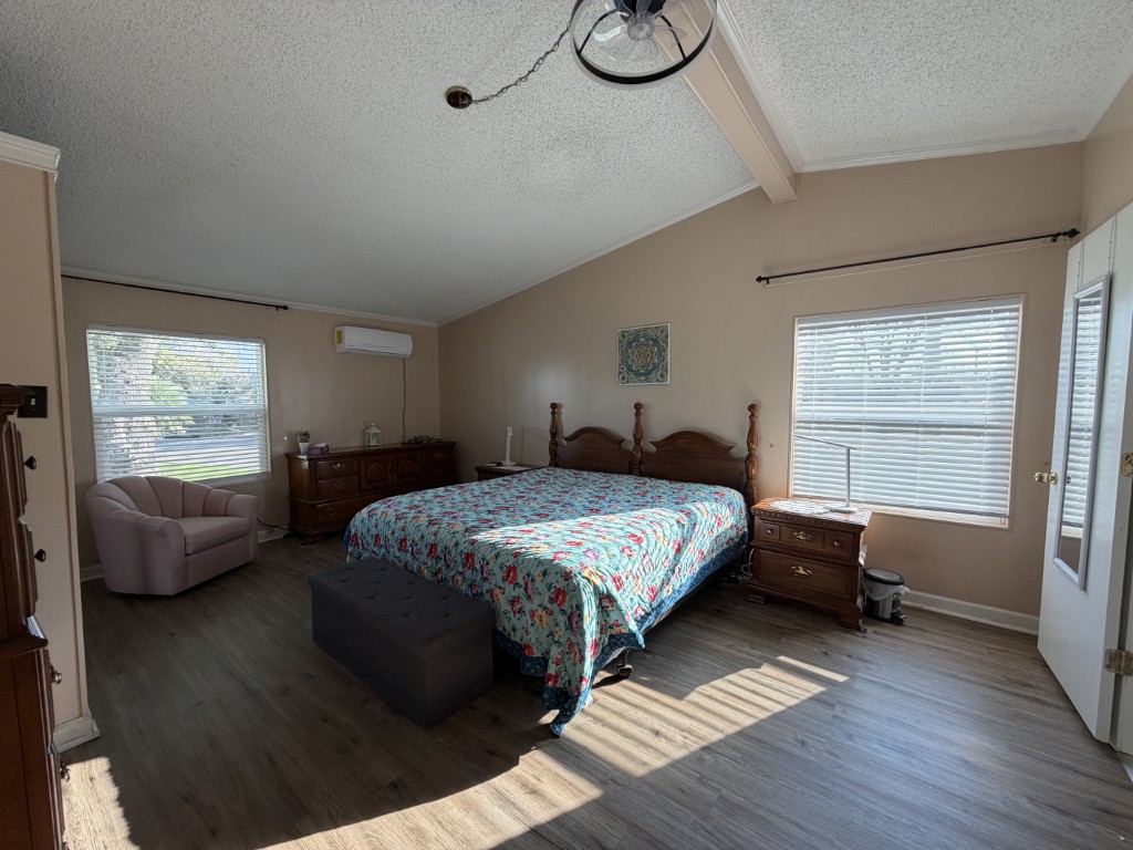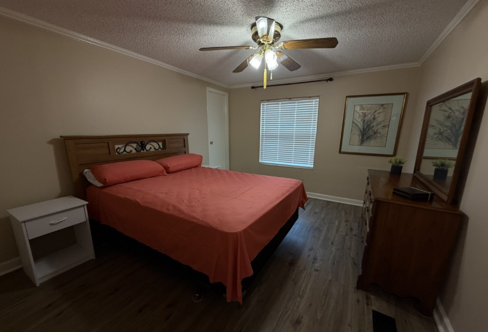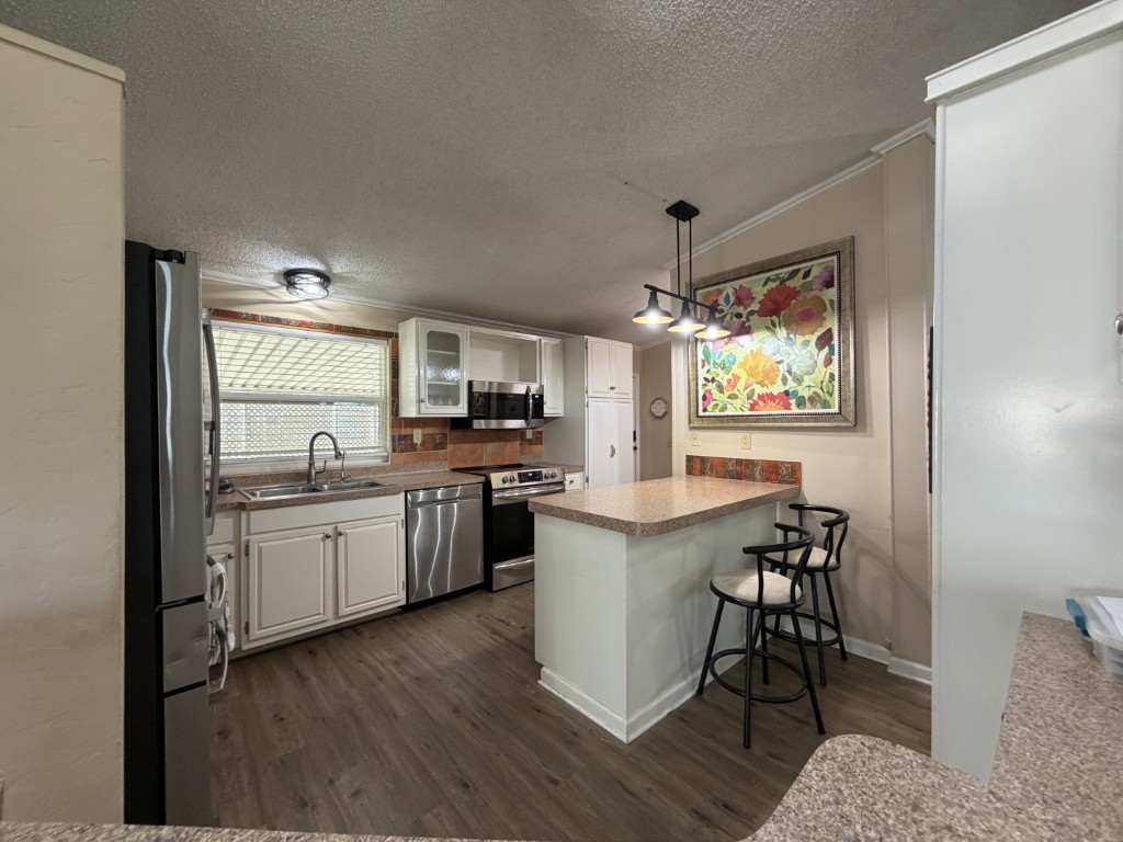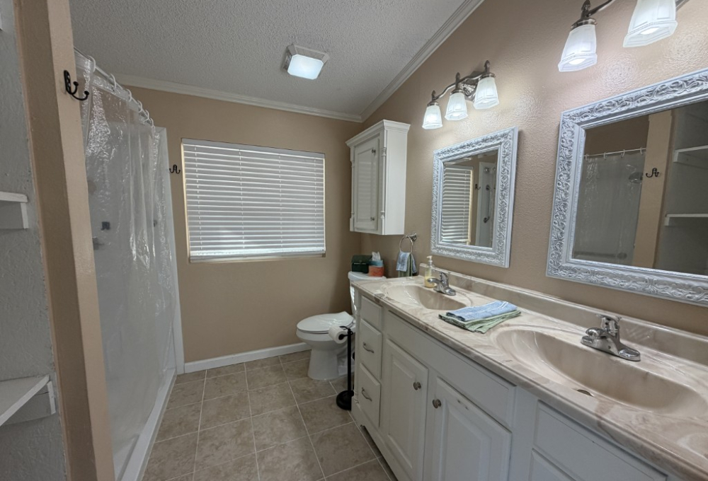 Presenting a spacious 1986 Cameo doublewide offering 1,736 sq ft of living space. This partially furnished home features 3 bedrooms and 2 bathrooms, situated on the largest lot within the park. The interior includes a living room with a double-sided gas fireplace, a great room, an updated kitchen equipped with 3-year-old appliances, a dedicated dining area, and a generously sized master suite complete with a king bed, two closets, mini spilt and an ensuite bathroom featuring a double vanity and walk-in shower. Additional amenities include two guest bedrooms, a Jack & Jill guest bath adjacent to the laundry area, a stackable washer and dryer, and ample storage throughout.