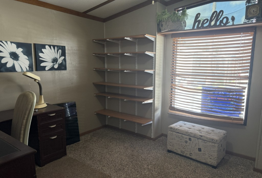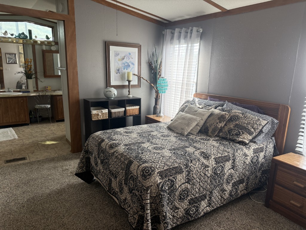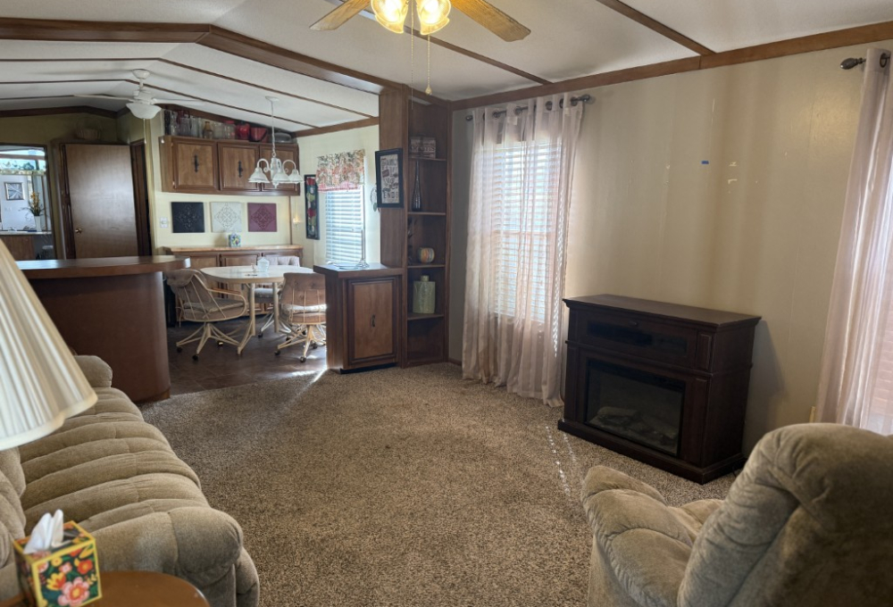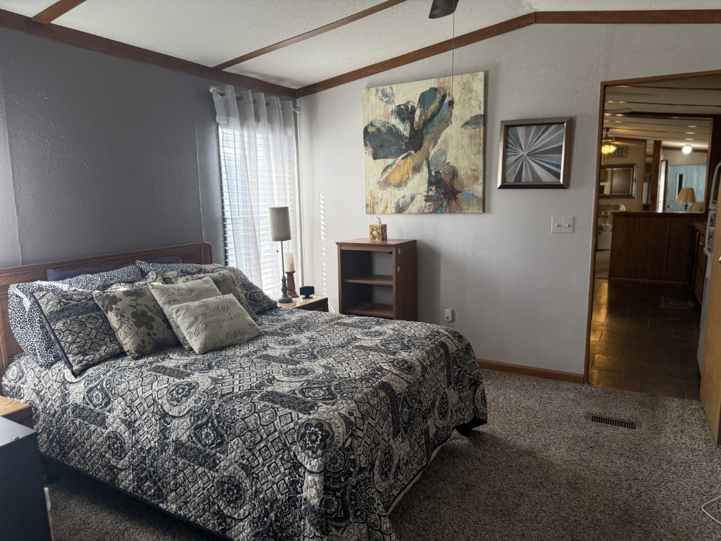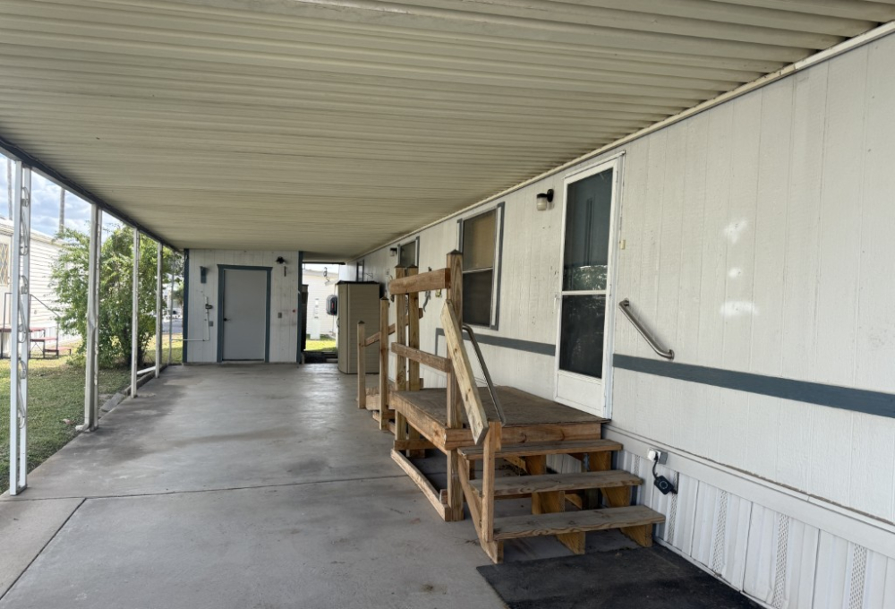 Outside, you’ll find a 13′ x 35′ carport/patio area with a 12′ x 8′ shed at the end of the carport, complete with electricity. In addition, there are three small outdoor storage units for extra storage needs. A ramp to the front door adds easy accessibility.
