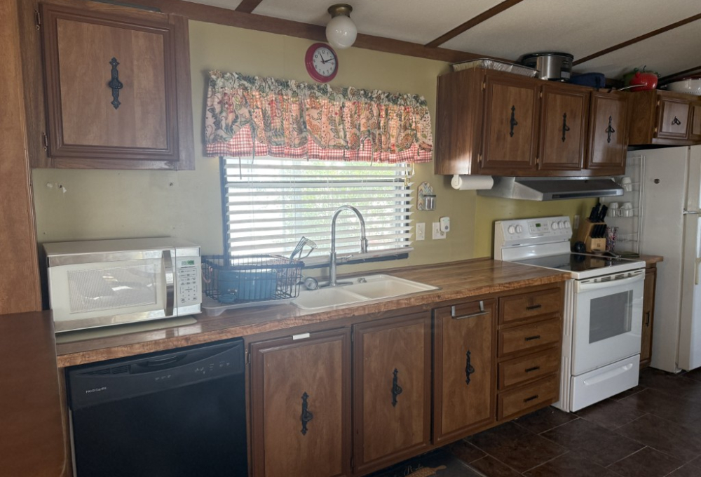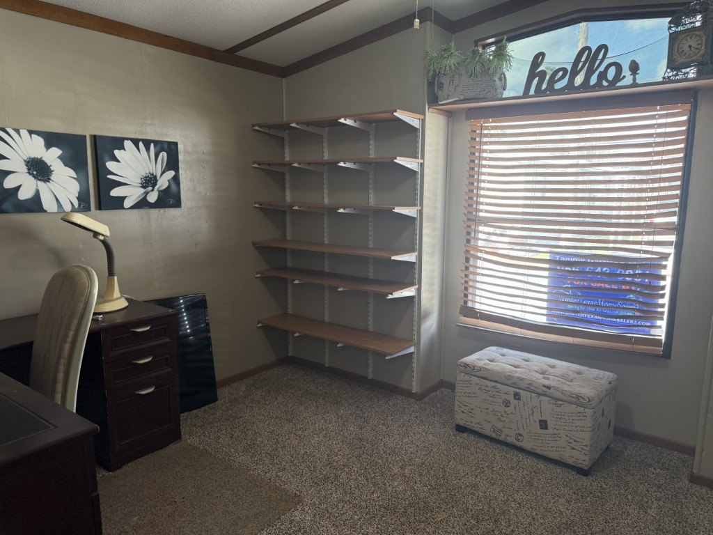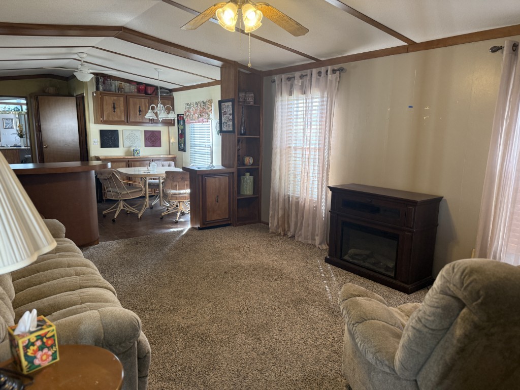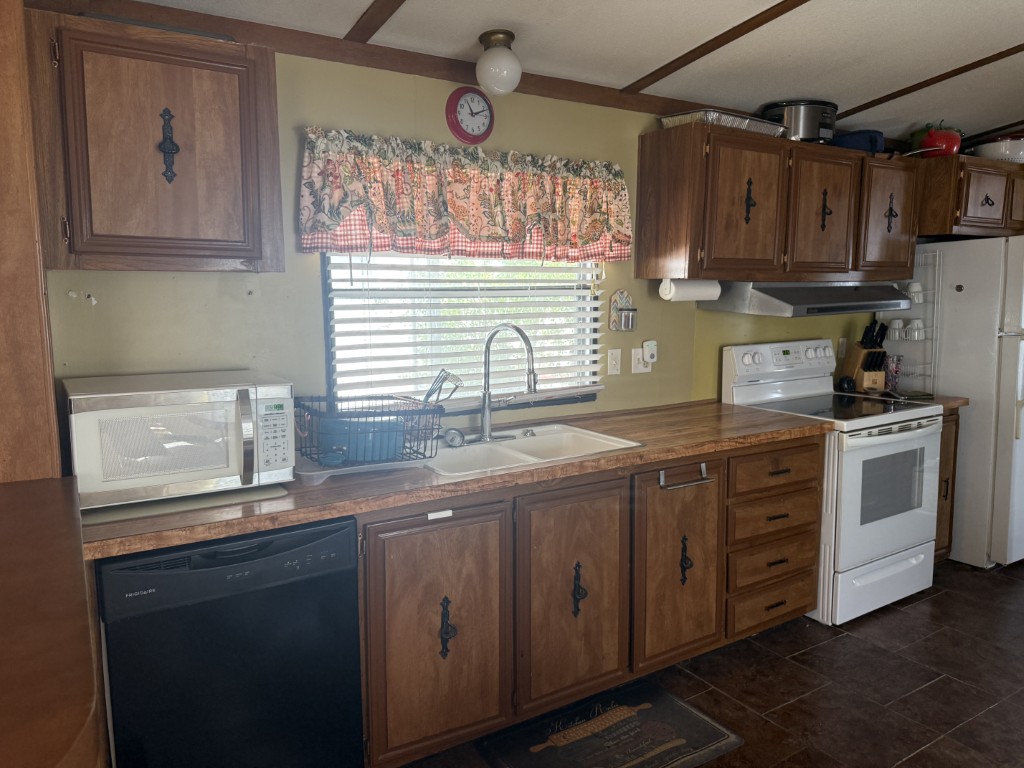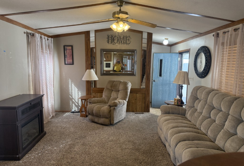 Outside, you’ll find a 13′ x 35′ carport/patio area with a 12′ x 8′ shed at the end of the carport, complete with electricity. In addition, there are three small outdoor storage units for extra storage needs. A ramp to the front door adds easy accessibility.