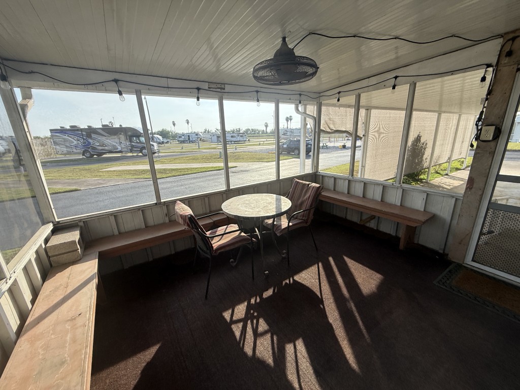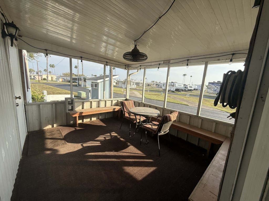 Discover comfortable living in this charming 2-bedroom, 2 bath mobile home, perfectly situated on a spacious corner lot in Rio Valley Estates. This home features a versatile Texas room, a screened-in porch for relaxing evenings, and a covered back patio ideal for entertaining or enjoying the outdoors. Additional amenities include a shed, carport, and all-electric utilities for convenience and efficiency.