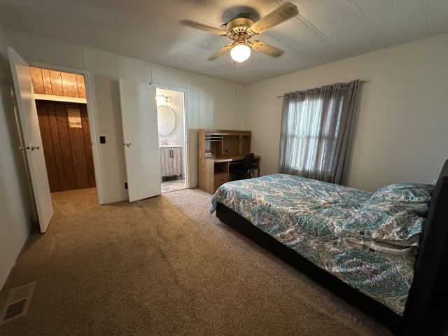 - Carpeted Areas: The bedroom and Texas Room feature cozy carpeting for added comfort.