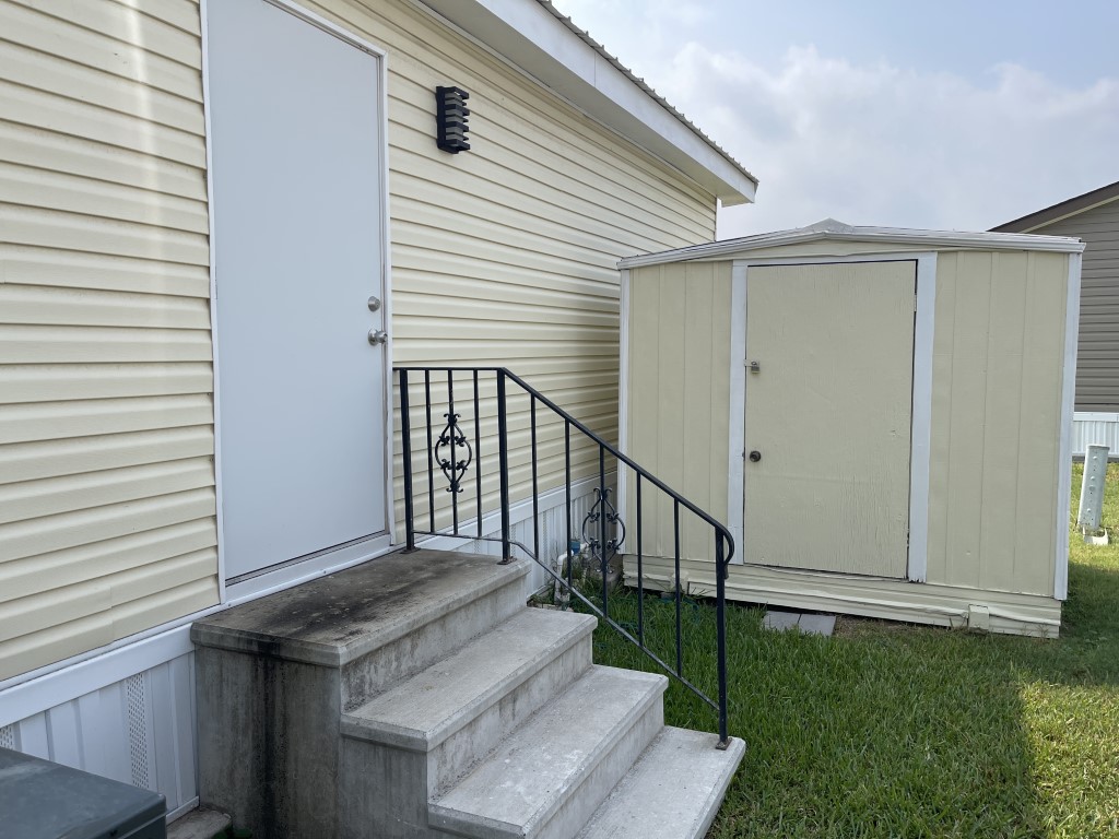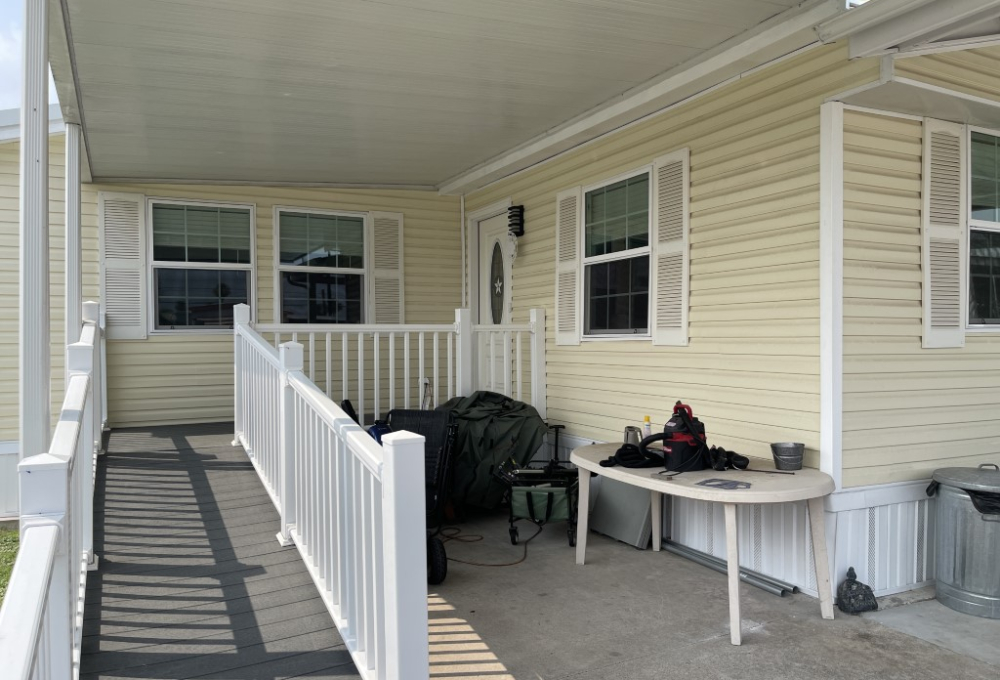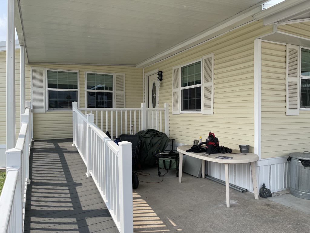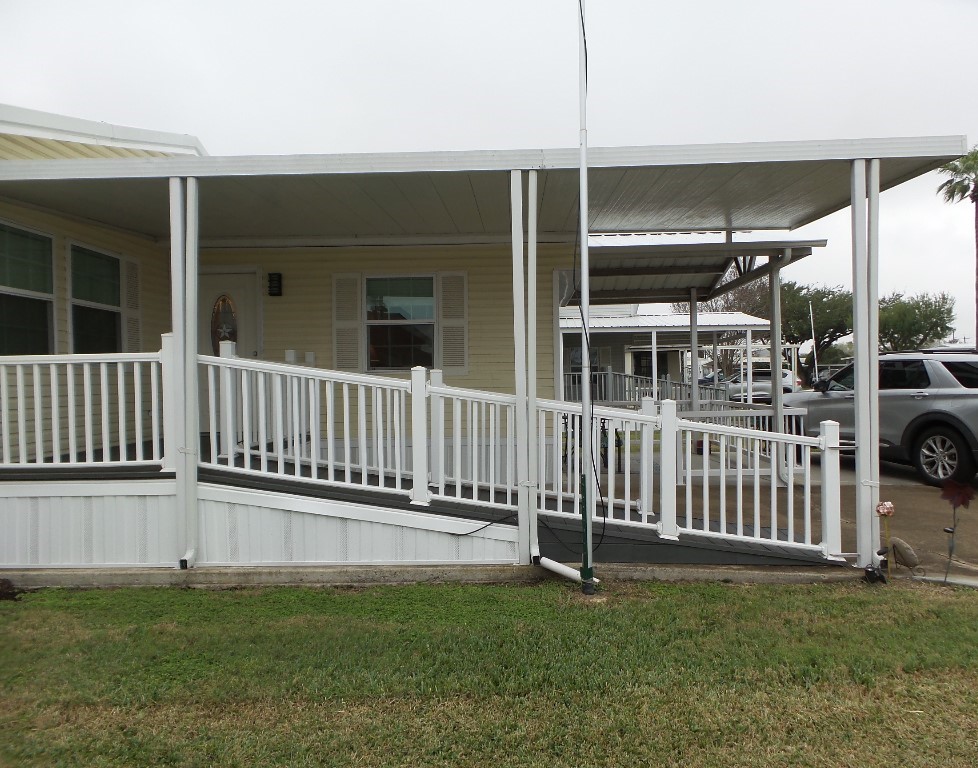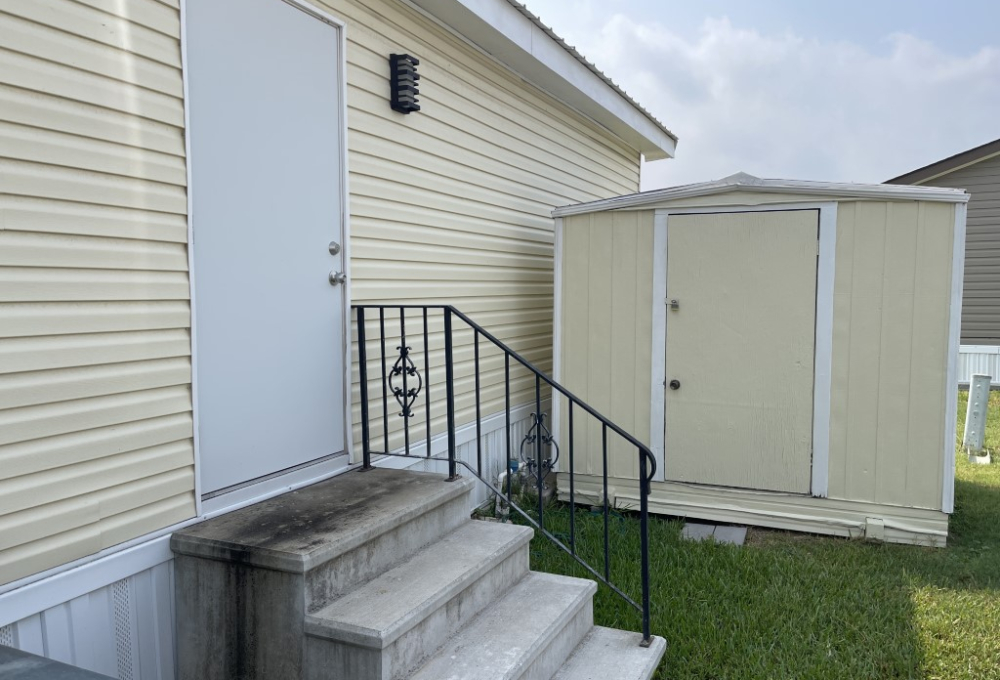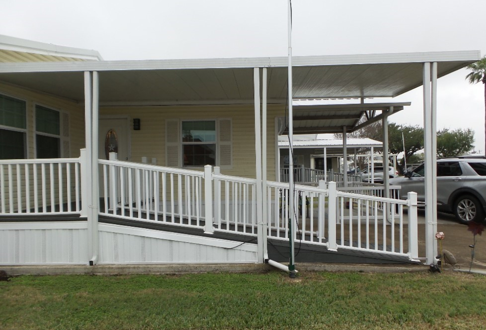 Exterior highlights include a 5 x 11 foot deck accessible by ramp, a covered 9 x 13 foot front patio, and a 5 x 8 foot shed in the backyard. Lot rent covers Spectrum basic cable, Wi-Fi, and garbage service. To schedule a showing, please contact Tammy at 956-643-0051.